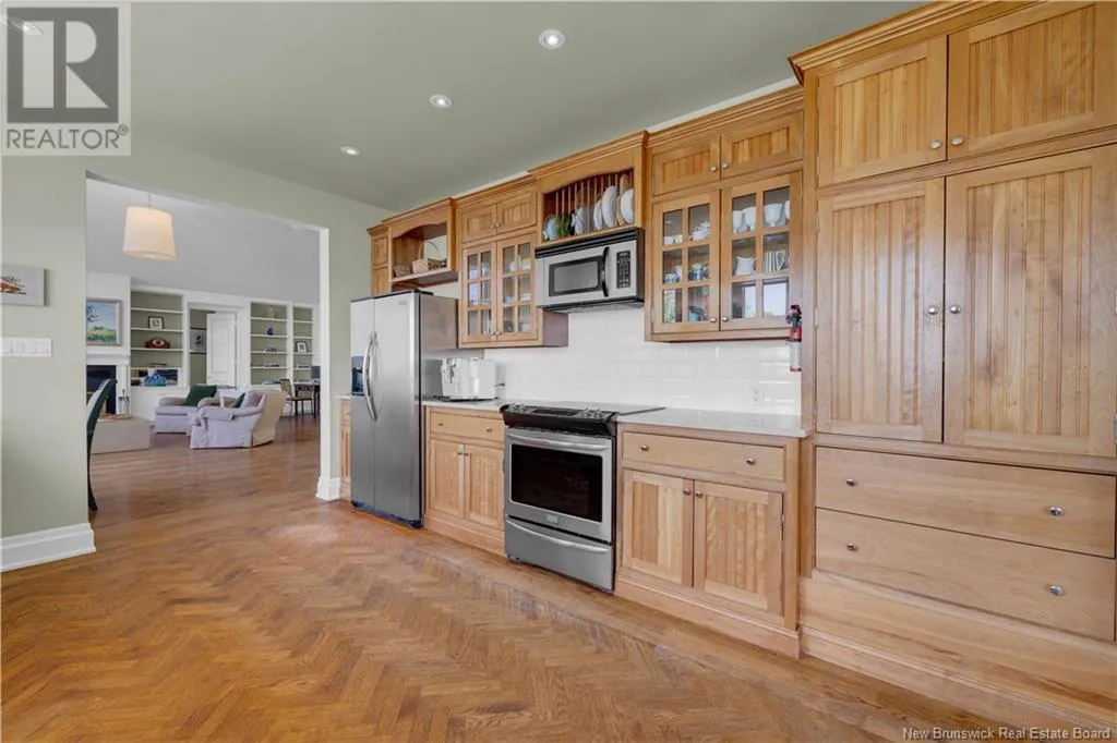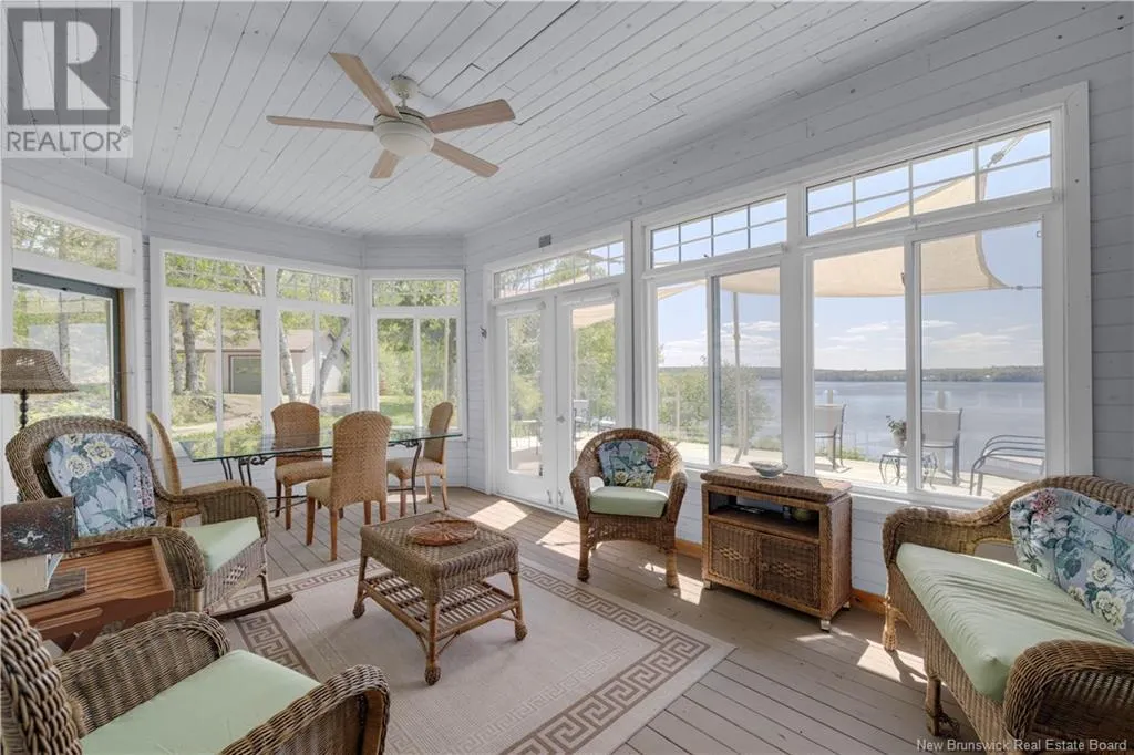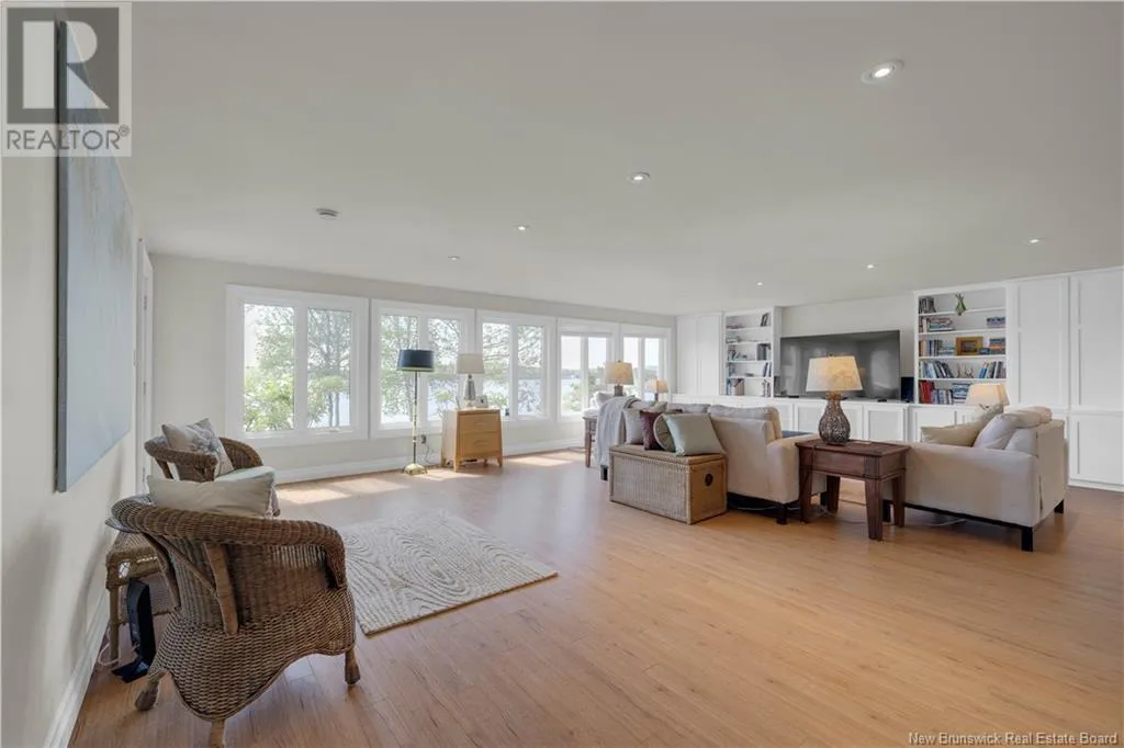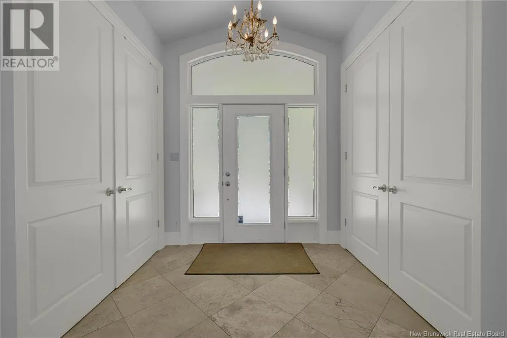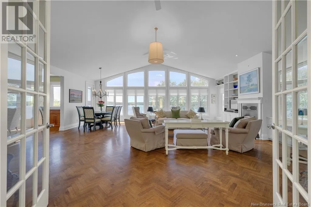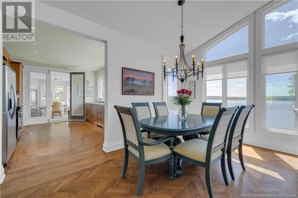 Beautiful custom-designed, quality-built home with breathtaking views of the historic, tidal St. Croix River in Oak Bay. This light-filled home offers a sense of space, calm, and connection to nature. Expansive windows upstairs and down capture the everchanging tides, dramatic sunsets, and wildlife in every season. In spring, eagles soar overhead, and shy foxes appear at the edge of the woods. Winter brings gentle snowfalls that transform the home into a snow globe. The interior features custom millwork throughout, herringbone oak flooring in the kitchen and great room, solid oak floors in the ground floor primary bedroom, and 8-foot solid core doors. French doors add elegance and openness, while soundproofing in all interior walls and floors ensures peace and privacy. The kitchen boasts cherry cabinetry and Carrera marble countertops. The primary bath is beautifully finished with Carrera marble vanity, marble tile, and a custom-designed layout. Travertine floors enrich the foyer, powder room, and laundry. The lower level includes more custom cabinetry, 8-foot doors, and a built-in vacuum system. A three-season porch and a deck with unobstructed tempered glass railings invite outdoor living. Set on nearly three acres of private, manicured grounds with perennial gardens, this home also includes a garage and carport. Stairs leading to the beach is a perfect spot to launch your kayak for an evening sunset paddle. A rare blend of craftsmanship, comfort, and natural beauty. (id:27476)