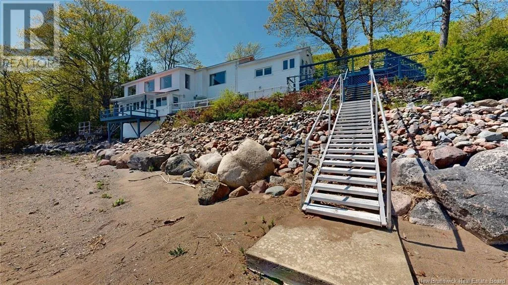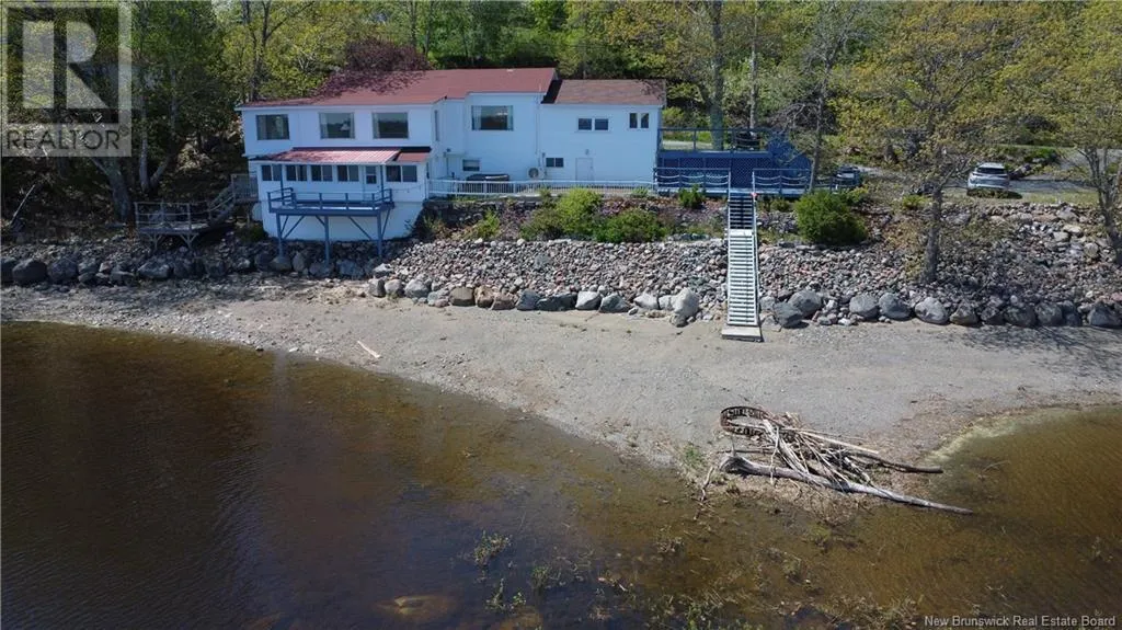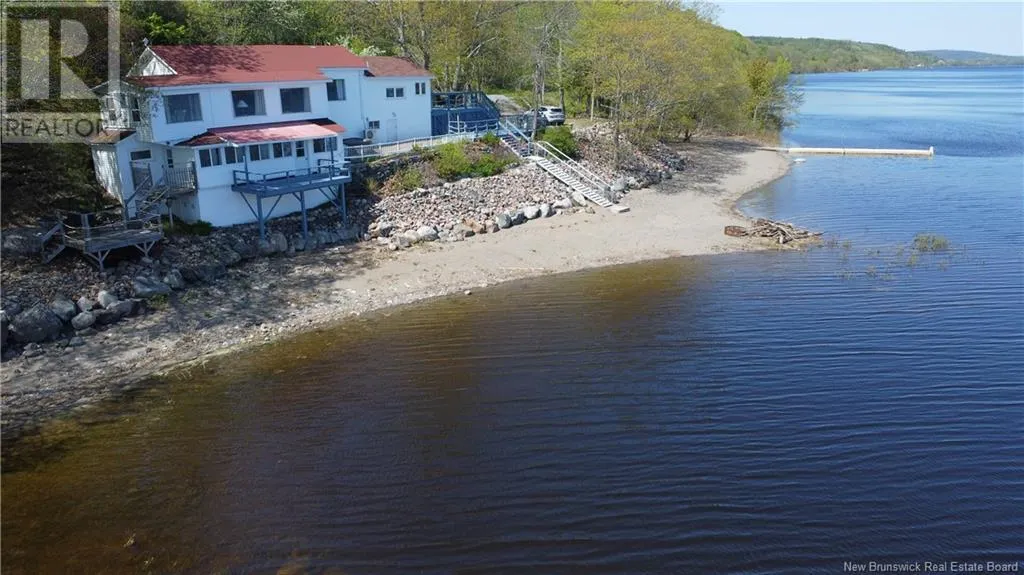 Spectacular Waterfront Home or 4 season Cottage on the St. John River Over 900 Ft of Private Shoreline! This rare and versatile year-round home or cottage offers the ultimate riverfront lifestyle on over 2 acres of landscaped land with an incredible 900 feet of water frontage on the stunning St. John River. Step inside to find a bright and inviting space with 3 bedrooms (2 non-conforming bedrooms), 2 full bathrooms, a large kitchen, separate dining room, hardwood floors, and an expansive, sunlit living roomall thoughtfully designed to showcase breathtaking river views from nearly every window. Outdoors is where this property truly shines. Enjoy your own private dock, sandy beach, and your private mooring, perfect for relaxing and entertaining. With four decks facing the river, youll have the perfect spot to soak in every sunrise and the natural beauty of the water all year long. And if you want a break from enjoying the outside feel free to step inside to enjoy the high speed internet!! Located just 5 minutes from the Evandale Inn and only 3540 minutes from Saint John, this is the ideal getaway or full-time residence. Whether you're looking for a peaceful home, a weekend retreat, or a turnkey Airbnb investment, this property offers unmatched charm, versatility, and waterfront living. Dont miss your chance to own this piece of paradise and sandy beaches on the river! (id:27476)