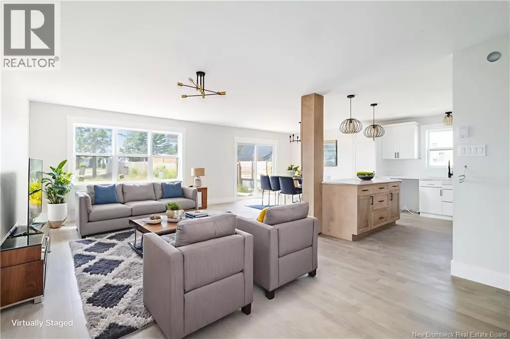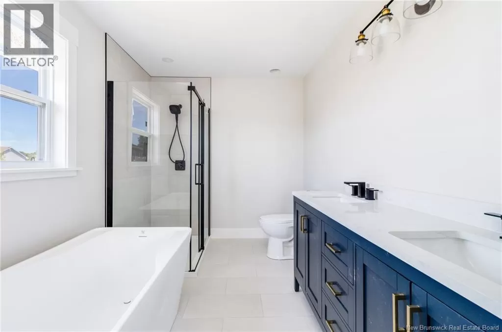 Welcome to 7 Brizley Street in Oromocto a brand-new build with stylish finishes and a thoughtful layout youll love. Step inside to a bright foyer with a convenient coat closet and half bathroom nearby. The open-concept living space is perfect for modern living and includes a heat pump for comfort all year round, featuring a beautiful kitchen that will be finished with sleek quartz countertops, plenty of cupboard space, and an oversized island ideal for entertaining. The adjoining dining and living areas are filled with natural light, creating an inviting space for everyday life. Upstairs, youll find four bedrooms, a main bathroom, and laundry. The spacious primary suite is a true retreat with a huge walk-in closet and a luxurious ensuite showcasing a soak tub and walk-in shower as well as an additional heat pump. The unfinished basement offers endless potential, already roughed in for an additional bathroom, ready for you to make it your own. An attached garage completes the layout. Outside, enjoy the deck that will be installed before closing, along with full landscaping and a paved double driveway. Move in and enjoy worry-free living in a beautiful new home! *appliances not included* *HST rebate to builder on closing & taxes to be adjusted on closing* (id:27476)