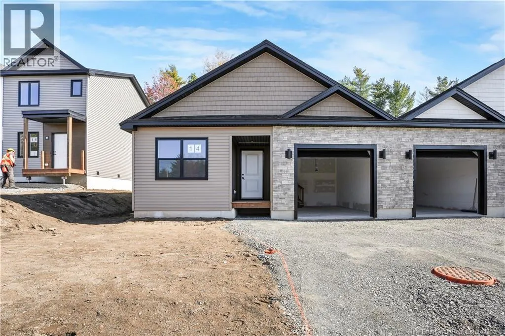 HWY2 TO EXIT 303 TO FINNAMORE TO TERRY FOX Introducing a stunning collection of brand-new garden homes in Oromocto, designed with comfort, function, and modern living in mind. These single-level homes offer an ideal layout for downsizers, professionals, or anyone looking for the ease of one-floor living without compromising on space or style. Featuring two generously sized bedrooms, the layout includes a primary suite with a walk-in closet and private ensuite, as well as an additional full bathroom for guests or family. The open-concept main living area is bright and welcoming, complete with GE appliance package and an energy-efficient heat pump to keep you comfortable through all seasons. Built for convenience and curb appeal, each home comes with a paved driveway, hydroseeded lawn, and the confidence of a 10-year Lux New Home Warranty. An unfinished basement offers 1150 Sq ft of excellent expansion potential with rough in for another full bath and egress window for potential bedroom, a family room, guest space or just need extra storage. With quality construction and thoughtful design throughout, these garden homes are a rare opportunity to enjoy brand-new construction in a well-established Oromocto neighbourhood close to amenities, parks, and just steps to Arc-en-ciel. Ready for October closings ! (HST Rebate back to builder on close. Photos of Unit 14 - units may vary) (id:27476)