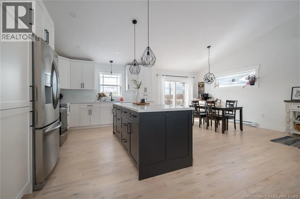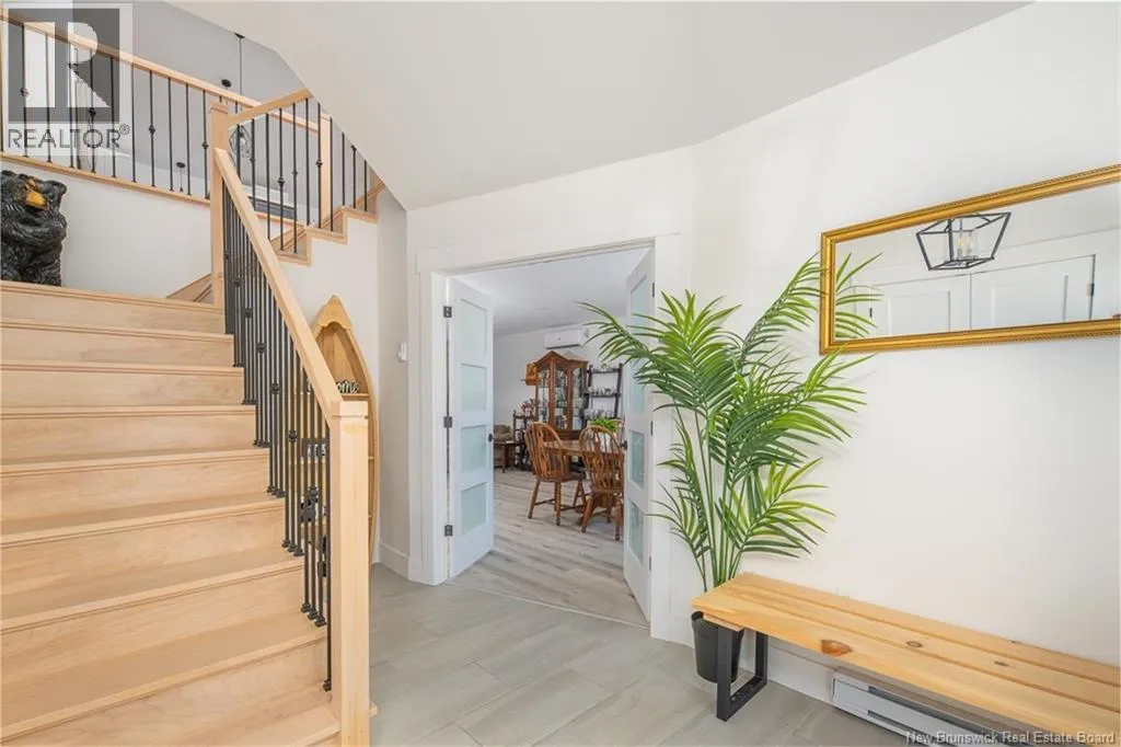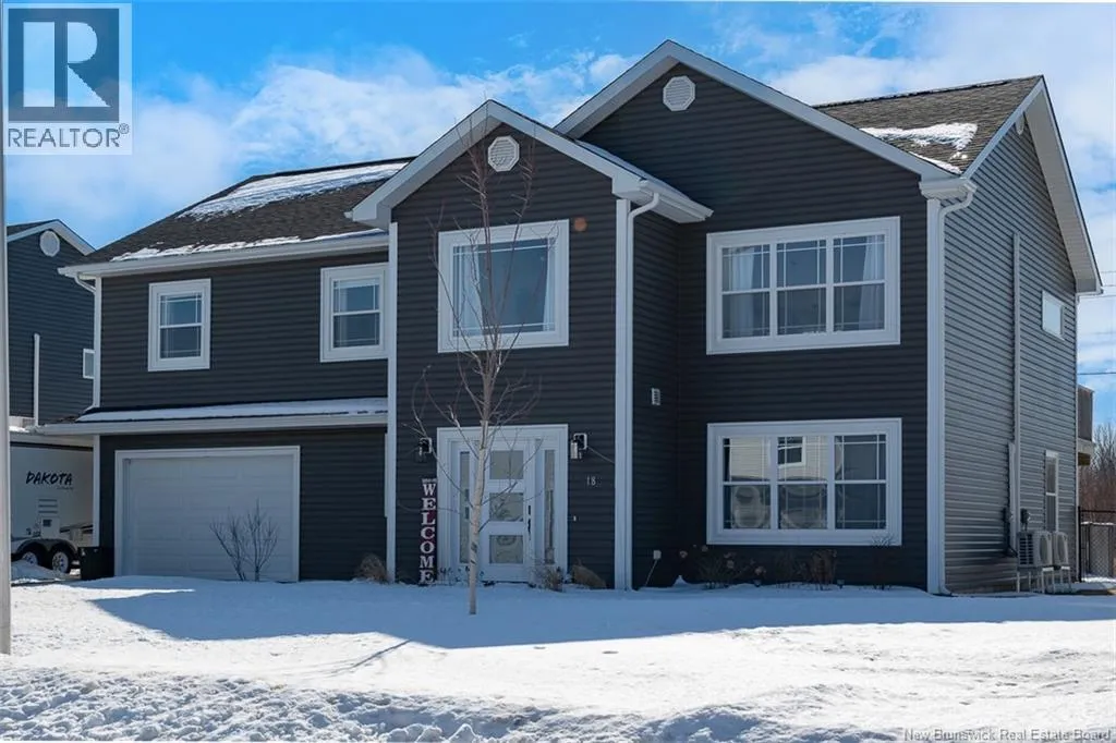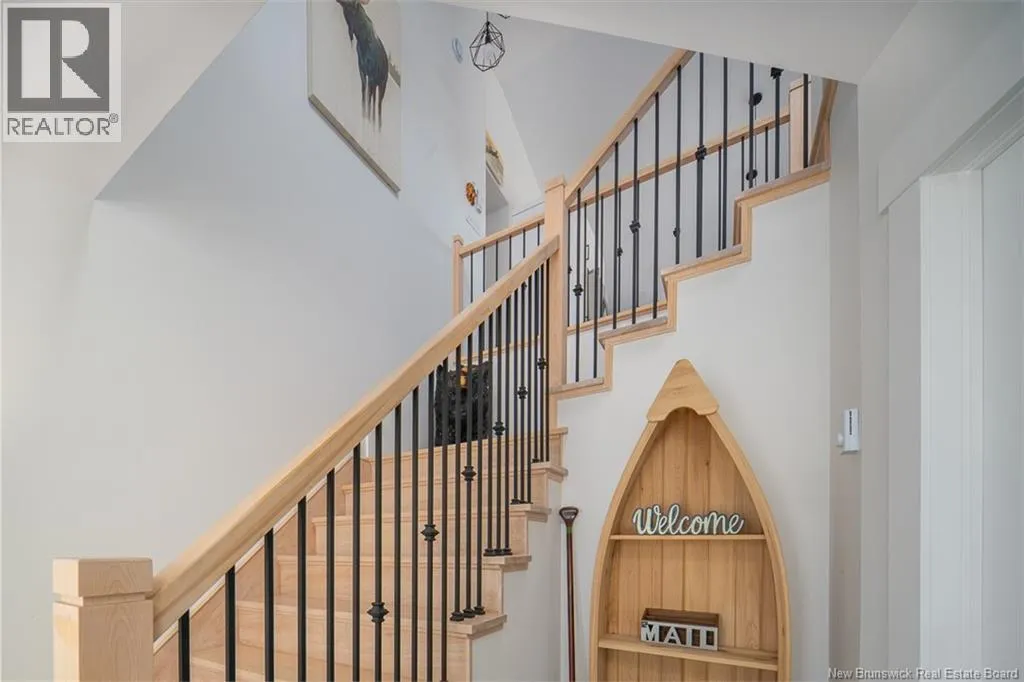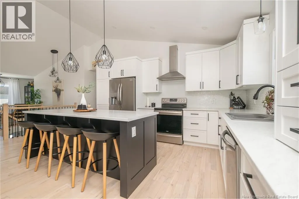 Waasis Rd to Doherty Drive Beautifully appointed and minutes from CFB Gagetown, this could be your ideal spot! From the moment you step inside, the tone is set. A grand staircase rises from the spacious foyer, leading to a bright, open concept great room. At the center of it all is the kitchen. Crisp white cabinetry keeps things timeless, while bold black accents on the island and light fixtures provide just enough edge to keep it interesting. This space also hosts the dining area and a spacious living room complete with a cozy reading nook or desk space. A ductless heat pump keeps this area at comfortable temperatures, further adding to the appeal. Three bedrooms and the homes main bathroom are on the upper level. The primary suite feels like a true retreat. It offers a walk-in closet and a beautifully finished ensuite featuring a tiled shower that wouldnt look out of place in a boutique hotel. The lower level still above grade expands your living space in all the ways that matter. A generous family room is ready for movie nights, game days, or a quiet escape when the upstairs gets lively. The family room also offers a second heat pump. The fourth bedroom and third full bathroom make this level ideal for guests or extended family. And lets not overlook the direct access to the large attached garage! Step outside and the lifestyle continues. The private, fenced backyard hosts a two-tier deck and an above ground pool, perfect for summer fun. (id:27476)