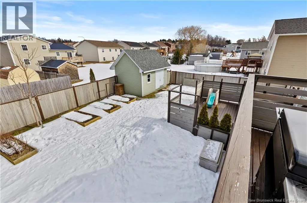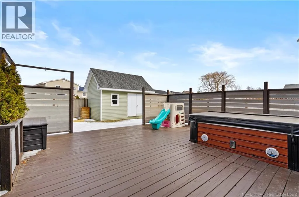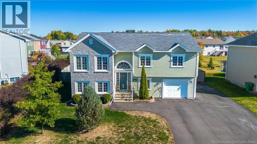 Waasis Rd to Oromocto West, turn left onto Hallihan Dr, then right onto Carter Crescent. Welcome to the beautiful 13 Carter Crescent! A split entry with great curb appeal, high-end finishes and paired with practical details for everyday living! Right from the front door you can see the quality for yourself, from the stone face, shrubs, paved driveway and wooden fence allowing privacy. In the backyard, you will have the peace of mind to let the kids and dogs run freely to play, you have easy access to an oversize shed for storage and a hot tub to sit in and relax all year long. The main level offers tasteful aesthetics, including a statement wall in the living space, quartz countertops in the kitchen and main bathroom, neutral paint throughout the 3 bedrooms and timeless finishes to pull it all together. The lower level offers the second family room, for a place space, entertaining or a home office. It also includes the 4th bedroom, second full bath with a separate laundry room with utility closet. And the cherry on top is the large mudroom space connected to the attached garage, for dropping off groceries, bookbags, and a place for the whole family to kick off their shoes and coats, keeping the mess out of the way! The location of the home is ideal, as it is walking distance to Oromocto West's largest park- Anniversary park, where there are trails, a splash pad, jungle gym, basketball courts and a sliding hill. (id:27476)