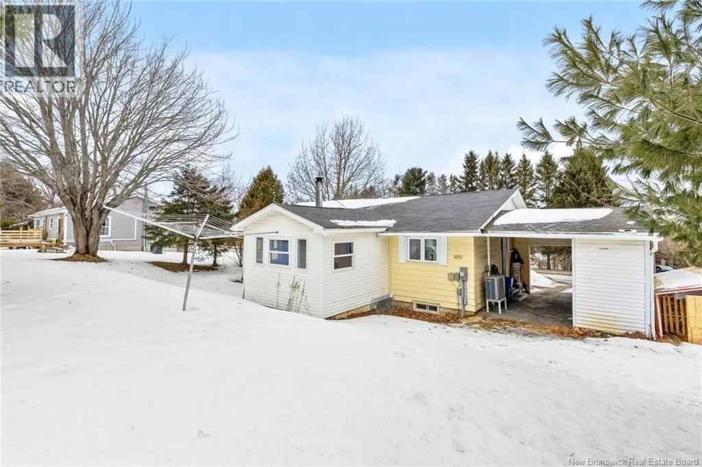 From Trans-Canada Hwy, Take Exit 301 to Black Watch Avenue, from there take Waasis Rd to Macdonald Avenue. Civic # 337. Sign is up! Welcome to 337 Macdonald Avenue, Ideally located just minutes from CFB Gagetown, the hospital, and local shopping, this well-maintained bungalow offers comfort, convenience, and great natural light. The bright open-concept living and dining area flows nicely into a sunny four-season sunroom additionperfect for relaxing and enjoying the extra living space year round. The main level features a spacious primary bedroom with two closets, a second well-sized bedroom, and a versatile third room ideal for a nursery, home office. The full bathroom includes a tub and shower combination. The bright tiled kitchen offers a charming pantry area for additional storage. The basement includes a dedicated laundry area and is already plumbed for a half bath, providing excellent potential to expand the finished living space. A ductless heat pump ensures efficient heating and cooling throughout the year, while a cozy wood stove adds warmth during the winter months. Outside, youll find a paved driveway and carport for convenient covered parking. A great opportunity for first-time buyers, downsizers, or anyone relocating to Oromocto. (id:27476)