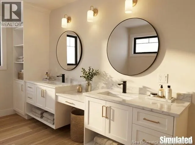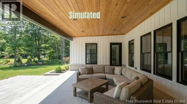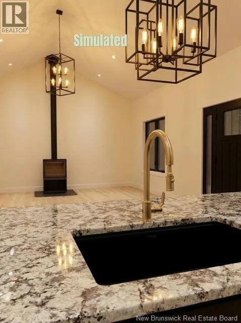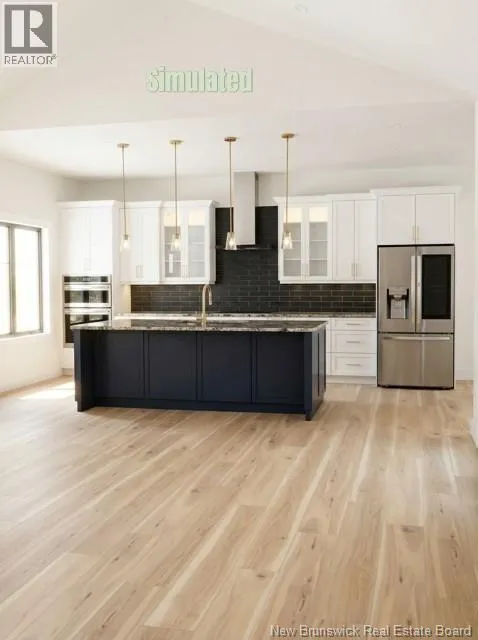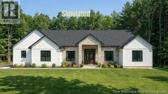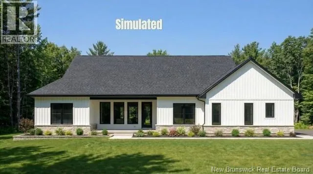 Route 102 to Broad Road to Irvine Street Beautiful modern farmhouse offering stylish one-level living on a generous ¾ acre lot just minutes from CFB Gagetown and only five minutes to the Town of Oromocto. Ideally located on the outskirts of town, this property provides a peaceful setting while remaining close to schools, shopping, restaurants, and everyday amenities. Thoughtfully designed with comfort and functionality in mind, this home features a bright open-concept layout highlighted by vaulted ceilings that create a spacious and welcoming atmosphere throughout the main living area. Large windows allow natural light to fill the home while providing views of the surrounding property. The kitchen serves as the heart of the home and features a large island, stone countertops, quality cabinetry, and modern finishes. It flows seamlessly into the dining area and great room, creating an ideal space for entertaining and everyday living. The home offers three well-sized bedrooms, private primary suite with tray ceiling, walk-in closet, and a beautifully appointed ensuite complete with double vanity, freestanding soaking tub, and custom tile walk-in shower. Two additional bedrooms are positioned on the opposite side of the home along with a full bathroom, offering excellent separation & privacy for family members or guests. Vendor is related to listing REALTOR® who is Licensed within the Province of New Brunswick. Some Photos are Simulated. (id:27476)