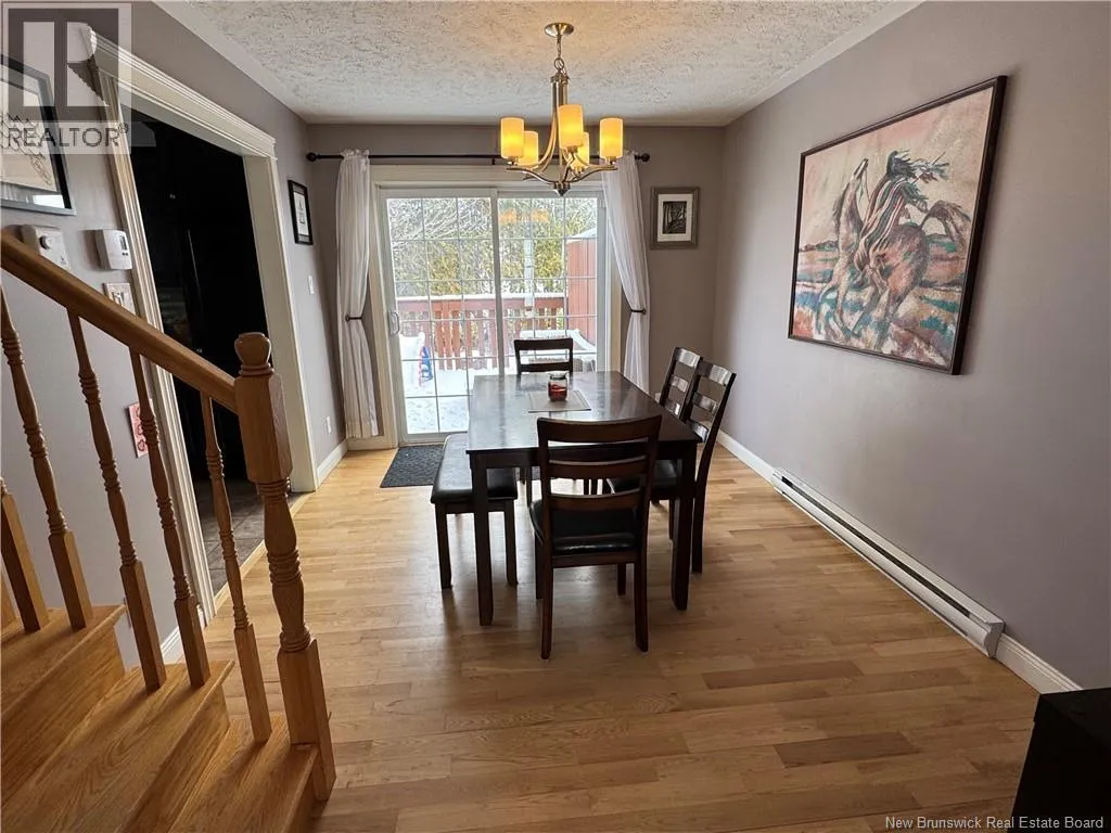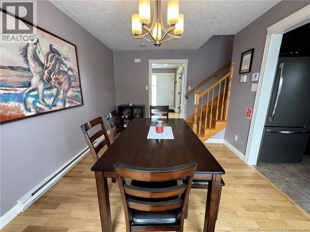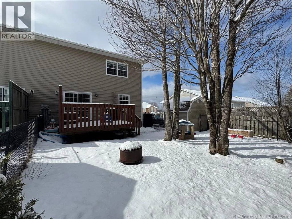 Trans-Canada Hwy/NB-2 E in Fredericton towards Oromocto. Take Exit 303, Turn Left on Finnamore, Right on Carpenter, Left on Dawson, follow Dawson to the Right, then Left on Harris, travel about 200m and 9 Harris is on the Right. Welcome Home! Welcome to Canadas Model Town and proud home to Base Gagetown. Nestled in a family friendly neighbourhood in ever popular Oromocto West, sits 9 Harris St., a charming duplex where comfort and convenience come together. Pull into the double paved driveway, choose a door, any door and step inside. The main door greets you with a welcoming foyer that leads to a bright living room featuring an energy efficient heat pump, along with a convenient half bath. Just beyond, youll discover the cozy dining area that connects seamlessly to both the upstairs and inviting kitchen. The kitchen is designed to please the home chef, offering ample cabinetry, counter space and an attractive tile backsplash, and stainless steel appliances. Gather in the dining area for a meal or set the table for a perfect game night with family & friends. Prefer to cook outdoors? Head through the patio doors to your own private deck and fire up the grill. The fenced backyard provides peace of mind for pet owners, giving them a safe place to roam. A few mature trees add extra privacy, and a storage shed offers plenty of space for outdoor tools and toys. Upstairs youll find three comfortable bedrooms and a full bathroom. The primary bedroom features the added convenience of a spacious walk-in closet. The finished basement expands your living space with a family/rec room, full bathroom, laundry area, and additional storage making this home as functional as it is welcoming. (id:27476)