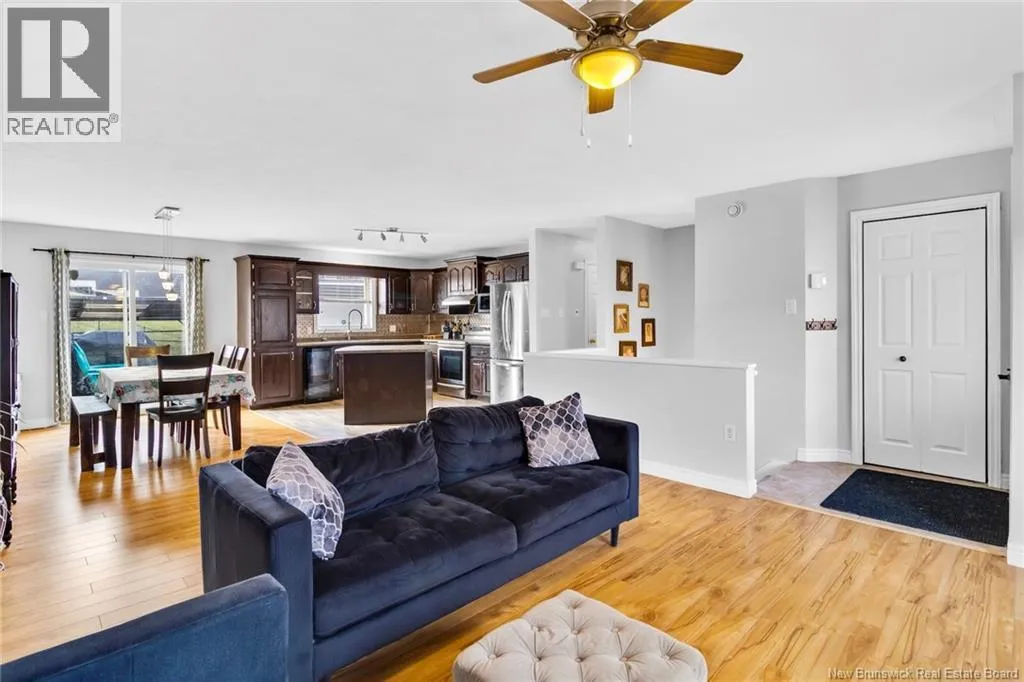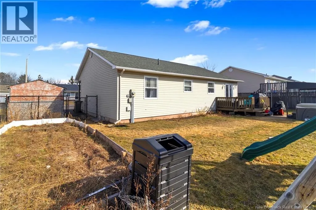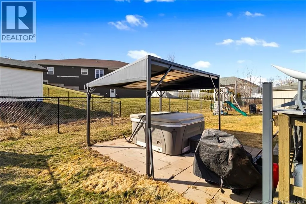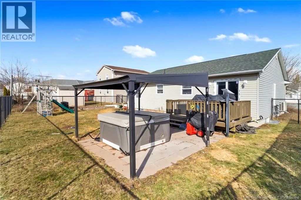 Take Waasis Road in Oromocto to Windgate Avenue, turn Left onto Windgate Avenue, turn Right onto Chatham Avenue, Turn left onto Parkview Avenue, Turn Left onto Lansdown Avenue, travel to civic 53 on your Left A beautifully maintained bungalow in a highly sought after neighbourhood, this home blends comfort, style, and true move in ready appeal. An inviting covered veranda sets a warm first impression before you step inside to a bright, open concept main floor designed for everyday living and effortless entertaining. The updated kitchen features an island, ample cabinetry, and patio doors off the dining area that open to a private backyard oasis complete with a deck, pergola covered hot tub, and new fencing. Down the hall, three well appointed bedrooms offer plenty of space, including a comfortable primary bedroom with direct access to the main bath. The lower level expands your living options with a generous family room perfect for movie nights or gatherings, a versatile den/office, a second full bathroom with shower, an oversized laundry room, and a dedicated storage room to keep everything organized. A heat pump ensures efficient heating and cooling throughout the year. With the NB Trail and Deer Park just moments away, outdoor recreation and family fun are always within reach. This home delivers the ideal combination of location, convenience, and thoughtful updates. (id:27476)