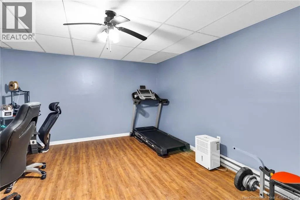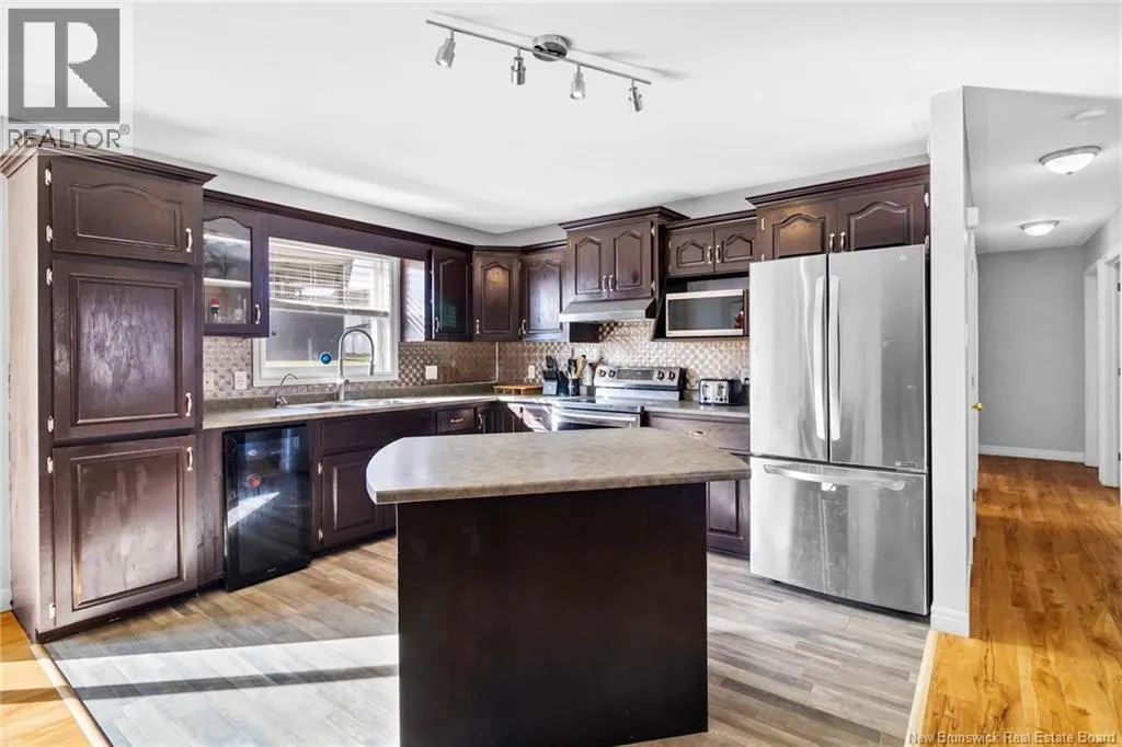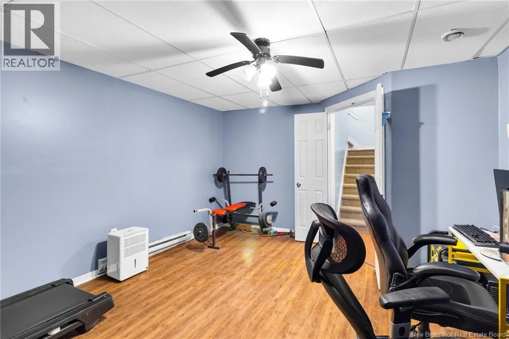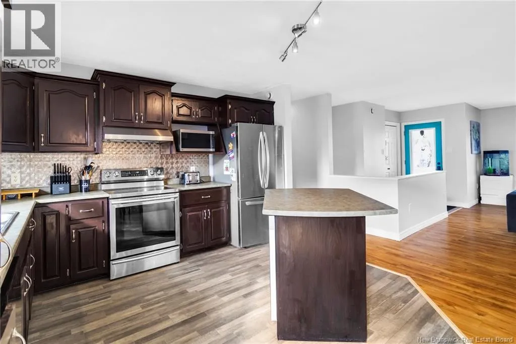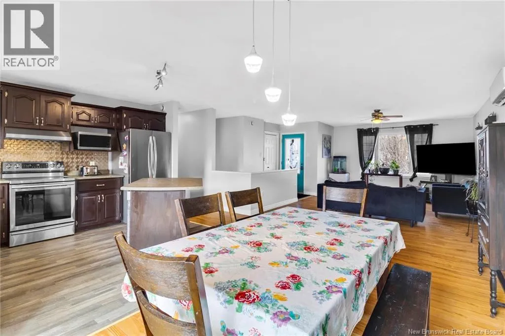 Take Waasis Road in Oromocto to Windgate Avenue, turn Left onto Windgate Avenue, turn Right onto Chatham Avenue, Turn left onto Parkview Avenue, Turn Left onto Lansdown Avenue, travel to civic 53 on your Left A beautifully maintained bungalow in a highly sought after neighbourhood, this home blends comfort, style, and true move in ready appeal. An inviting covered veranda sets a warm first impression before you step inside to a bright, open concept main floor designed for everyday living and effortless entertaining. The updated kitchen features an island, ample cabinetry, and patio doors off the dining area that open to a private backyard oasis complete with a deck, pergola covered hot tub, and new fencing. Down the hall, three well appointed bedrooms offer plenty of space, including a comfortable primary bedroom with direct access to the main bath. The lower level expands your living options with a generous family room perfect for movie nights or gatherings, a versatile den/office, a second full bathroom with shower, an oversized laundry room, and a dedicated storage room to keep everything organized. A heat pump ensures efficient heating and cooling throughout the year. With the NB Trail and Deer Park just moments away, outdoor recreation and family fun are always within reach. This home delivers the ideal combination of location, convenience, and thoughtful updates. (id:27476)