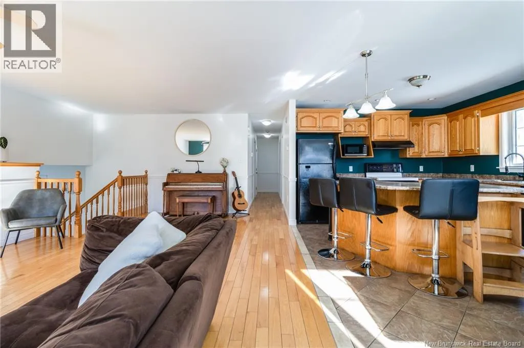 Waasis Road to Hallihan, right onto Carter Welcome to 21 Carter Crescent, located in sought-after Oromocto West! This well-maintained side split offers a functional layout and plenty of space for the whole family. Step inside to a huge tiled foyer featuring a convenient built-in coat bench, perfect for busy households. The main floor boasts a bright living room with a heat pump for year-round comfort, a dining area, and a spacious kitchen complete with a large island with overhang, ample cupboard space, and plenty of prep area for cooking and entertaining. Down the hall youll find three good-sized bedrooms and a full main bathroom featuring a relaxing jet tub. The lower level adds fantastic additional living space with a cozy rec room and a second heat pump, two additional bedrooms, a second full bathroom, and a laundry room, ideal for larger families, guests, or a home office setup. Outside, enjoy a fully fenced backyard with a deck, perfect for summer barbecues, kids, or pets. An attached single-car garage adds convenience and extra storage. A great home in a family-friendly neighbourhood close to parks, schools, and amenities, dont miss your chance to view! (id:27476)
