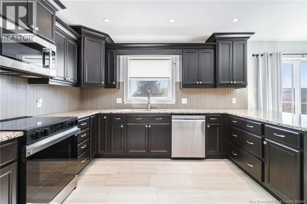 From Carpenter Drive, turn right onto Dawson, then left onto Knowlton Crescent. A RARE find! This beautiful two storey offers class, timelessness and space for a large or growing family! There are a number of things that sets this home apart from others- first thing is, that it has 4 bedrooms and 2 full bathrooms on the second floor, so for those with a third child, there is no more having to decide whose room is in the basement. One of the washrooms is an ensuite to the large primary bedroom which has three closets of its own, one being a walk-in with a window. The main level of the home has a perfectly decorated office, adorable 1/2 bath and laundry room, new flooring throughout its updated kitchen with quartz countertops, large family room and formal dining room, which would host the best holiday dinners! Overall, the home is perfect for entertaining, but the best place to host would be on the lower level of the home, where you will find the third full bathroom, fifth bedroom and the massive family room to play some pool, watch the game or head out through the walk-out, onto your brand new 3 tier deck to enjoy a fire with friends, play catch in the fenced in backyard or enjoy a bbq with family. The home has been freshly painted and is completed with multiple heat sources, an attached garage and is walking distances to the Ecole Arc-en-ceil. (id:27476)