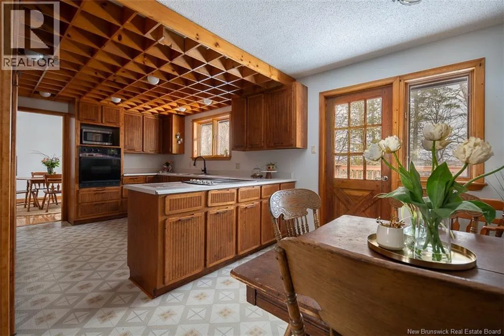 Waasis Rd to MacDonald Ave If youve been searching for a home with income potential in a highly desirable location near Base Gagetown, this property deserves a closer look. Far from cookie-cutter, this home stands out with its distinctive style, thoughtful layout, and flexible living spaces. Set on a generous 0.47-acre lot with a peaceful backyard, this property offers privacy and functionality. One of its most valuable features is the lower level with its own separate walkout entrance, making it ideal for an in-law suite, multi-generational living, or a potential rental unit. The spacious foyer leads up to the bright main living area with vaulted ceilings and a ductless heat pump. The kitchen is full of charm, featuring solid wood cabinetry, unique wood-accented ceilings, a built-in stovetop, and a wall oven. It features a dining nook and direct access to the back deck. Down the hall, find 3 bedrooms and a full bathroom with soaker tub and walk-in shower. The lower level offers even more possibilities with an open-concept kitchen, dining, and living area. A full bathroom with a walk-in shower and two additional bedrooms complete this level. One of the bedrooms features walkout access to the deck. Located in sought-after Oromocto near Base Gagetown, this one-of-a-kind property offers space, style, flexibility, and exceptional value for families, military buyers, or investors alike. 340 MacDonald Avenue is more than just a homeits an opportunity. (id:27476)