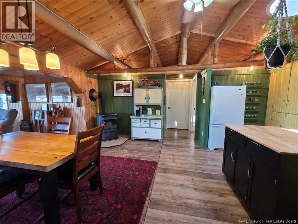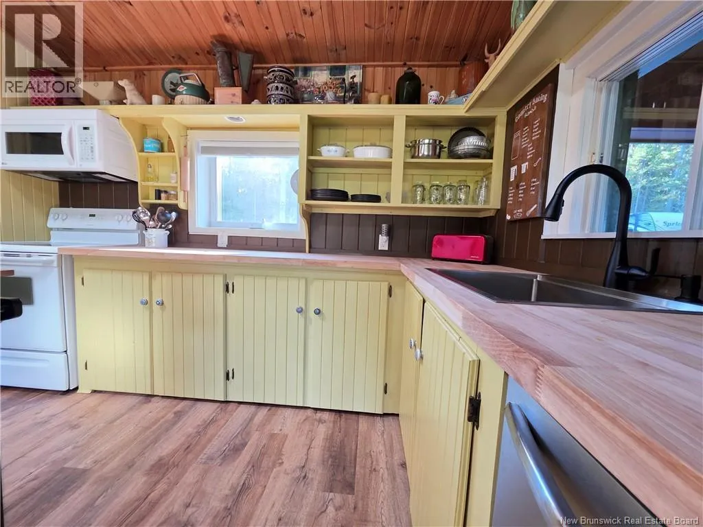 Travel down Route 385 until you see 1546 Route 385, Oxbow This beautifully updated home sits on 4.9 acres overlooking the Tobique River, offering million-dollar views and a perfect blend of modern upgrades with rustic charm. The layout has been redesigned to feature a spacious primary bedroom with walk-in closet/office. Off the primary, youll find a convenient half bath with laundry and storage, as well as a back entrance that leads to the yard, sheds, and gardening/workshop areas. Interior upgrades include new insulated flooring in the bedroom and utility room, restored exposed beams, 200-amp service with new panel and surge protection, hot water on demand, new washer & dryer, updated pressure tank, new sinks, faucets and toilet, butcher block countertop with dishwasher, three new windows, and a WETT-certified pellet stove. The septic has been replaced with a new 660-gallon plastic tank. Outdoors, a brand-new 20x24 garage with breaker panel, two storage sheds, and a greenhouse add convenience. A generous front deck with gazebo provides the perfect place to sip your morning coffee while taking in the river views, or to relax in the evening and enjoy breathtaking sunsets. Steps lead down a steep slope to the waters edge, giving access to the Tobique River. With nearly 5 acres of land, extensive updates, and stunning views, this property is ideal as a year-round home or private retreat. (id:27476)