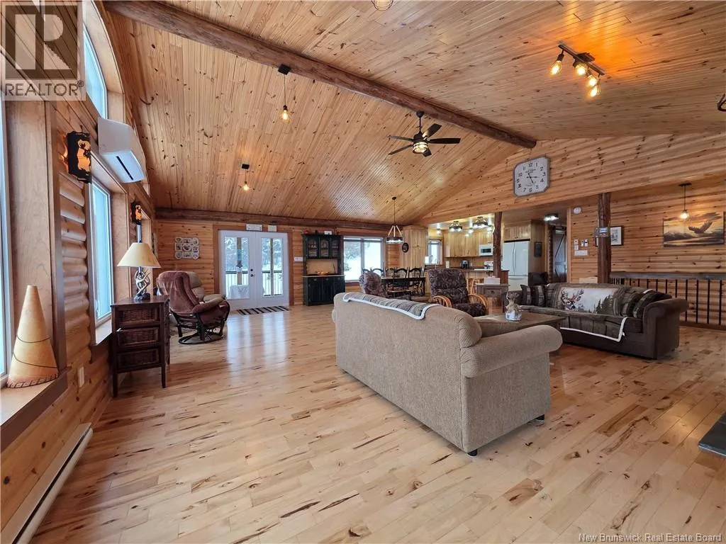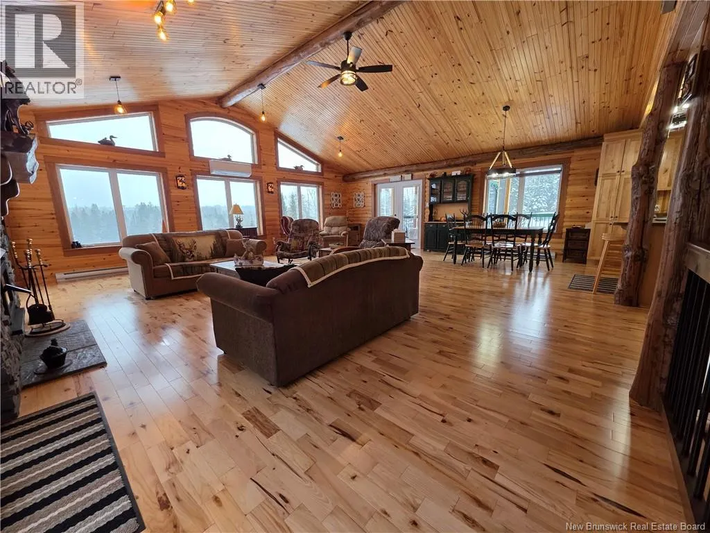 From Grand Falls, take Route 108, take a left on Route 385, drive a 16km, a sign will be posted on your right. Tucked away on 4.2 acres of private natural beauty, this thoughtfully built 2018 home offers a peaceful retreat surrounded by forest, open space, and views along the beautiful Tobique River. With easy river access, nearby snowmobile and ATV trails, and frequent wildlife sightings, this property invites you to slow down and enjoy the outdoors. Inside, the open-concept main floor is warm and welcoming, featuring 12' cathedral ceilings, wood finishes, and a cozy wood-burning fireplaceperfect for cooler evenings. The main-level primary bedroom, full bathroom, and laundry provide comfortable one-level living, while the screened-in porch offers a relaxing space for morning coffee and taking in the peaceful surroundings. The walk-out basement extends the living space with two additional bedrooms, a second full bathroom, an office or hobby room, and ample storageideal for family, guests, or working from home. Outside, a beautifully designed firepit area with stunning views sets the scene for evenings under the stars. Whether strolling the property or watching for wildlife, the outdoor spaces offer privacy, beauty, and a true connection to nature. Completing the property is a 24 x 36 insulated garage with 10 ft ceilings, providing generous space for vehicles, equipment, or a workshop. With unmatched privacy and room to roam, this turn-key riverside home is perfect as a full-time residence or serene escape. (id:27476)