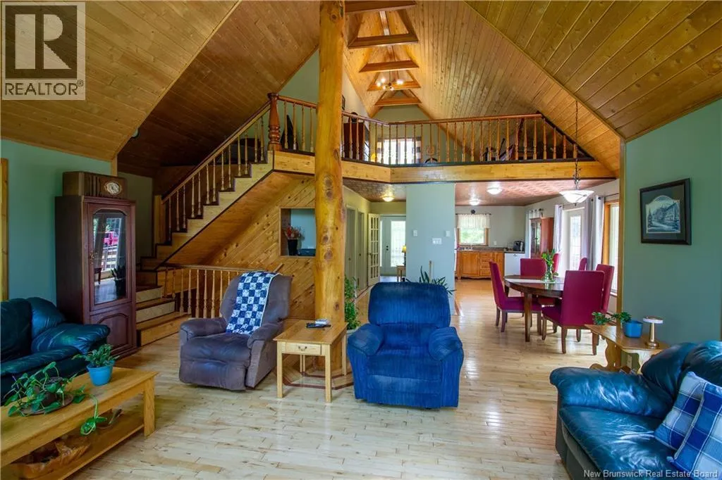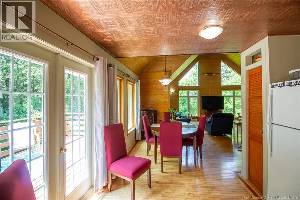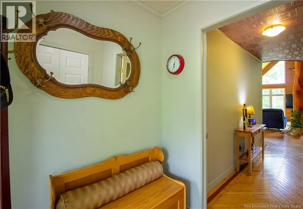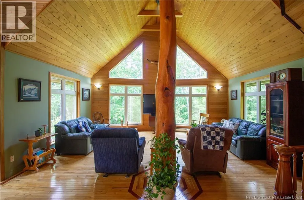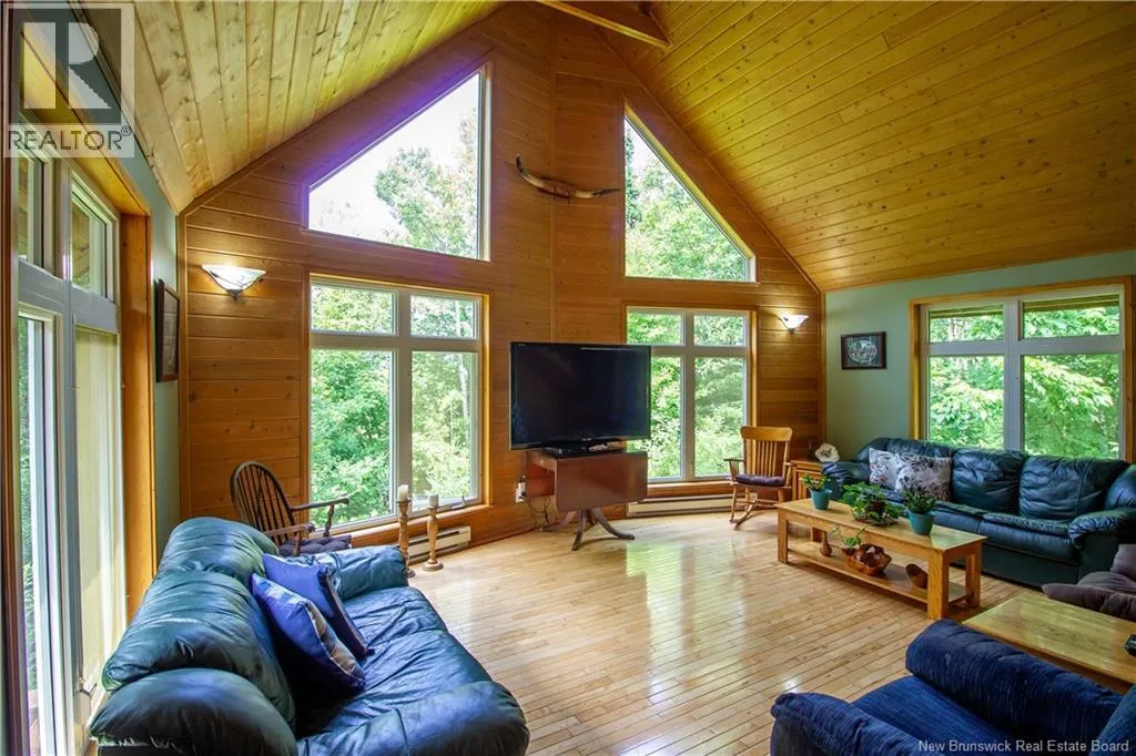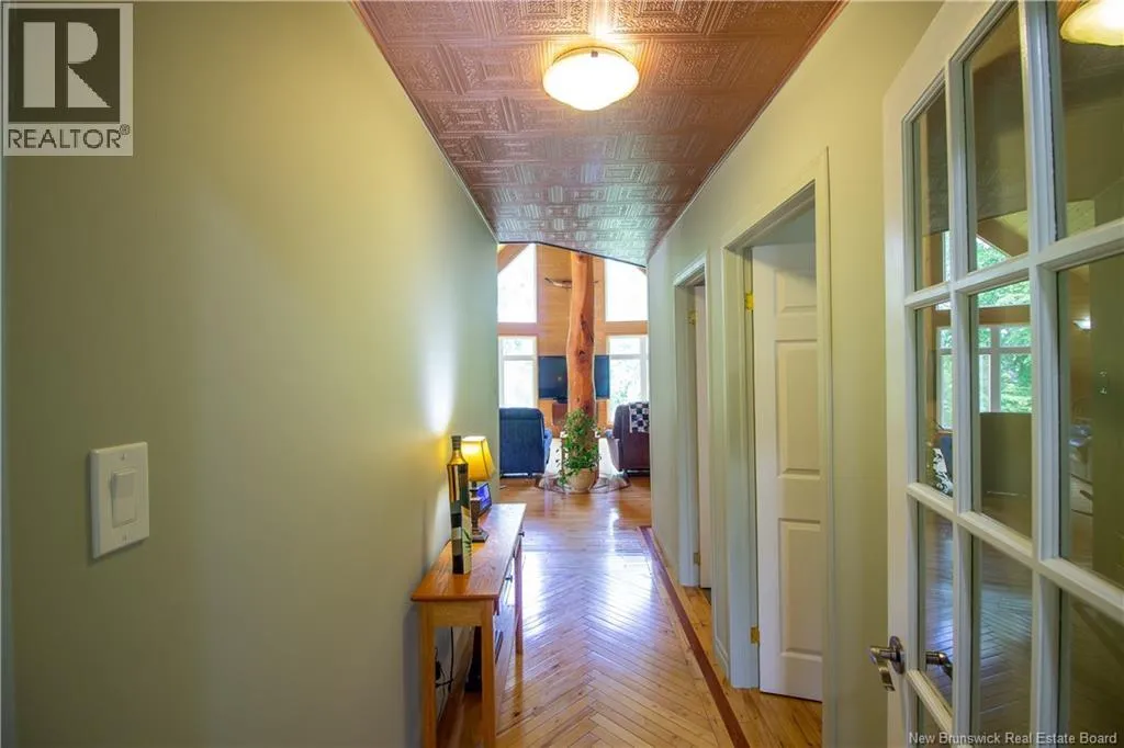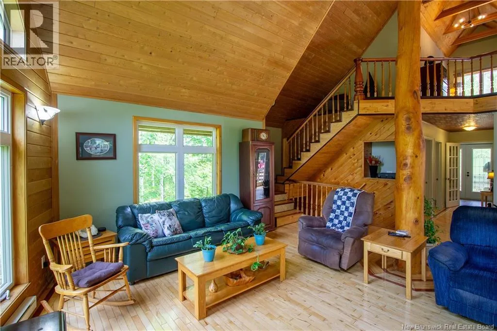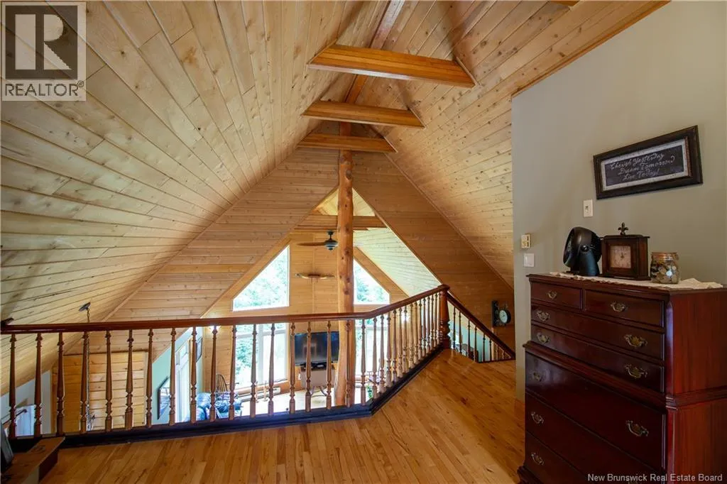 Hall Rd to Valleyview to Orchard - First home on left. Approx 5 km from the traffic lights on Main Street Hampton Chalet-Style Retreat tucked away on a private 1 acre lot just minutes from Main Street Hampton. This custom built chalet-style home offers the perfect blend of rustic charm and modern comfort. Relax on the covered verandaan ideal place to unwind at the end of the day. Step inside to a welcoming foyer and down the hall to a versatile bedroom or office, and a full bathroom. The heart of the home features soaring vaulted ceilings reaching up to 21 ft, creating a bright, open-concept living space. The living room is highlighted by large windows overlooking your private yard, while the dining area also boasts generous windows that fill the space with natural light. Seasonal views of Lake McManus can be enjoyed, with potential to enhance to year-round views. The oversized kitchen offers ample cabinetry and garden doors that lead to the side deck perfect for entertaining or enjoying morning coffee. Upstairs, youll find an open loft-style primary suite with a walk-in closet and convenient half-bath ensuite. The newly finished basement adds valuable living space with two additional bedrooms, a rec room, laundry area, and a second half bath. Notable features include: custom wood floors, wood ceilings, copper style ceilings in the hallway and kitchen, and Kohler windows with warranty remaining... And yes - theres even a beautifully incorporated tree feature in the living room, adding a unique touch of nature indoors. Truly one-of-a-kind! Call today ! Looking at offers as they come! (id:27476)