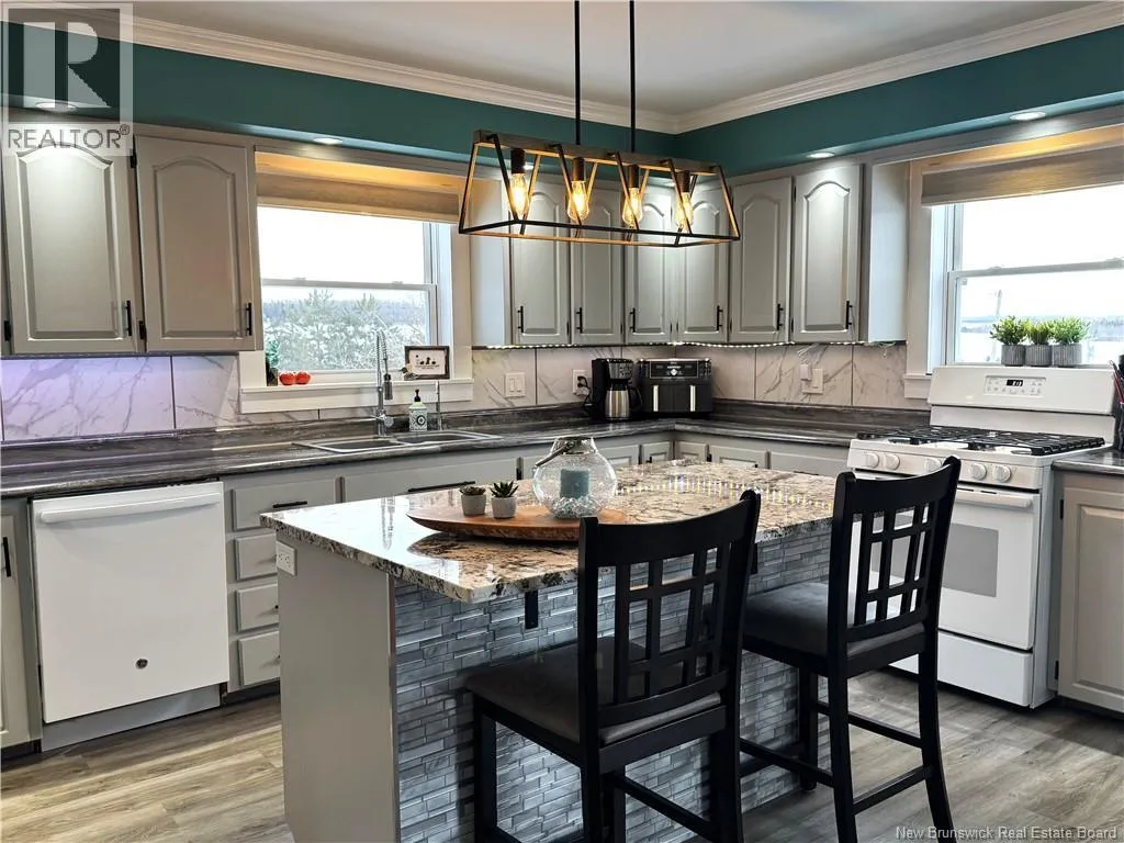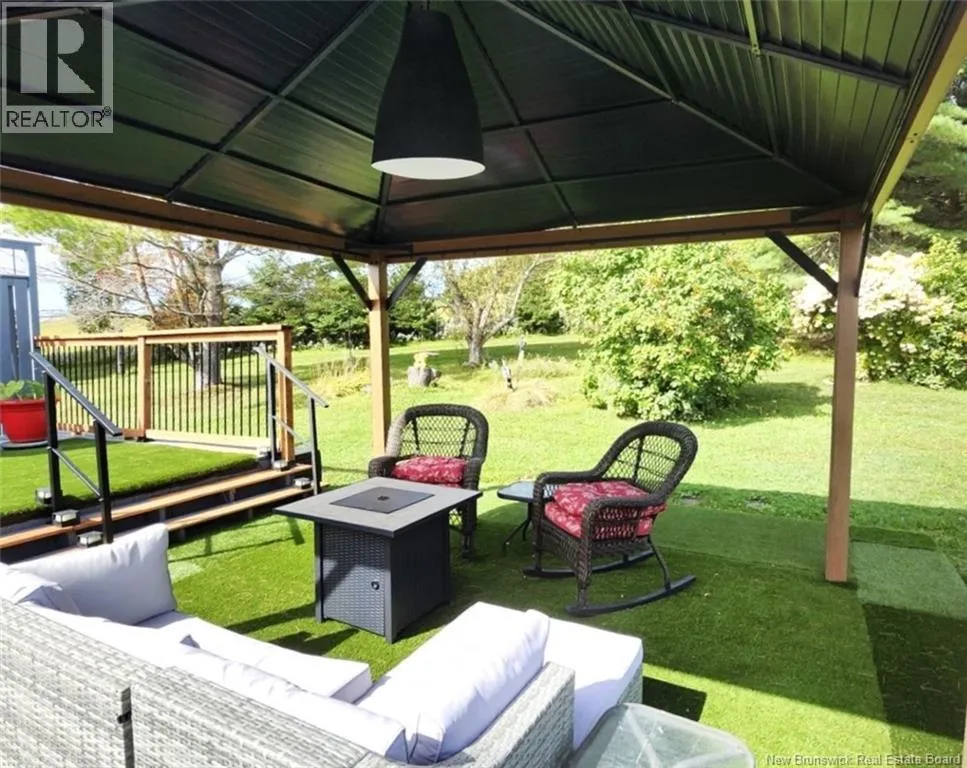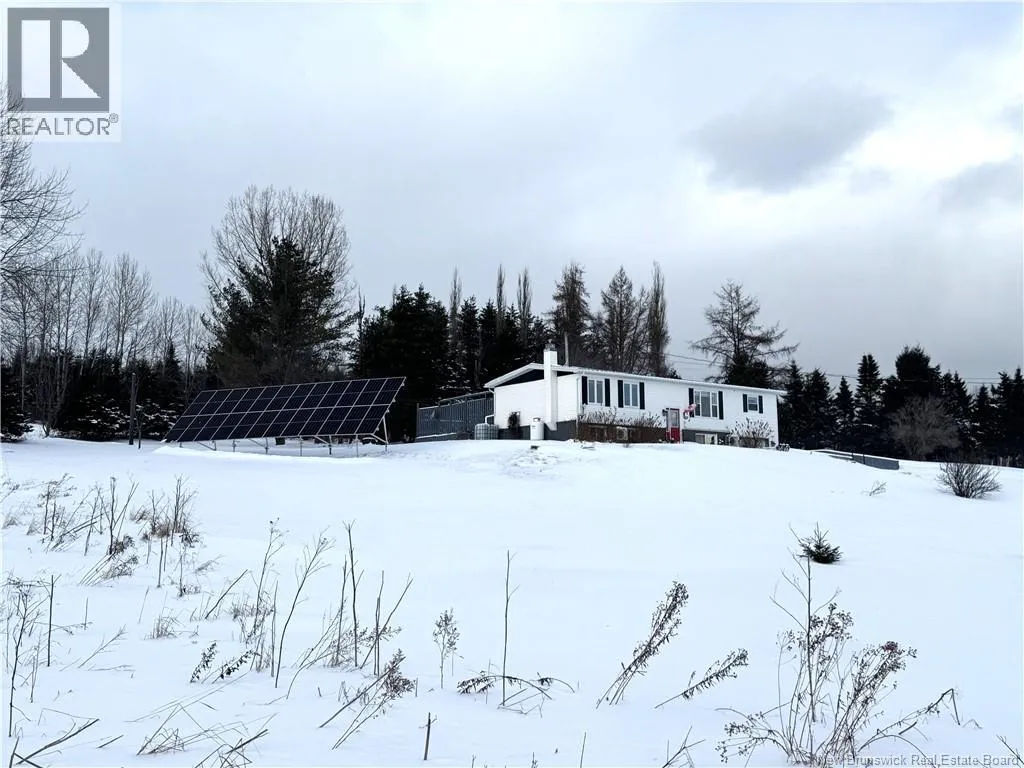 Route 130 to Lansdowne exit, turn left on ramp , house is on the right This lovely three-bedroom home is perfectly situated on a two-acre lot between Hartland and Florenceville-Bristol. This beautifully maintained and move-in ready property has seen numerous updates and offers the ideal blend of comfort and efficiency. Step inside to find a spacious kitchen featuring painted oak cabinets and a large center island with a granite top, and the formal dining area and inviting living room just steps away. The master bedroom on the main level is bathed in natural light with patio doors that open onto the back deck. Enjoy quiet evenings in your private oasis complete with a relaxing hot tub, and a screened gazeboa perfect place to unwind while barbecuing a steak, taking a long soak in the hot tub and enjoying a beautiful sunset. The main floor also includes a second bedroom, renovated bathroom, and convenient laundry room. Downstairs, the fully finished basement offers a large third bedroom, bright family room with a cozy propane fireplace, a second full renovated bathroom, and a small kitchenette, creating an excellent granny suite or guest space. Outside, a storage shed/workshop tucked among the trees adds to the propertys postcard quality charm. Extras include a gas fireplace insert, gazebo, hot tub, generator, John Deere riding mower, 21 cu. ft. freezer, and a solar array that keeps your average power bill around just $65 per month and is virtually maintenance free! This home is as affordable to own as it is delightful to live in! (id:27476)