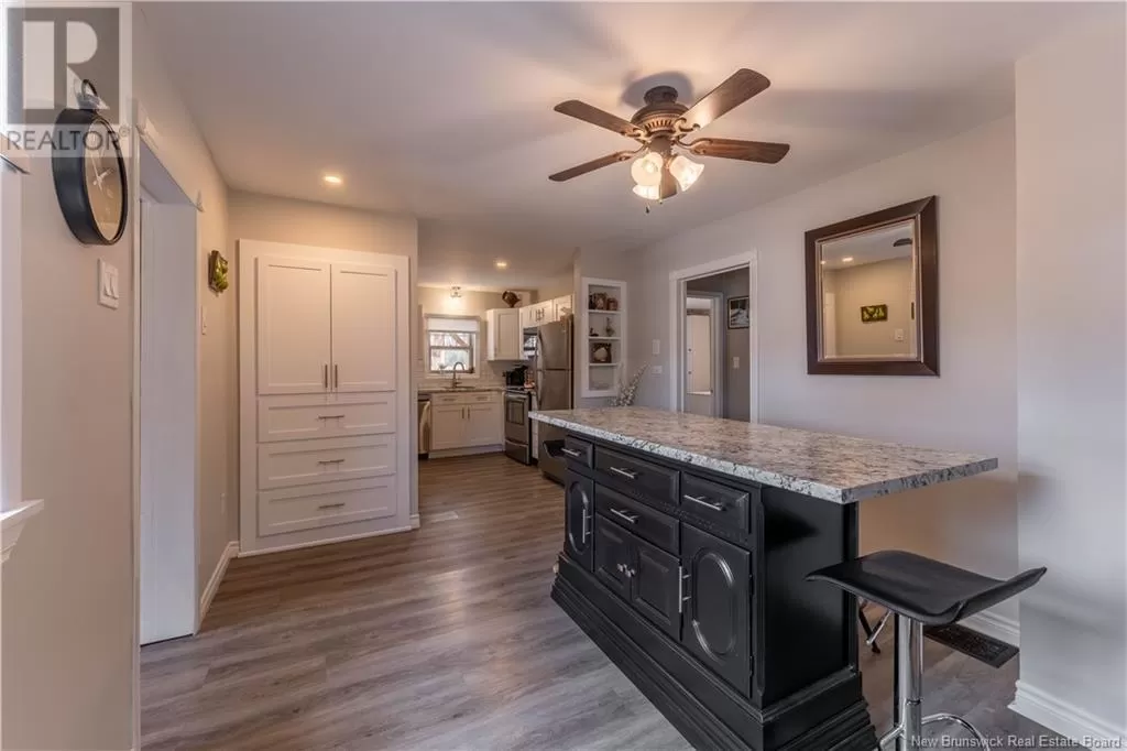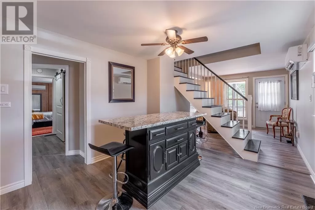 Welcome to this beautifully renovated home, perfectly located with easy access to New River Beach, St. Andrews, St. Stephen, and Saint John all just a short drive away via the highway. Close to some great restaurants and only 7 mins away from a nearby golf course! This charming 3-bedroom home offers a smart and functional layout, including an additional office space ideal for remote work or a hobby room. The galley style kitchen has been completely updated and features a gorgeous island that makes the most of the space perfect for casual meals or entertaining guests. Relax on the adorable front porch, enjoy the private back patio with views over peaceful blueberry fields, or take advantage of the oversized garage (with its own 100 amp panel) and storage sheds for all your gear. The home itself is equipped with a 200 amp panel, heat pumps for year-round comfort, and a dry basement with great storage potential. Other highlights include: 3 generously sized bedrooms, Fully paved oversized driveway, Move-in ready interior with thoughtful finishes throughout This one is a rare find style, comfort, and convenience all wrapped into one lovely property. Call today! (id:27476)