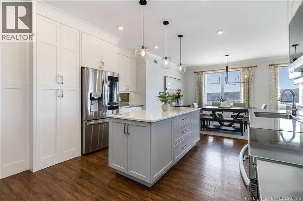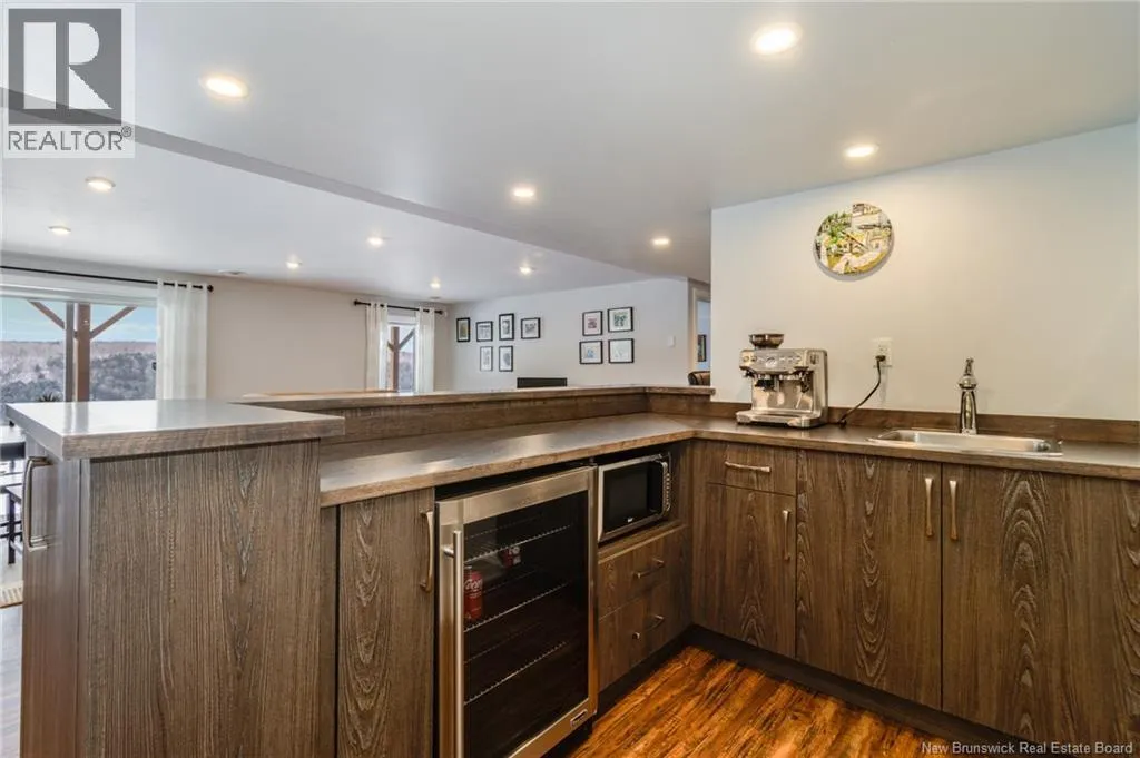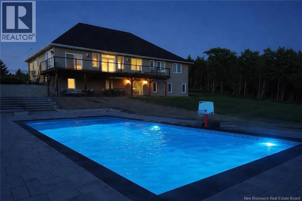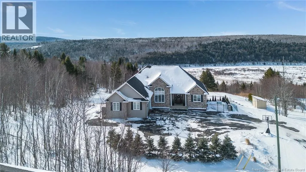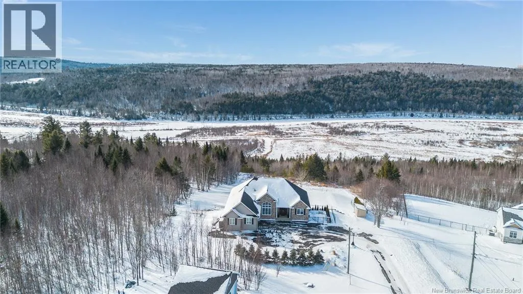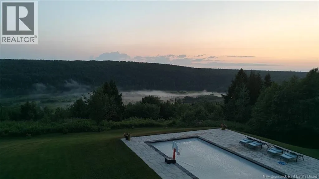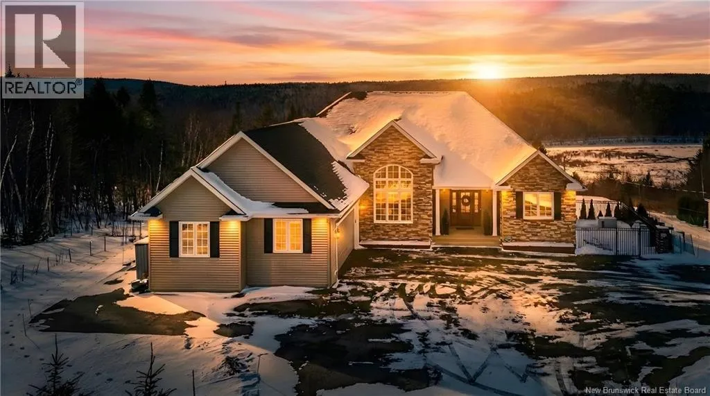 Marysville Bypass to Penniac exit to Route 628 to Inspiration Lane Nestled along the Nashwaak, this luxurious residence offers sweeping vistas of New Brunswicks beautiful landscape. The main floor features 9-foot ceilings, a modern white kitchen, a central island, and a bright dining area overlooking the view. The open living room includes a fireplace as its focal point, leading to a versatile bonus room with stunning views. The main office at the front of the house features a striking 14-foot cathedral ceiling and a large display window. The guest bedroom, with its own bathroom, is located on one wing, while the master suite occupies the opposite wing, offering a walk-in closet and ensuite bath. A formal mudroom off the garage and convenient laundry round out the main level. Downstairs, theres a spacious family room with walk-out access to the yard, a bar area, two bedrooms, a third full bathroom, and plenty of clean storage space. Furthermore, a fully integrated propane backup generator ensures continuous and reliable power supply without interruption. The two-acre property is distinguished by its meticulously maintained landscaping, interlock stone pathways, a retaining wall, and an intentionally designed garden. Numerous blue spruce and emerald cedar trees have been planted to enhance privacy. Additionally, the NB trail is situated at the rear of the property. The heated in-ground saltwater pool offers great views and includes an electric cover, making this property a genuine oasis (id:27476)
