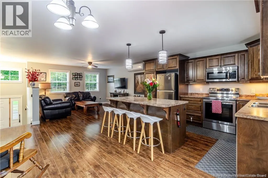 Route 628, Penniac to civic #183 Country living at its finest - just minutes from Fredericton! This custom-built split entry with recent upgrades, offers a perfect blend of comfort, style, and a touch of nature. The open-concept main living area overlooks a private backyard with a spacious deck and a shallow pond - a tranquil feature that makes this property special. The kitchen shines with beautiful dark cabinetry, a large island, and stainless steel appliances. The principal bedroom includes generous closet space and a cheater door to the main bath, and the second bedroom features double windows for abundant natural light. The lower level features an oversized bedroom with large windows, a second bathroom, a spacious family room with a WETT-certified woodstove, along with a dedicated laundry area and utility room offering ample storage. Durable laminate and water-resistant vinyl flooring make this home ideal with kids and pets. Step outside and you'll find plenty of space and convenience - a handy storage shed, large driveway and a generous garage that can accommodate about 10 vehicles. RECENT UPGRADES YOU'LL LOVE: Freshly designed landscaping in the front and back, a brand-new energy-efficient heat pump for year-round comfort, and a spacious heated 28x28 double-car garage (2021) with 220V power, complete with a generator for added peace of mind. Worried about winter driving? No need, the government ensures that Route 628, the main road, is plowed and maintained regularly for safe and reliable access. (id:27476)