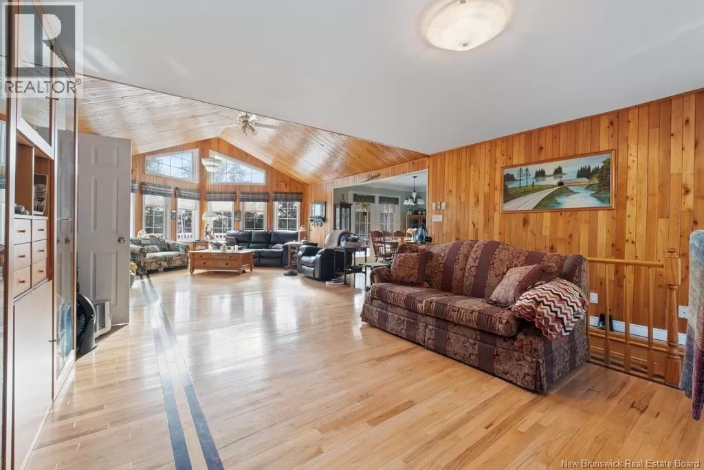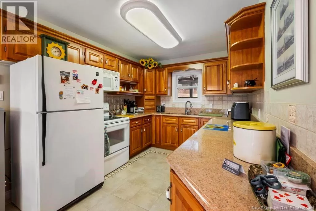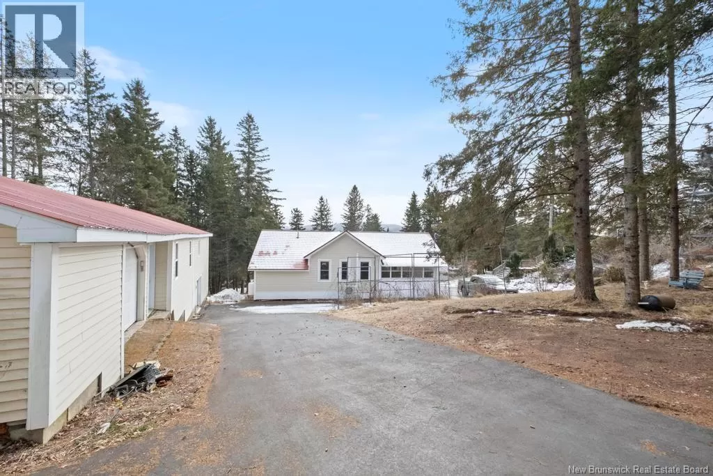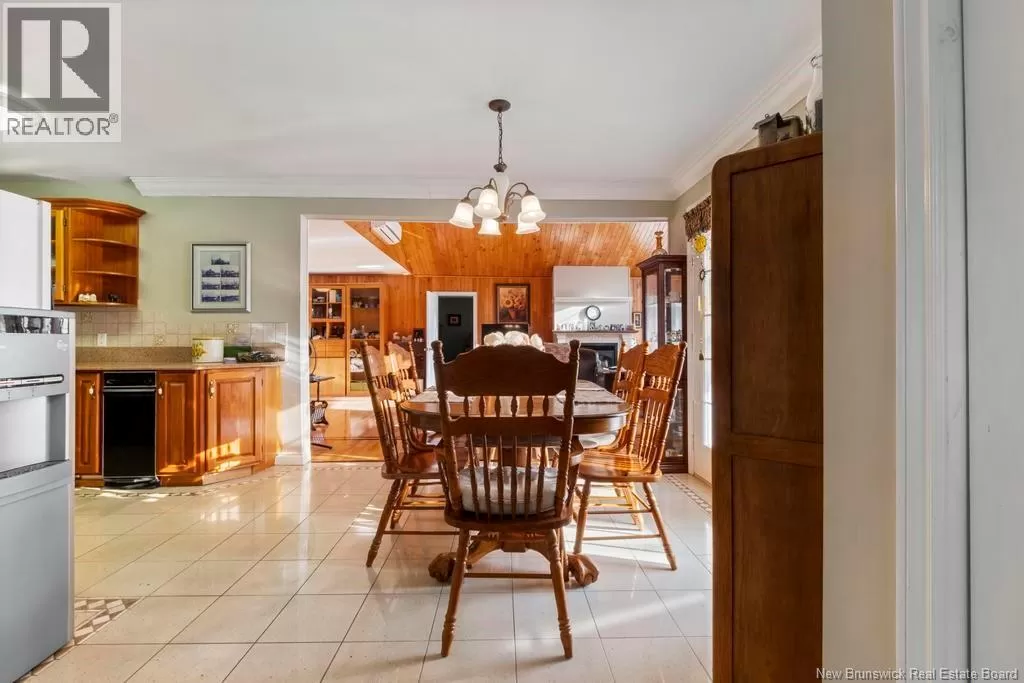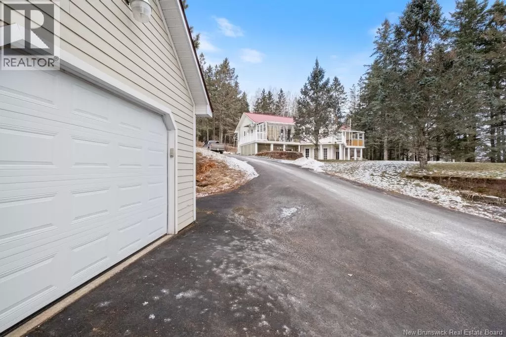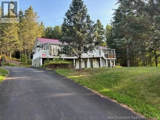 From Rte 114 in Penobsquis turn onto Back Rd This custom built chalet has so much to offer all tucked into the trees sitting on a one acre lot on the Back Rd in Penobsquis. On the main level as you come in thru the the 3 season enclosed sunroom you walk into the great room with vaulted ceiling and propane fireplace, walls and floors are all covered in hemlock. This room is huge and is open to the dining area. The kitchen with cherry cabinets and granite counter tops has lots of cabinet and counter top space. As you come in the side door of the house into the kitchen area there is a bathroom and mudroom. Off the great room on the back of the house there is another enclosed sunroom so that you can enjoy the outside from all angles. The primary bedroom is on the main level with a large ensuite bath and soaker tub plus heated floors and a walk in closet. The garden door off the primary bedroom leads to a hot tub and access to the rest of the wrap around patio which is all done in PVC. The lower level of the home with a walk out to the front yard has another bedroom (no egress window but close to the outside door) a huge entertaining area with a napolean propane stove and another full bath. This area has a ton of opportunities to fit your life style. The driveway is paved all the way to the upper garages. There is a small garage 16x20 at the bottom of the property. The other garages are 48x26 and 44x26 and the quonset is 20x24. Another great feature is the fish pond and generac generator. (id:27476)