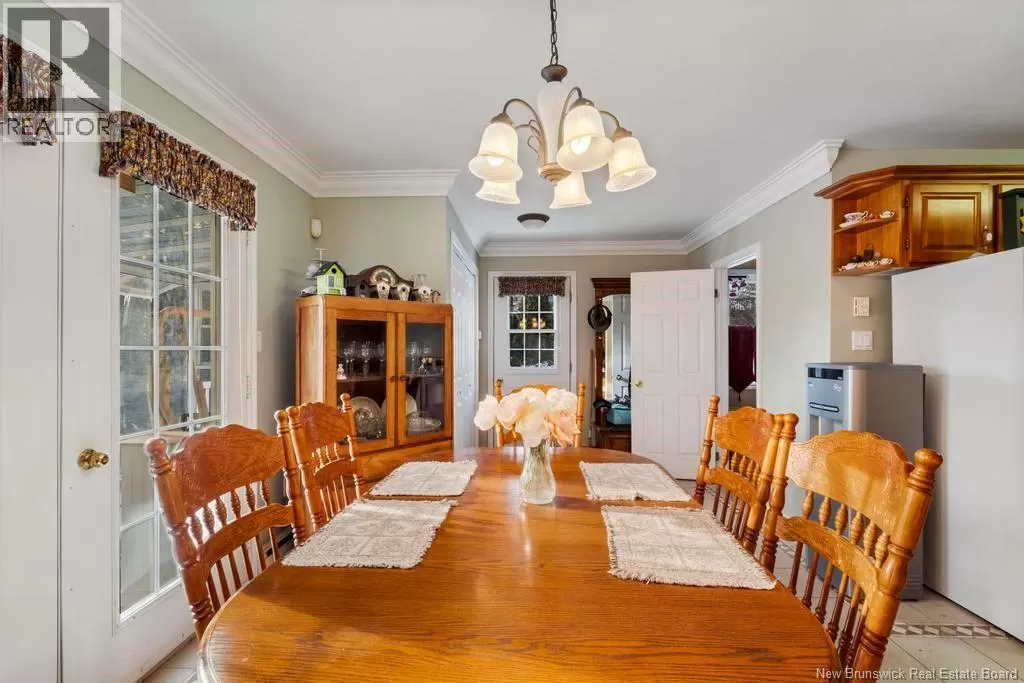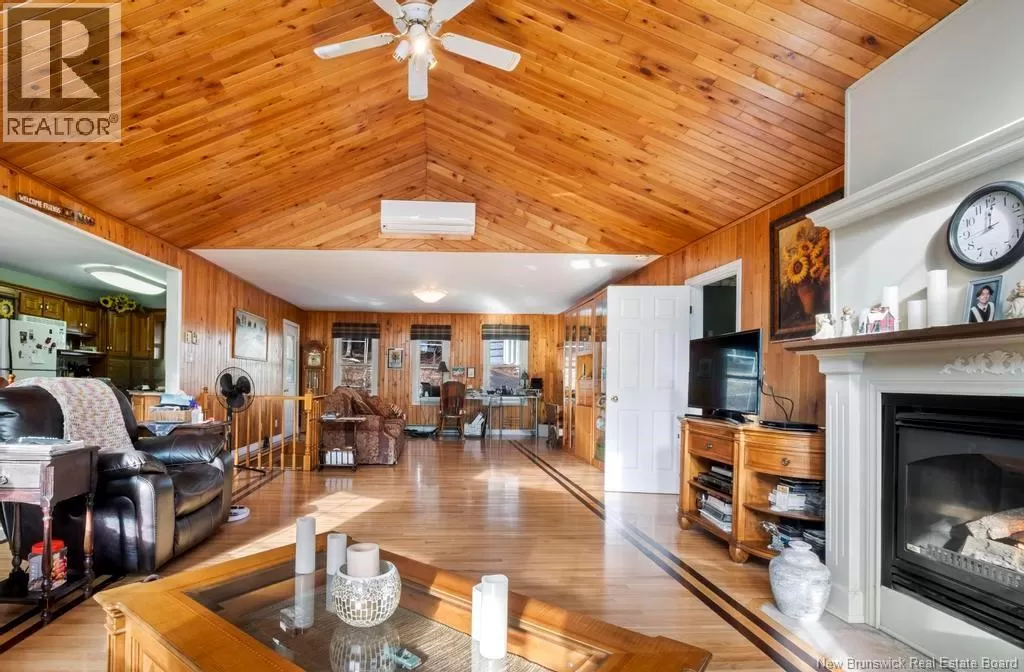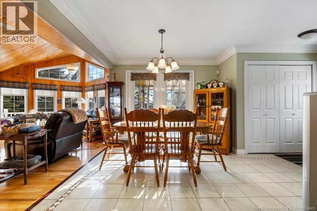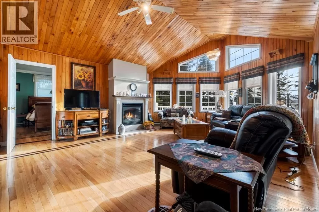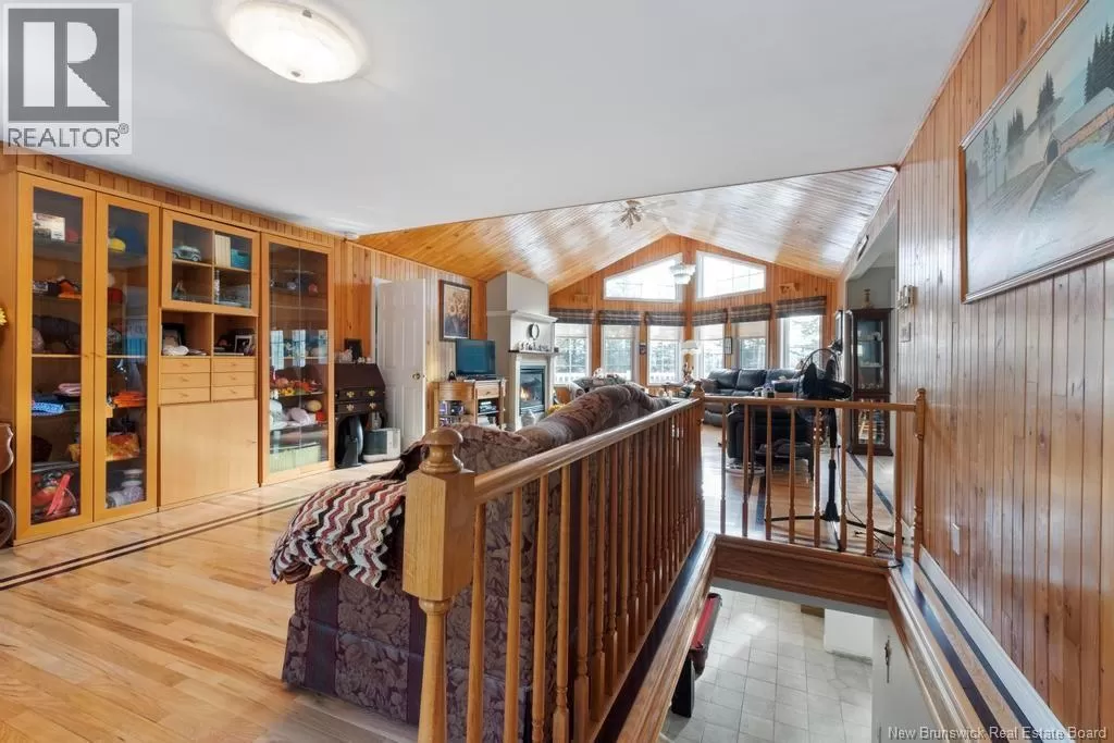 From Rte 114 in Penobsquis turn onto Back Rd This custom built chalet has so much to offer all tucked into the trees sitting on a one acre lot on the Back Rd in Penobsquis. On the main level as you come in thru the the 3 season enclosed sunroom you walk into the great room with vaulted ceiling and propane fireplace, walls and floors are all covered in hemlock. This room is huge and is open to the dining area. The kitchen with cherry cabinets and granite counter tops has lots of cabinet and counter top space. As you come in the side door of the house into the kitchen area there is a bathroom and mudroom. Off the great room on the back of the house there is another enclosed sunroom so that you can enjoy the outside from all angles. The primary bedroom is on the main level with a large ensuite bath and soaker tub plus heated floors and a walk in closet. The garden door off the primary bedroom leads to a hot tub and access to the rest of the wrap around patio which is all done in PVC. The lower level of the home with a walk out to the front yard has another bedroom (no egress window but close to the outside door) a huge entertaining area with a napolean propane stove and another full bath. This area has a ton of opportunities to fit your life style. The driveway is paved all the way to the upper garages. There is a small garage 16x20 at the bottom of the property. The other garages are 48x26 and 44x26 and the quonset is 20x24. Another great feature is the fish pond and generac generator. (id:27476)