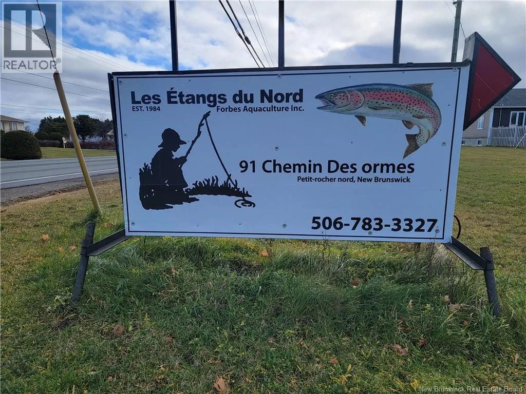 heading towards Petit-Rocher Nord on the 134, Rue des Ormes is on the left side, Keep going straight untill you see the fish farm sign. Over 23 acres of land, 5 trout ponds, a camp, a trailer, a shed, a lot of equipment, A LOT OF PRIVACY, a ton of potential... OH the possibilities here, imagine owning your very own fish farm, you could add a camp ground, a few Airbnb camps or a glamping site. Or just leaving it all as is and own over 23 acres of land with 5 fishing pond. Like i said the possibilities are endless! (id:27476)