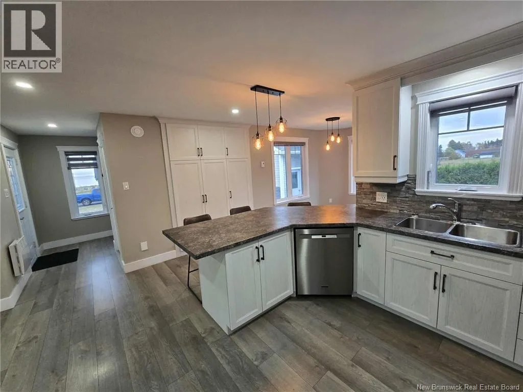 Take rue Principale in Petit-Rocher turn Right at Grant street Beautiful 2022-Built Bungalow Modern, One-Level Living Just Steps from the Beach!! This well-designed 2022-built bungalow offers comfortable, low-maintenance living all on one level, located just steps from the beach in the heart of Petit-Rocher and only minutes from all amenities. Inside, you'll find a bright and spacious open-concept layout featuring a kitchen with lots of cabinetry, a generous dining area, and a large living room complete with a built-in electric fireplace, heat pump, and large windows for plenty of natural light and amazing views of the sunset over the ocean!! The home includes 2 bedrooms, including a primary bedroom with a 2-piece ensuite and walk-in closet, a full bathroom with attractive cabinetry, and a separate laundry room. Pot lights throughout add to the clean and modern feel. Built with efficiency in mind, the home offers a spray-foamed cement crawl space, providing excellent insulation and tons of storage. Outside, the property features a double paved driveway, a detached garage with two doors, interior water taps, a backup generator panel, and a storage shed for added convenience. This move-in ready home is perfect for those looking for modern amenities, easy living, and a quiet coastal lifestylewith the beach just a short stroll away. Schedule your private showing today! (id:27476)
