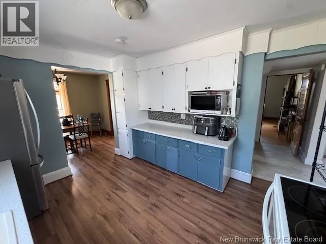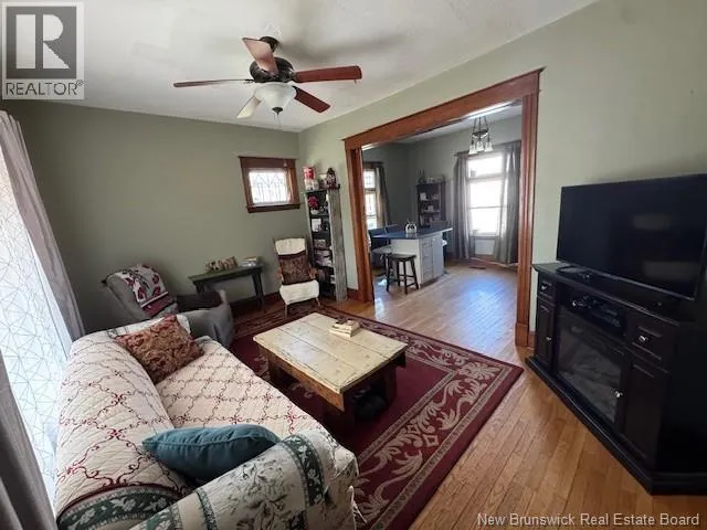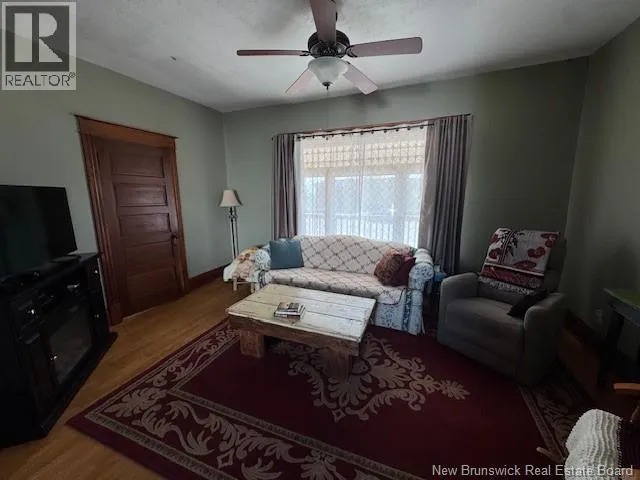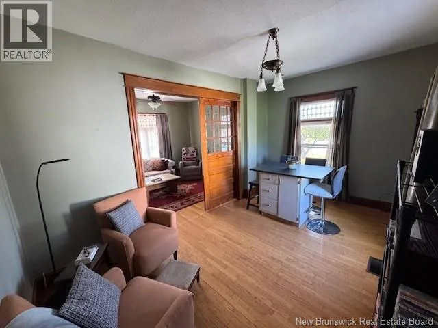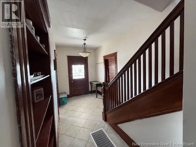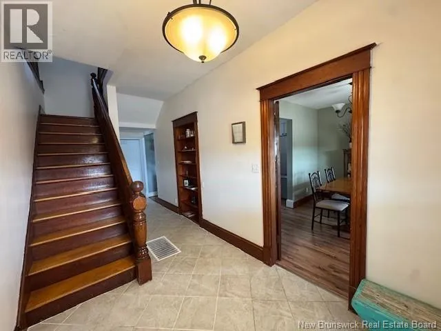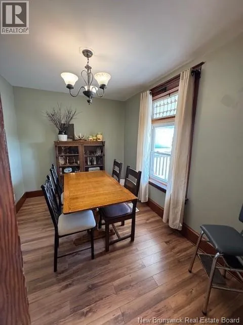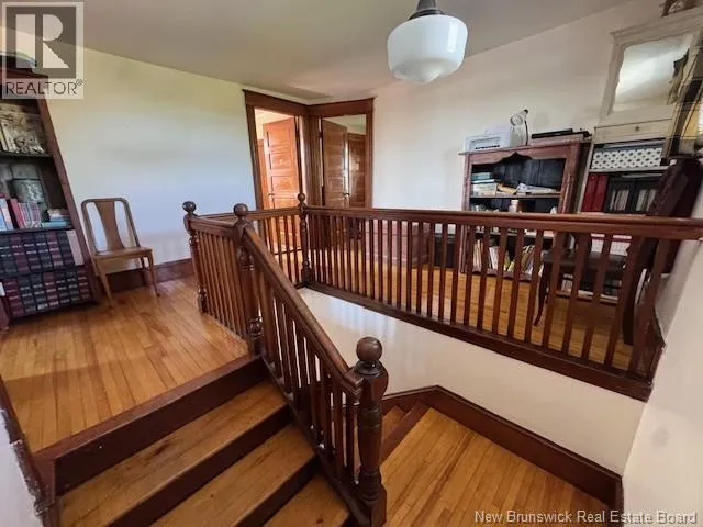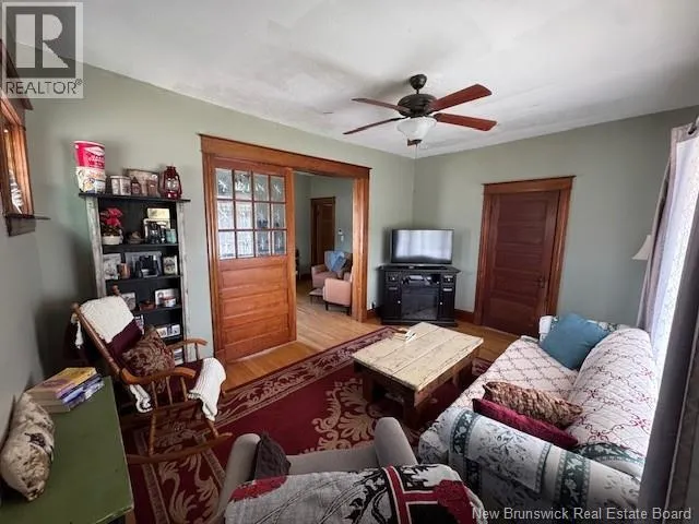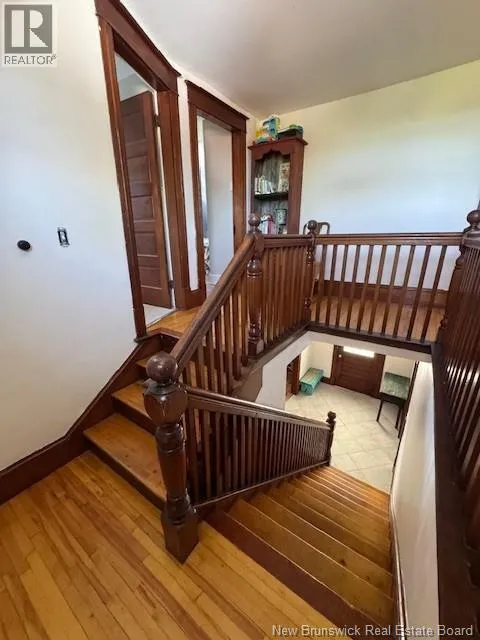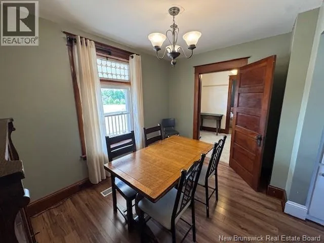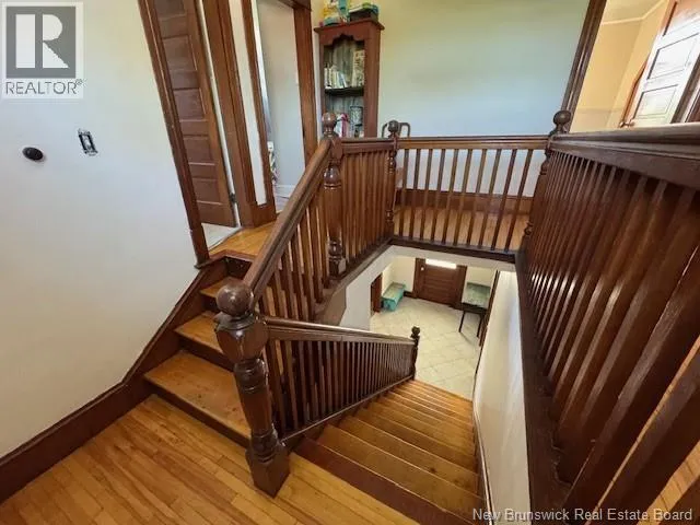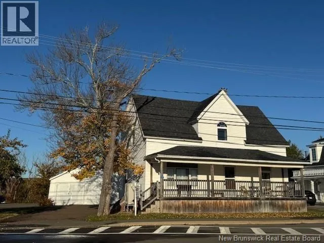 Corner of River Road & Main Street Century home in the heart of the Village of Petitcodiac, located just off Main street, adjacent to the shopping area. -A full length covered veranda at the front is the perfect spot to enjoy a beverage and take in the fresh air. -Beautifully laid out, the main floor has a main central hall off which are the dining room, kitchen, family room and living room -The hallway, living and family rooms all boast 9 foot ceilings and many original features such as Douglas Fir doors, trim, baseboards and staircase. The living and family rooms are separated by a beautiful set of pocket doors. -An addition at the rear of the mail level contains a bathroom with shower, a laundry area (with new washer & dryer) and the stairs to the partially finished basement, which is currently being used as a home gym. -Upstairs are 3 large, light and bright bedrooms, the main bathroom and a spacious landing and hallway. -New to the house this spring (2025) are: ducted heat pump with 10 year warranty, pressure tank and UV light water treatment system and a 200 amp electrical panel. -Character abounds throughout this must see family home, and the private back yard bordered by the Petitcodiac River is the perfect retreat. (id:27476)