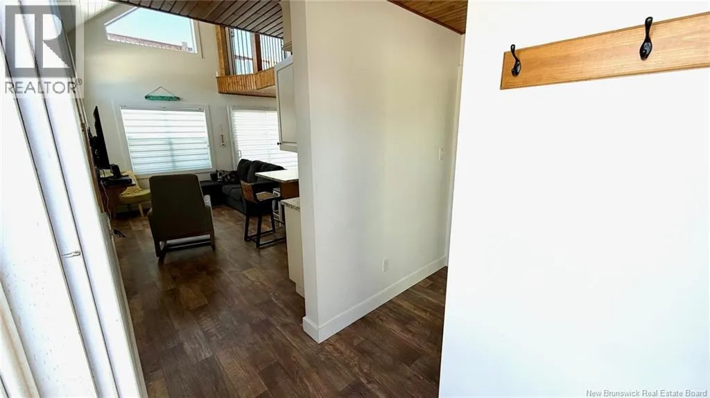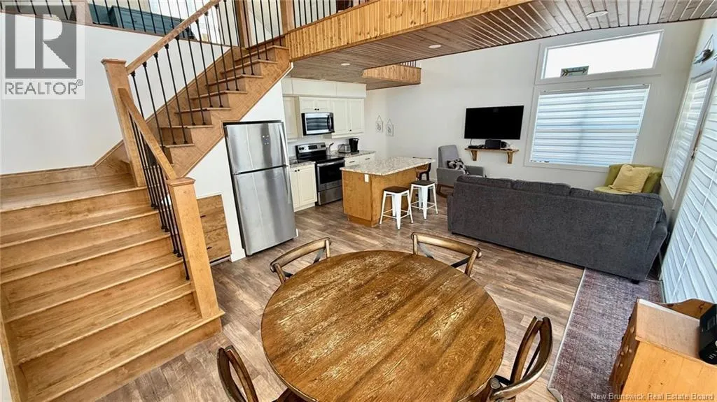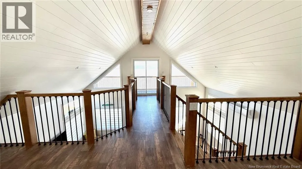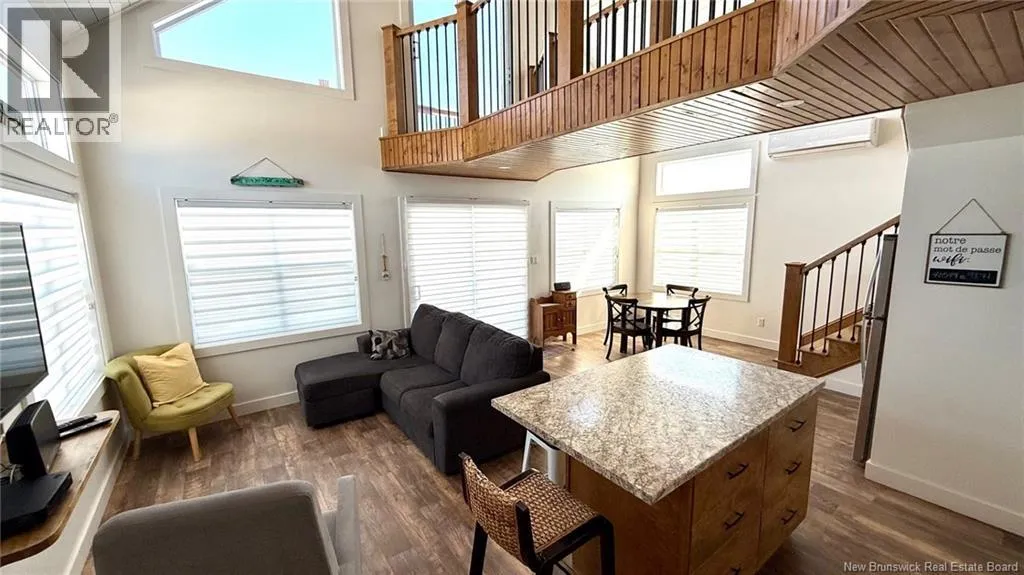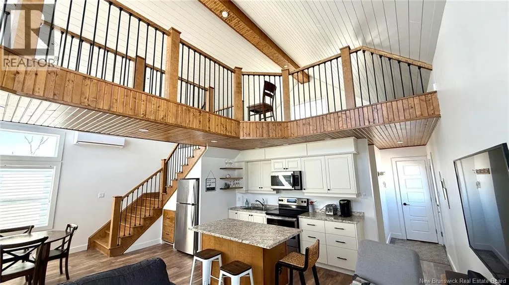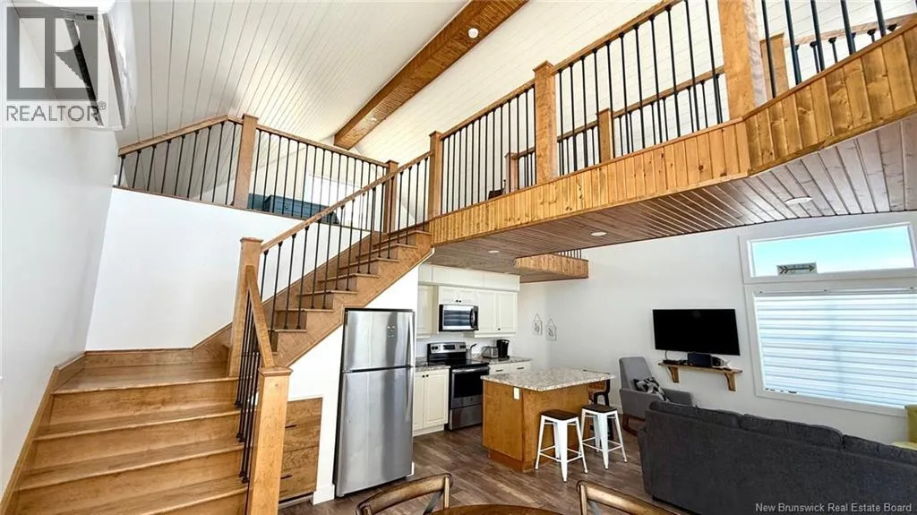 From Route 305, take the Chemin Grand Ruisseau for 1.8 km, turn right to stay on the same road and drive for another 900 meters. Turn right on Allée Pigeon Beach for 850 meters, turn right to stay on Allée Pigeon Beach and property will on your left. A standout property that blends contemporary design with coastal charm. The cathedral ceiling gives this home a beautiful sense of grandeur while allowing abundant natural light to flood in through the generous windows. A mezzanine overlooks the main living area and houses the master bedroom, which opens onto a balcony offering a direct view of the seaan ideal spot to enjoy a cup of coffee at sunrise or a glass of wine at sunset. The main living area combines the living room, kitchen, and dining room into a welcoming open space. An elegant wooden and metal walkway connects the mezzanine to the upper floor and overlooks the common area, adding character and volume to the whole. A compact and functional room houses the laundry room and the bathroom with shower. The ground floor also includes an additional bedroom, convenient for guests or family. The recently built home is tastefully decorated in a contemporary, minimalist style. It sits on a large 1.5 aces, open lot, offering tranquility, privacy, and direct access to the natural beauty of the Acadian coastline. (id:27476)