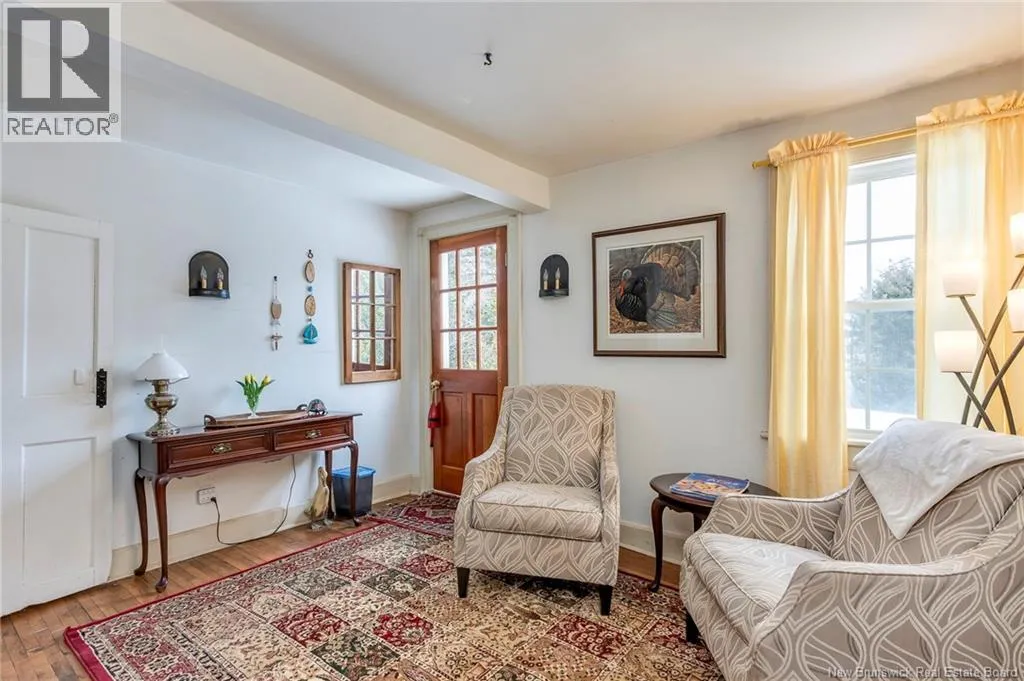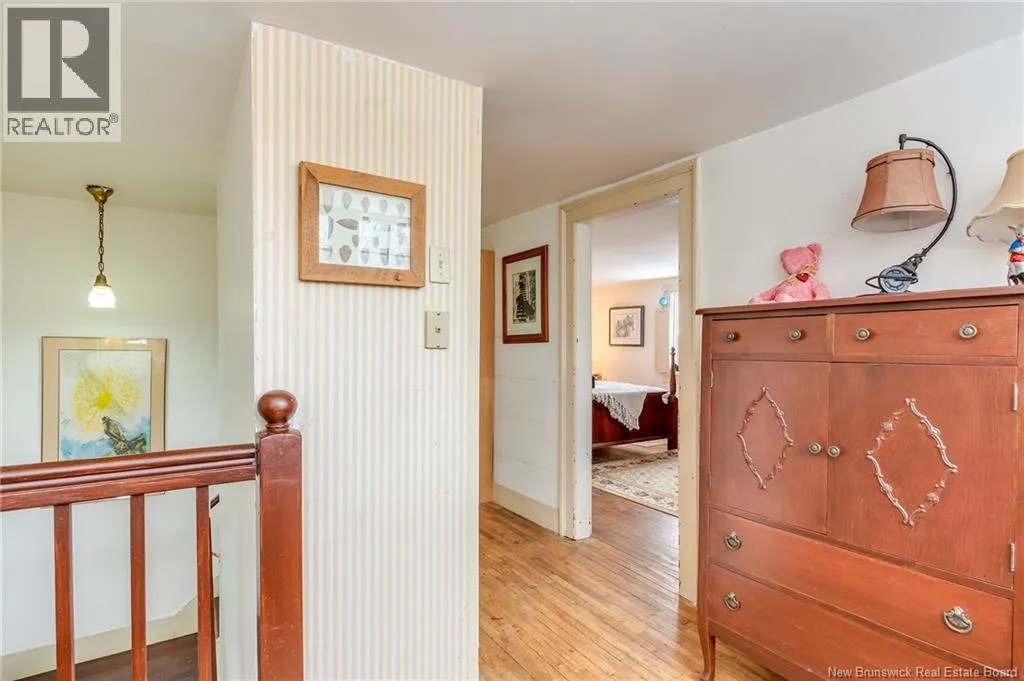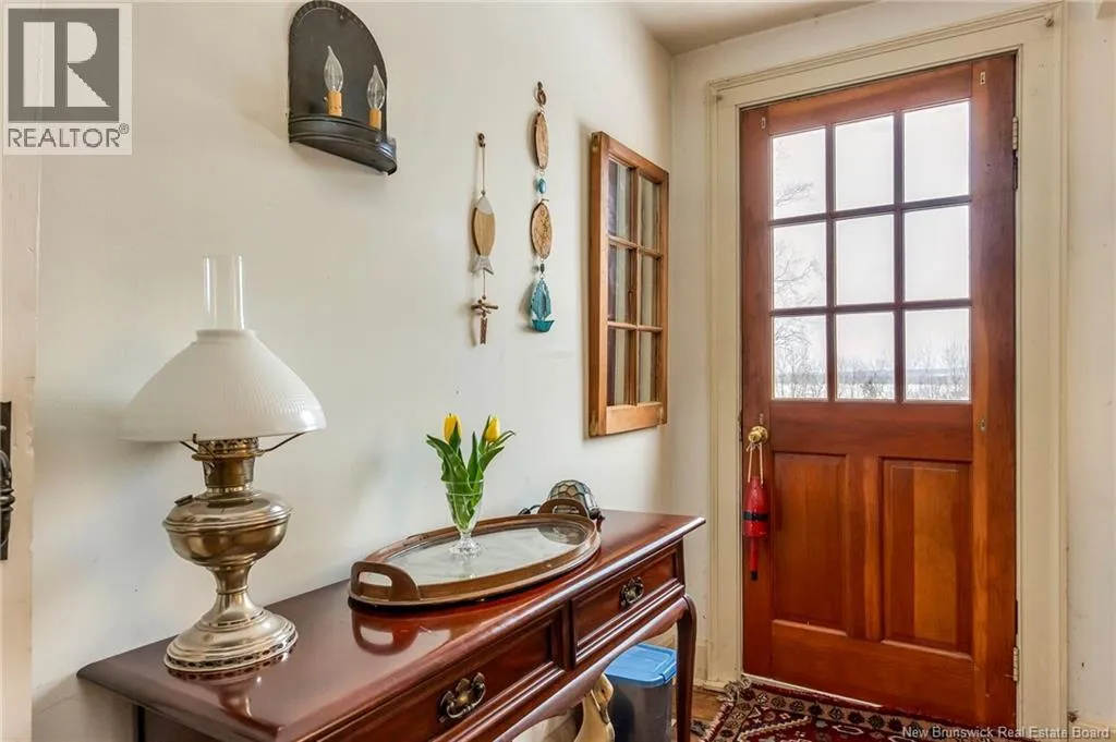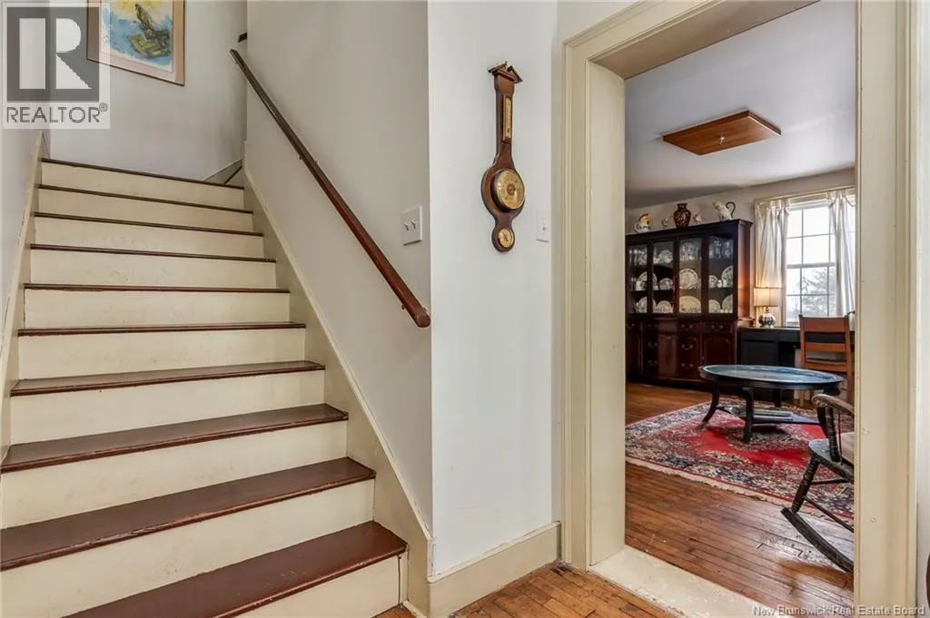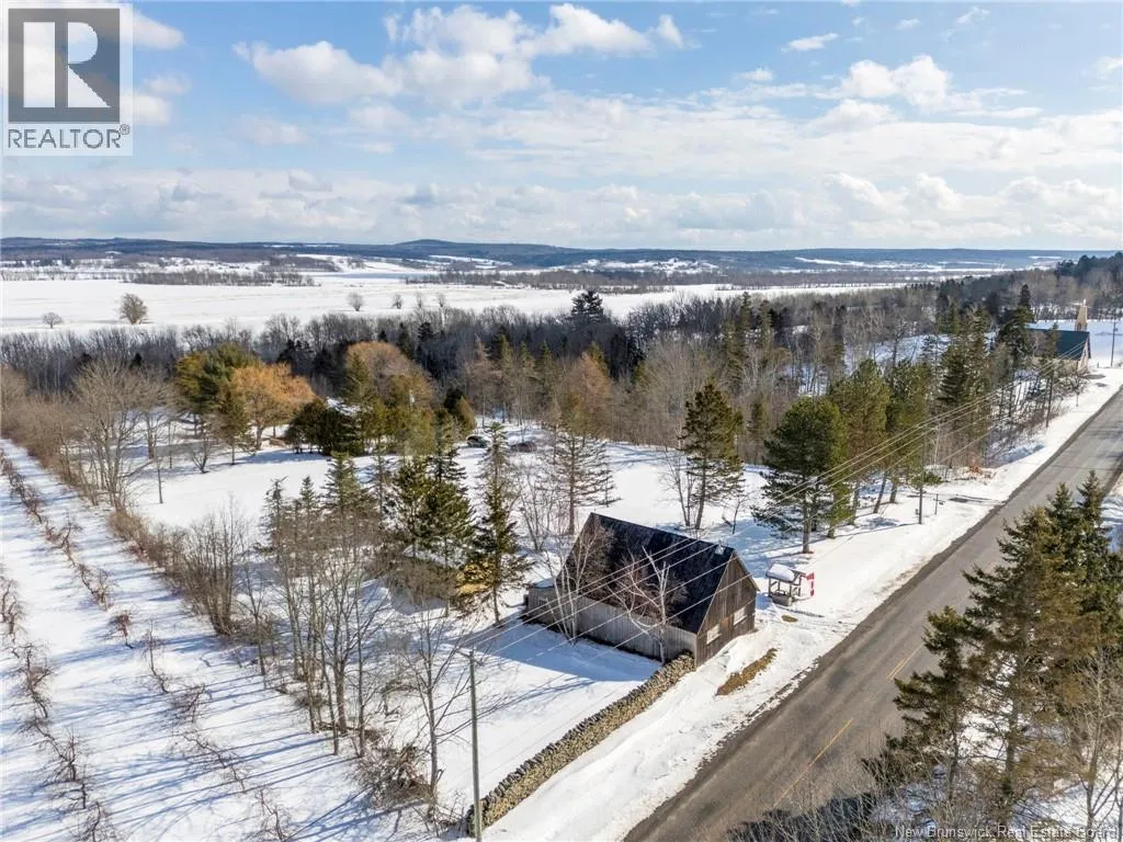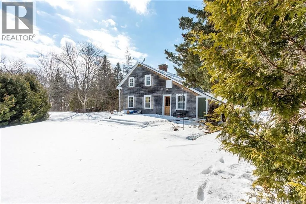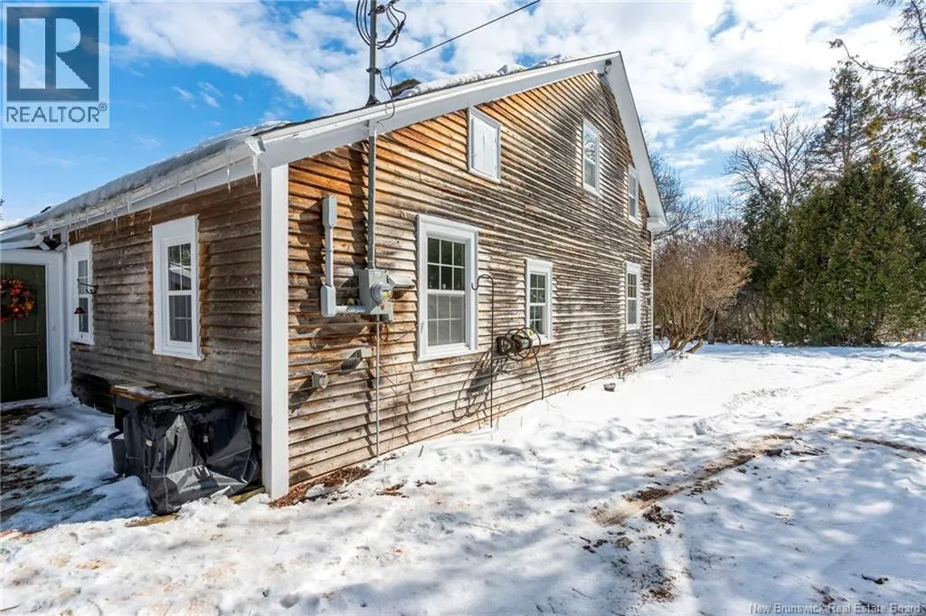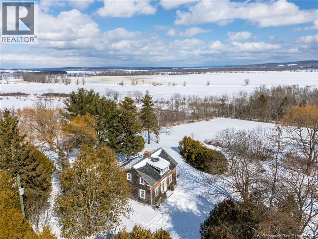 12 klm past the evandale ferry Welcome to a little slice of heaven and a piece of New Brunswick history near the St. John River. Built in 1785, the Hewlett House is one of the oldest homes in the province and has been lovingly maintained while thoughtfully updated for modern living. Recent upgrades include new windows, an updated kitchen and bathrooms, a wood stove, and an upgraded generator, while an efficient geothermal furnace (2009) keeps the home comfortable year-round. The second floor offers three bedrooms including a primary with ensuite, and the home features charming hardwood floors, main floor laundry, and a spacious mudroom. Outside youll find a barn with new doors and refreshed interior complete with a separate electrical meter, a workshop, licensed septic system with concrete tank (2013), deeded river access (2004), pear and apple trees, a pond, large garden area, and a second outbuilding with excellent potential for a guest suite or home office; making this a truly unique property blending history, character, and peaceful country living. (id:27476)