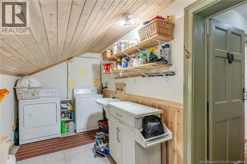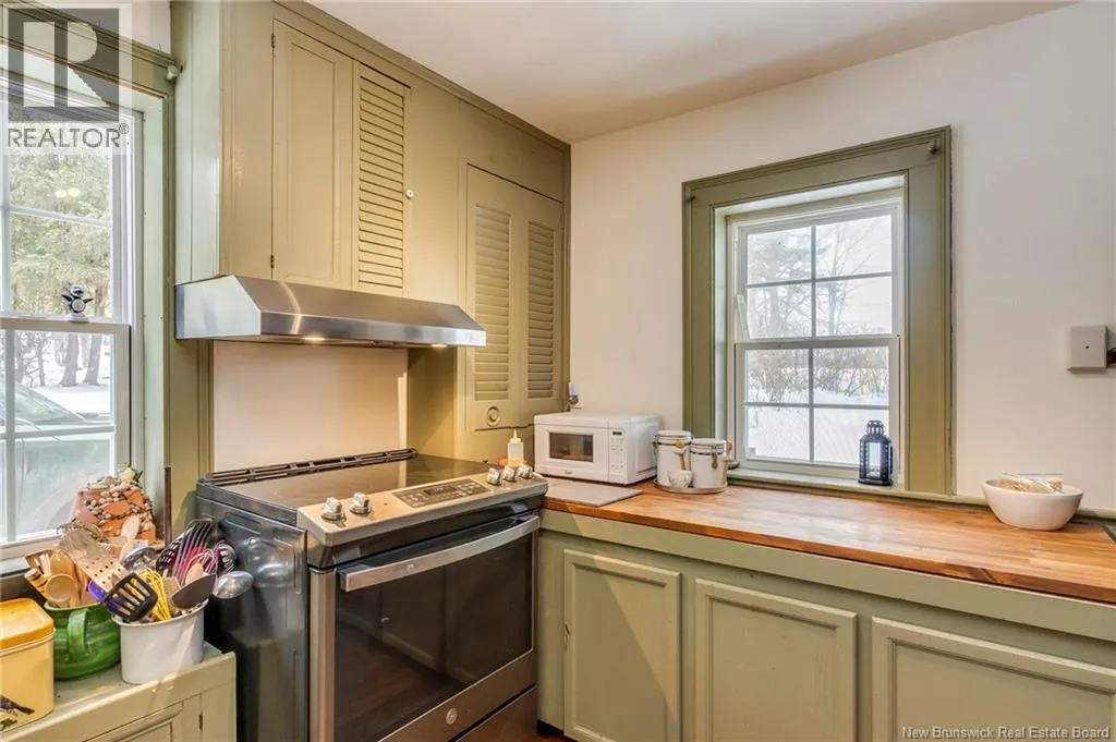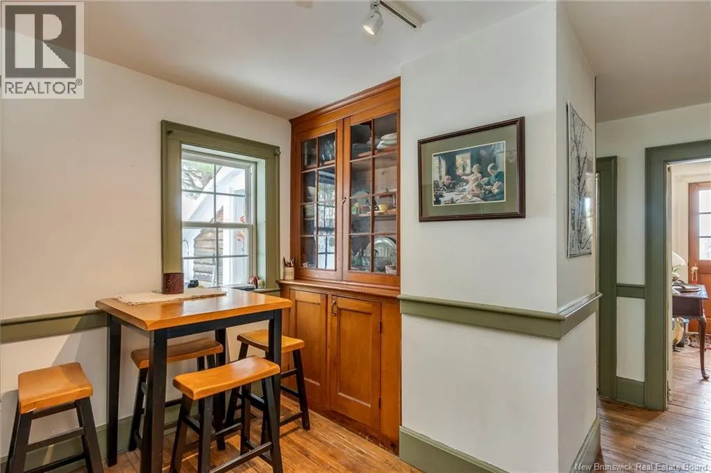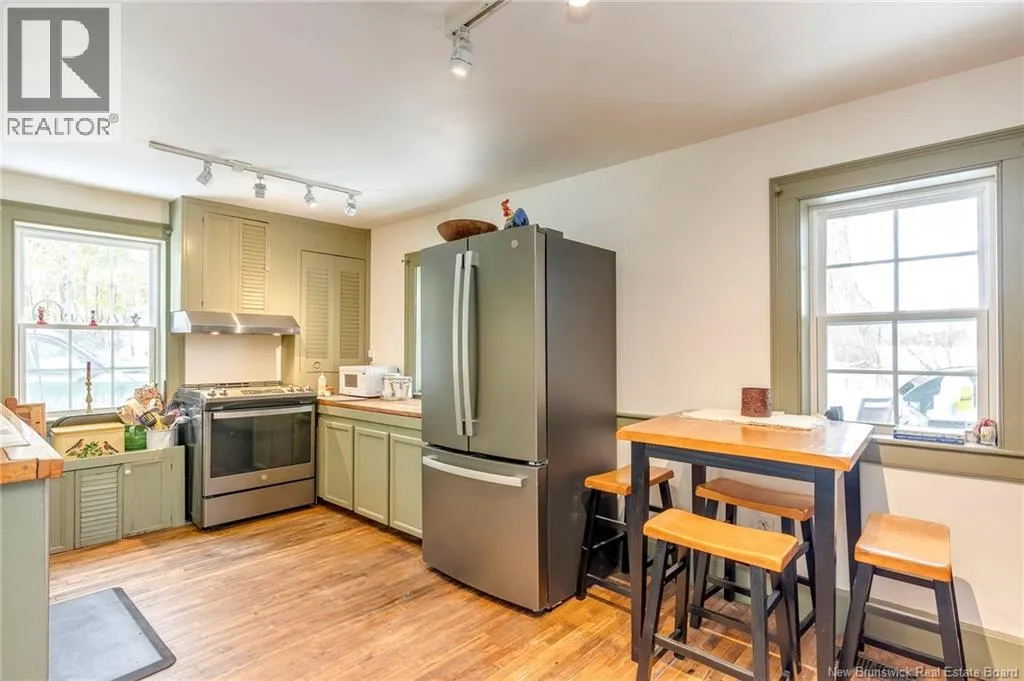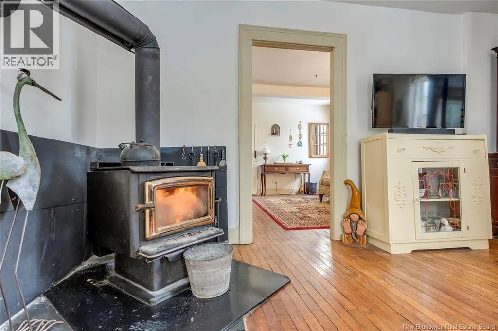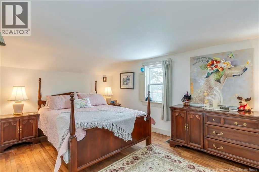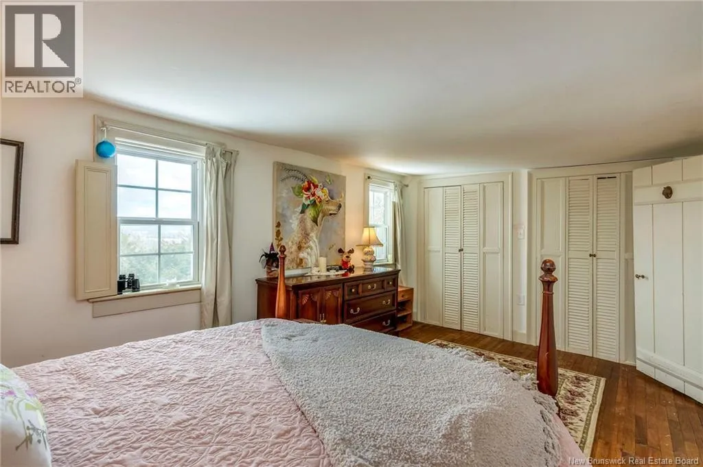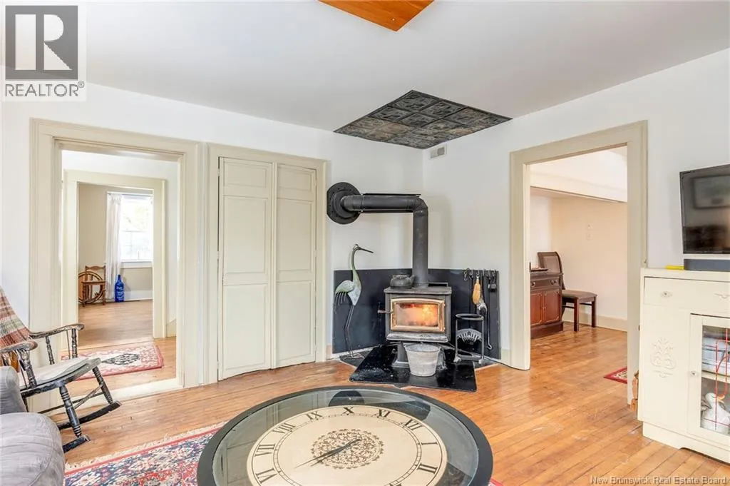 12 klm past the evandale ferry Welcome to a little slice of heaven and a piece of New Brunswick history near the St. John River. Built in 1785, the Hewlett House is one of the oldest homes in the province and has been lovingly maintained while thoughtfully updated for modern living. Recent upgrades include new windows, an updated kitchen and bathrooms, a wood stove, and an upgraded generator, while an efficient geothermal furnace (2009) keeps the home comfortable year-round. The second floor offers three bedrooms including a primary with ensuite, and the home features charming hardwood floors, main floor laundry, and a spacious mudroom. Outside youll find a barn with new doors and refreshed interior complete with a separate electrical meter, a workshop, licensed septic system with concrete tank (2013), deeded river access (2004), pear and apple trees, a pond, large garden area, and a second outbuilding with excellent potential for a guest suite or home office; making this a truly unique property blending history, character, and peaceful country living. (id:27476)
