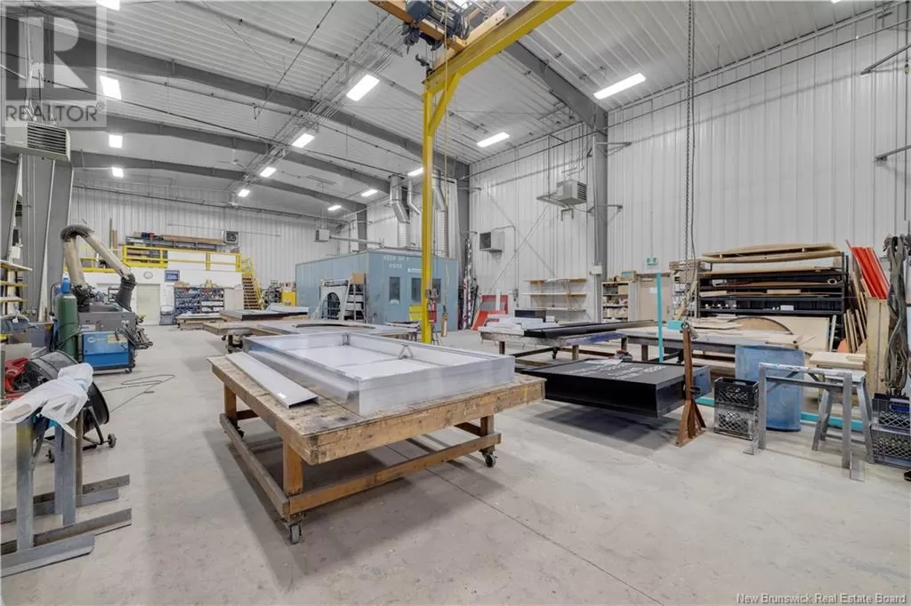 For lease in the Quispamsis Industrial Park, this modern 7,000 square foot commercial space on Enterprise Drive offers a prime opportunity for businesses seeking functionality and flexibility. The building, approximately five years old, features impressive 26-foot ceilings, a durable cement floor, and propane forced air heat. With one 16-foot and 1- 12-foot grade-level garage doors, the space is well-suited for warehousing, light manufacturing, or service operations. A large, level lot at the rear of the property provides ample space for parking, outdoor storage, or future expansion. Offered at $13 per square foot plus $7.03 CAM, this property combines modern construction with a strategic locationmaking it an ideal choice for growing businesses. Additional office and warehouse space is available if required. (id:27476)