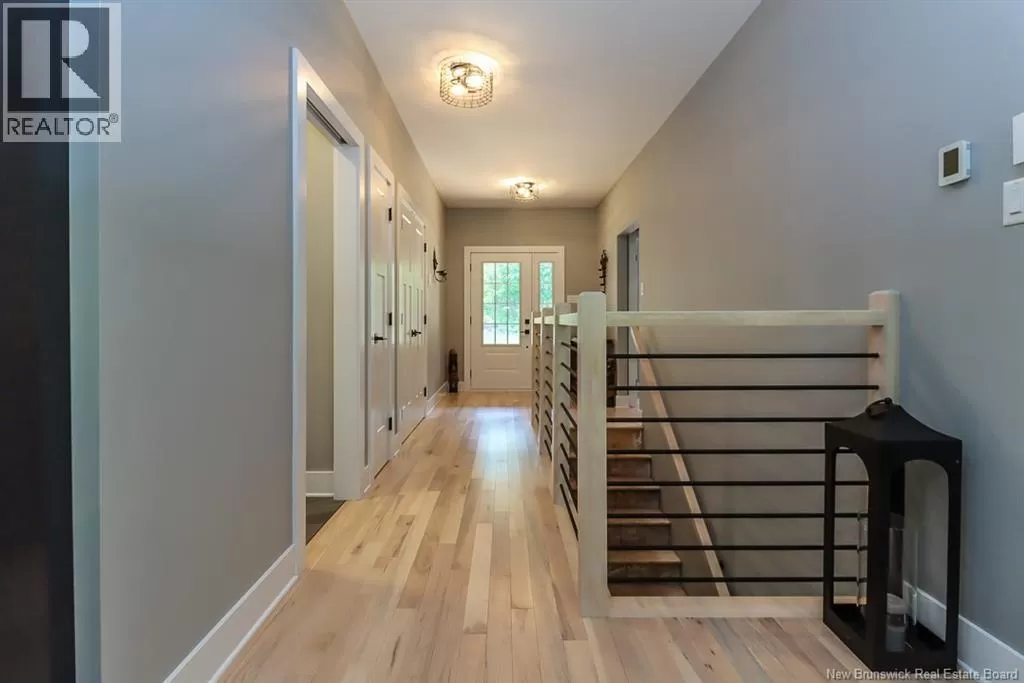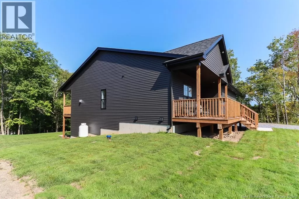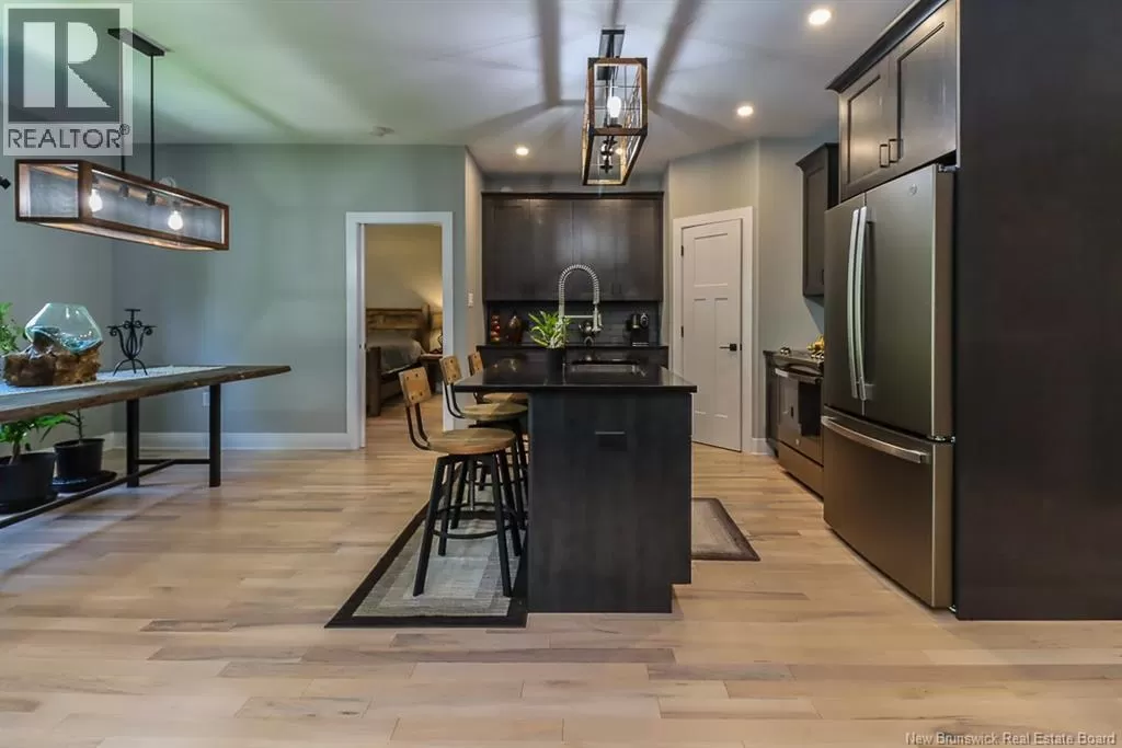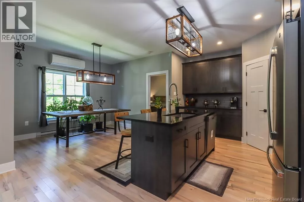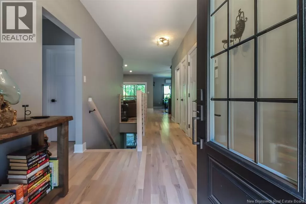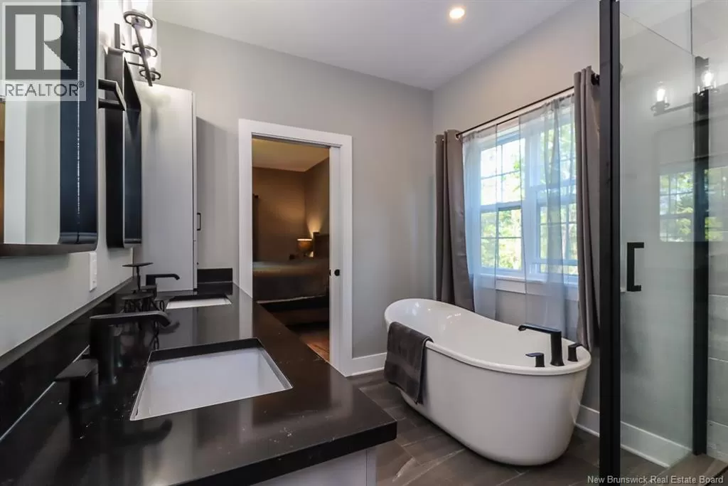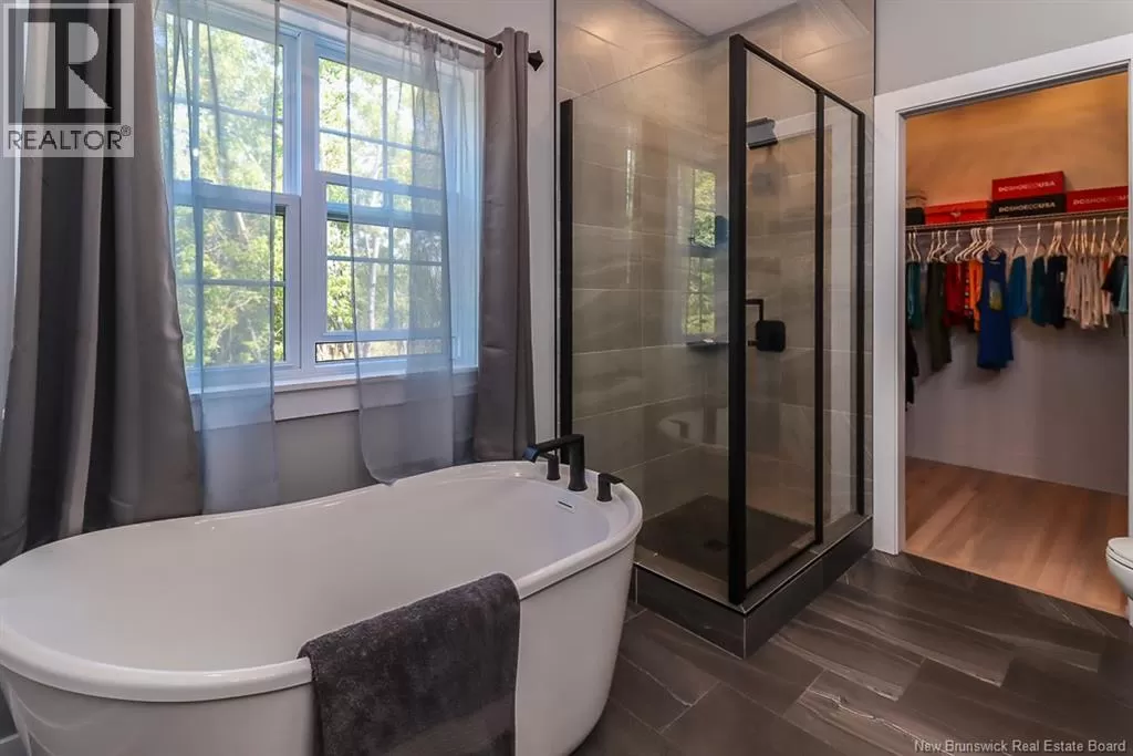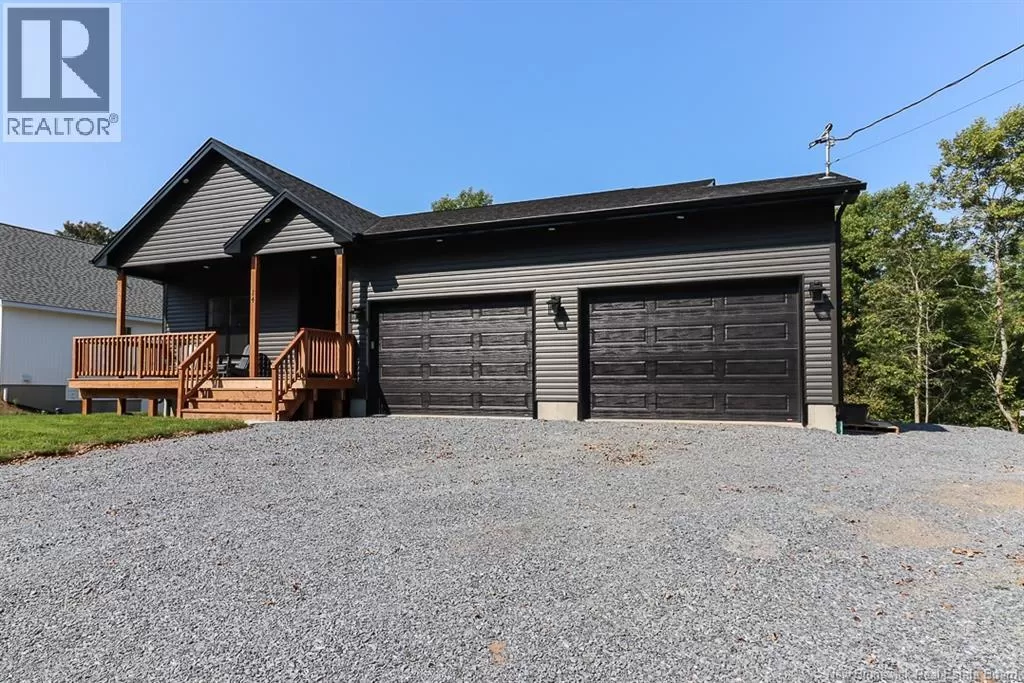 Gondola Point Rd - Matthews - Sheraton Welcome to 14 Sheraton Ave, a stunning new addition to the highly sought-after Scott Ridge Estates. This modern walkout bungalow offers nearly 3,000 sq ft of finished living space, including 1,536 sq ft on the main floor and a fully finished walkout basement. An oversized double garage with 12-foot doors provides both convenience and curb appeal. The thoughtful layout features 3+1 bedrooms and 3 full baths, with the primary suite on one side of the home and two bedrooms on the other for added privacy. 9-foot ceilings enhance the open living, dining, den, and kitchen areas, while a propane fireplace creates a cozy focal point. The kitchen is designed for gatherings with extensive lighting and a custom pantry. The lower level adds a spacious family room, full bath, and additional bedroom, perfect for guests or extended family. Outdoor living is equally inviting with a covered deck and front veranda. The exterior showcases modern dark siding, lending a sleek, timeless look. Located just minutes from the Kennebecasis River, beach access, and the Q-plex complex, this property combines modern comfort with recreational convenience. Built by RJ Scott Homes, known for their commitment to Quality Without Question, the home also includes: 8 years remaining on the Atlantic Home Warranty 2 owned Heat pumps (id:27476)
