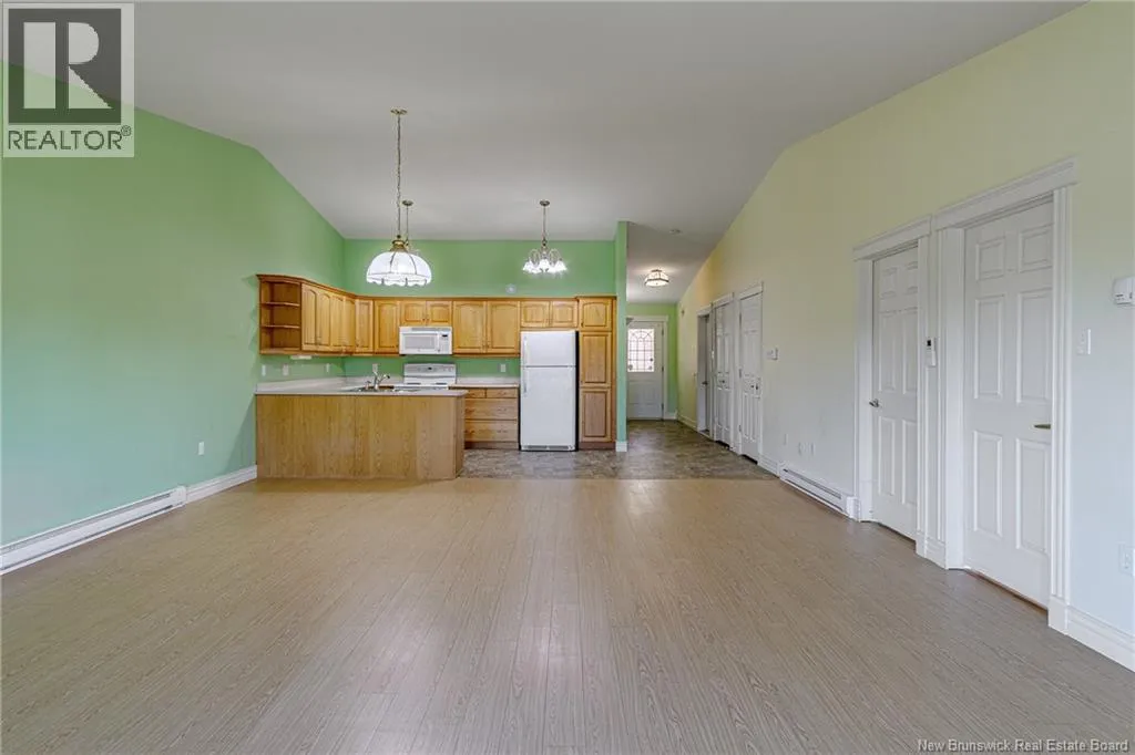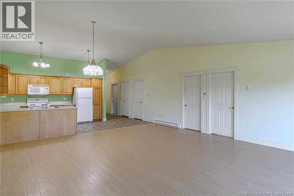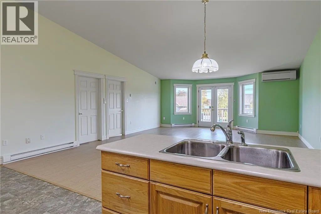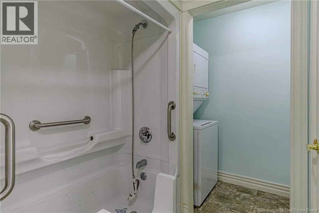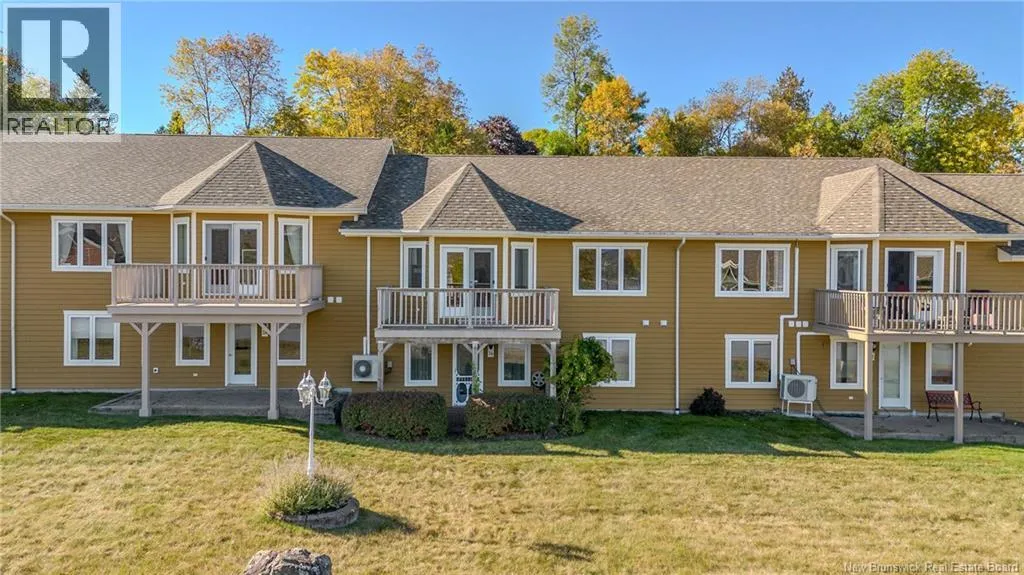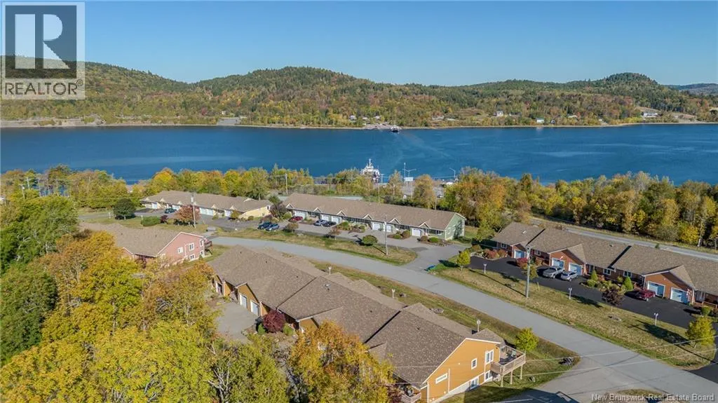 To the end of Gondola Point Road, turn right onto Merritt Hill One of Quispamsis's most favourite garden home communities, where a collection of quality comfortable homes make up Merritt Hill for an easy lock and leave lifestyle. With all main floor living complimented with a fully finished walk out daylight basement and attached garage, there is ample space for downsize without giving up storage and space. Main floor enjoys the primary with pass through to full bathroom that also houses stackable laundry area. Step saving kitchen opens to dining and living room where the vaulted ceiling welcome in an abundance of natural light. The convenient walk out deck looks out to the Kennebecasis River and also boasts glorious sunrises to begin your days here. Lower level with its full daylight basment is finished with large windows and walk out to shade patio. A 3/4 bath ideal and the utility room has shelving that remains to keep your storage items organized. The attached garage walks into foyer and the deck on the front door side so quiet and sunny looking out to your front gardens. For those who love to take a stroll, gather your beach chair and walk down to the beautiful sandy Gondola Point beach for swimming, picnics and grilling plus a fenced portion on the beach for your dog to enjoy the fresh clear blue waters of the Kennebecasisi River. All appliances remain, a quick close welcomed. The monthly HOA fee is $100 a month for snow removal, grass cutting and water. (id:27476)