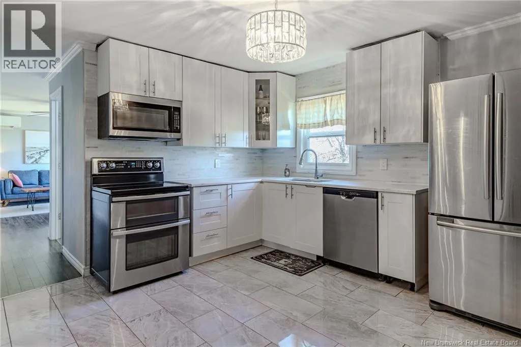 Vincent Road, between Legend and Yeomans Welcome to this charming and well-cared for 2 bedroom bungalow in the heart of Quispamsis. Bright, clean and inviting, this home offers a comfortable layout featuring a cozy living room, 2 spacious bedrooms, a full bathroom and a beautifully renovated kitchen and dining area complete with modern stainless steel appliances. The lower level provides a large rec room perfect for relaxing or entertaining, along with plenty of storage and a flexible bonus space that could be finished into a future bedroom, home gym, office or hobby room. Outside, youll love the oversized single garage, freshly paved driveway and a huge back deck surrounded by mature trees, offering excellent privacy for outdoor enjoyment. Ideally located just minutes from the highway and within a short walk to the Quispamsis trail system, this home offers convenience while still being nestled in a peaceful setting. A wonderful opportunity for first-time buyers or those looking to downsize without compromise, close to all the amenities Quispamsis has to offer. (id:27476)