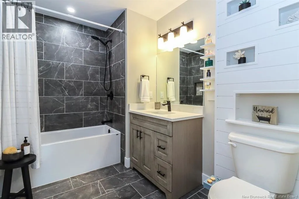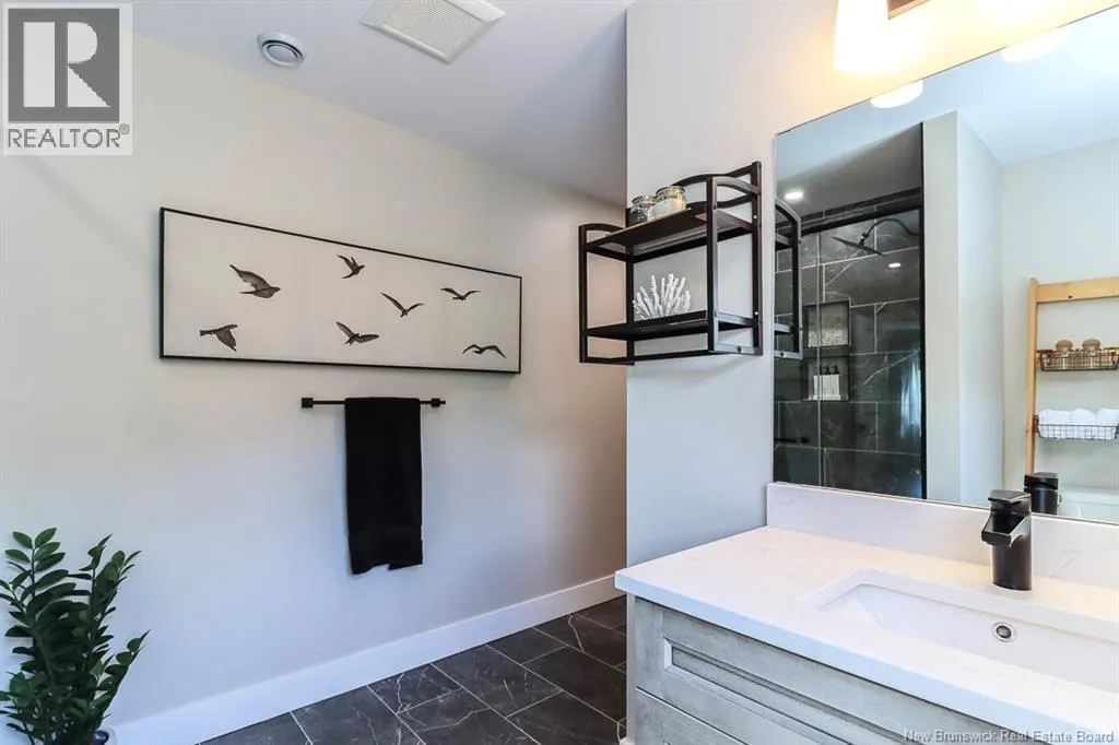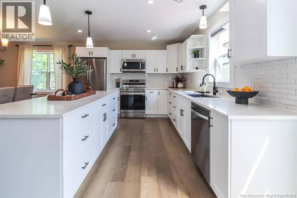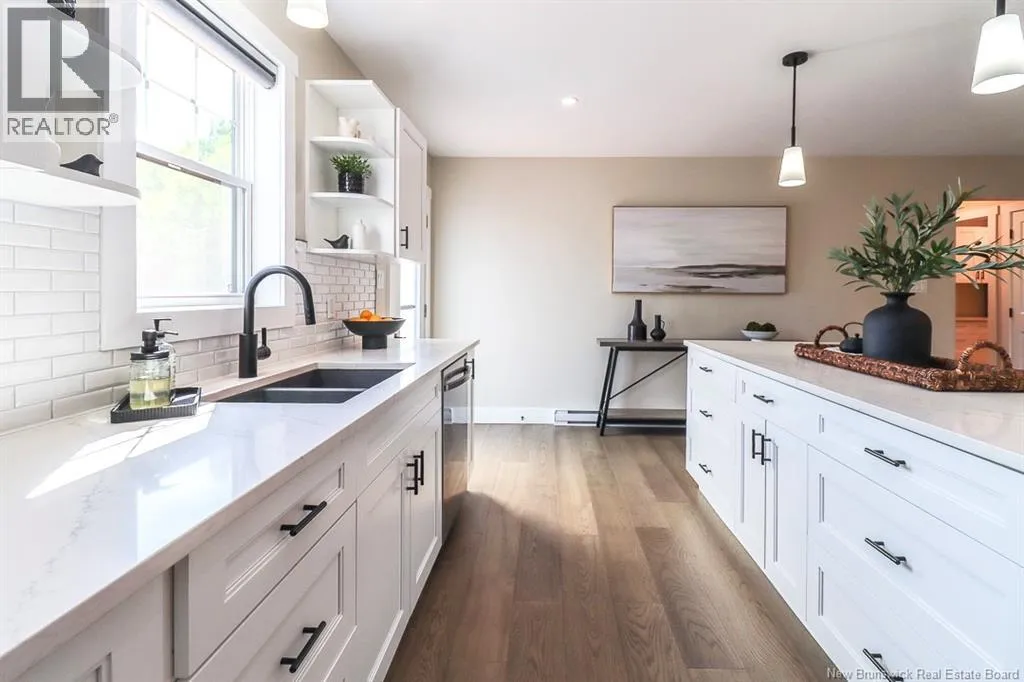 French Village Road to Clyde Drive to Hobble Lane Modern One-Level Living in Sought-After Quispamsis Step into style with this magazine-worthy home, just 2 years old and perfectly nestled on a private, one-acre lot. Designed for effortless living, this one-level beauty sits on a slab foundation and offers a bright, open layout with thoughtful touches throughout. Featuring a stunning kitchen complete with a 7 foot island and three spacious bedrooms, including a stunning primary suite with a large walk-in closet and a luxurious 3/4 ensuite. The main bath is generous in size, and the convenience of a dedicated laundry room on the main floor adds to the home's functionality.The double car garage includes storage and an EV charger, making this home as practical as it is polished. Surrounded by nature and set back for privacy, yet close to all amenities its the best of both worlds. If youve been searching for a stylish, low-maintenance home in a premier location, this is the one. (id:27476)
