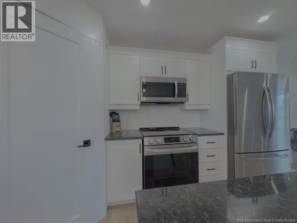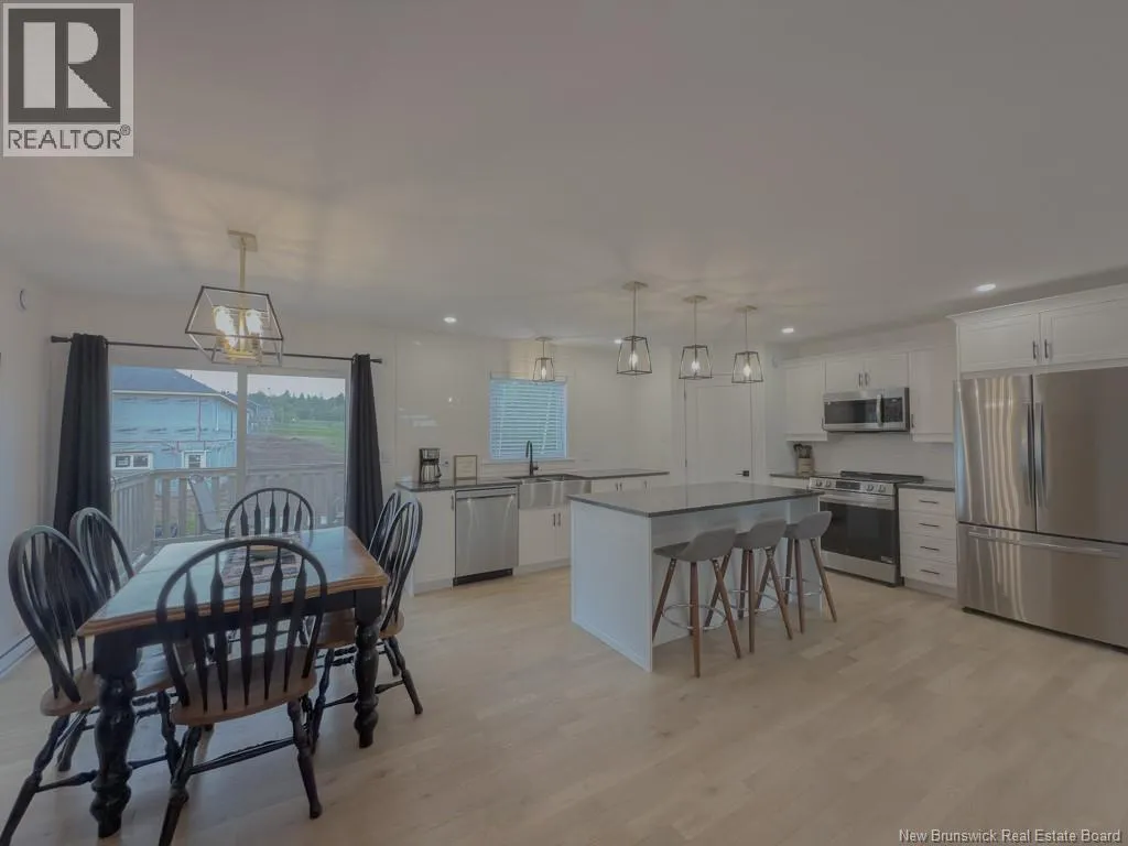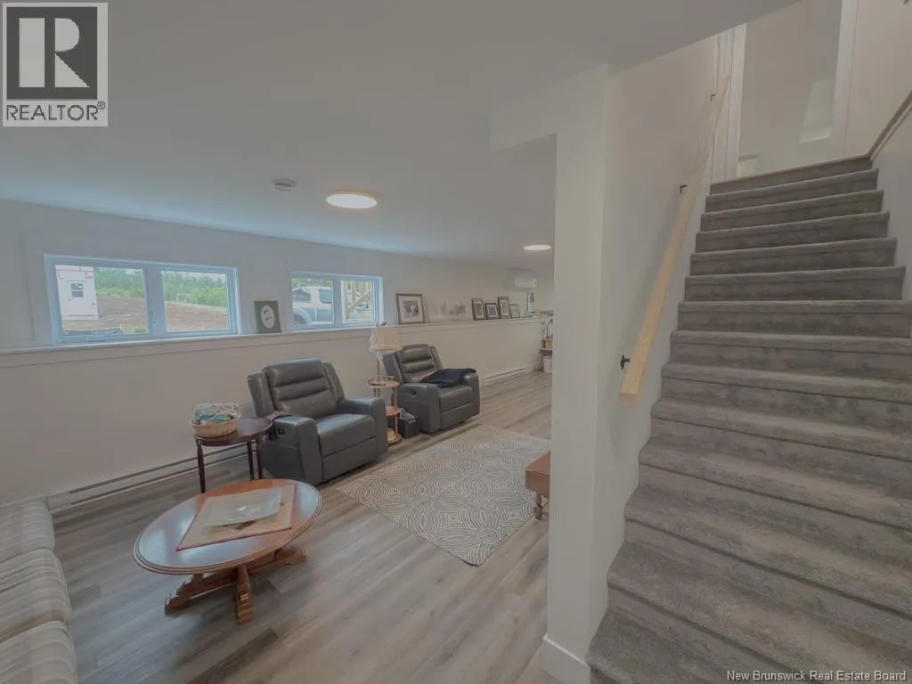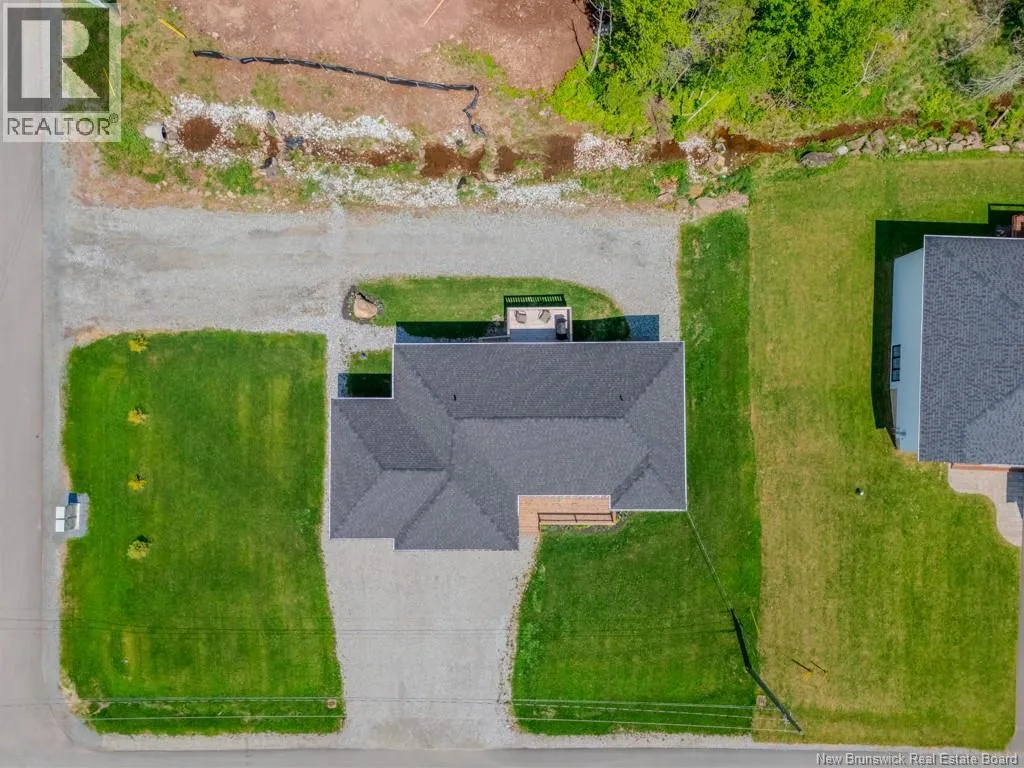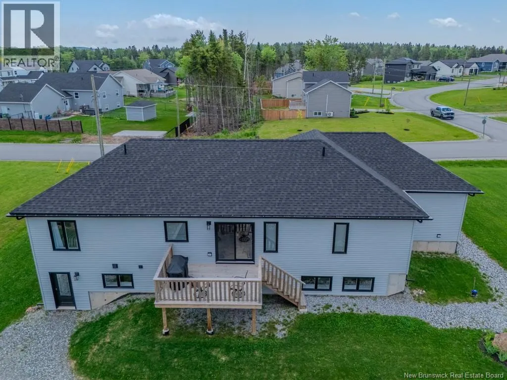 Quispamsis Rd. to Meadowlark to # 77 Phenomenal home in the highly sought after Fernwood Sub division. This beauty sits at the corner of Meadowlark Dr. and Merlin Dr. allowing it to have a driveway off each street. The house sits beautifully on one and a half lots. You'll love the convenience of the insulated the three car garage with lots of shelving. Lots of space to accommodate your cars and all the toys. The main floor of the house features an open concept living, dining and kitchen area. The living room has a recessed ceiling, electric fireplace on the ship lapped wall, the kitchen has a centre island, walk in pantry, back splash and beautiful gleaming stainless appliances. The dining area has an efficient ductless mini split and provides access to the rear deck. One end of the house has two generous bedrooms separated by the main floor bath. The other end of the home has the primary bedroom with recessed ceiling, a full double vanity ensuite and a large walk in closet. The lower level boasts a very large family room, the second ductless mini split, a fourth bedroom and the third full bathroom, complete with laundry facility. There is a mechanical room with set tub, central vac and ample storage space. There is also a convenient walk out from this level to the the back yard. Oh, and did I mention that its within walking distance to Chris Saunders Memorial School (k-5), Quispamsis Middle School (6-8) and Ecole des Pionniers (k-5). (id:27476)