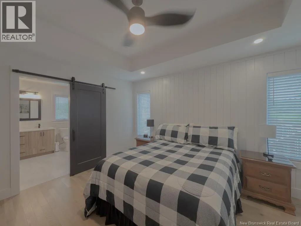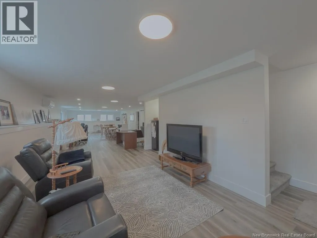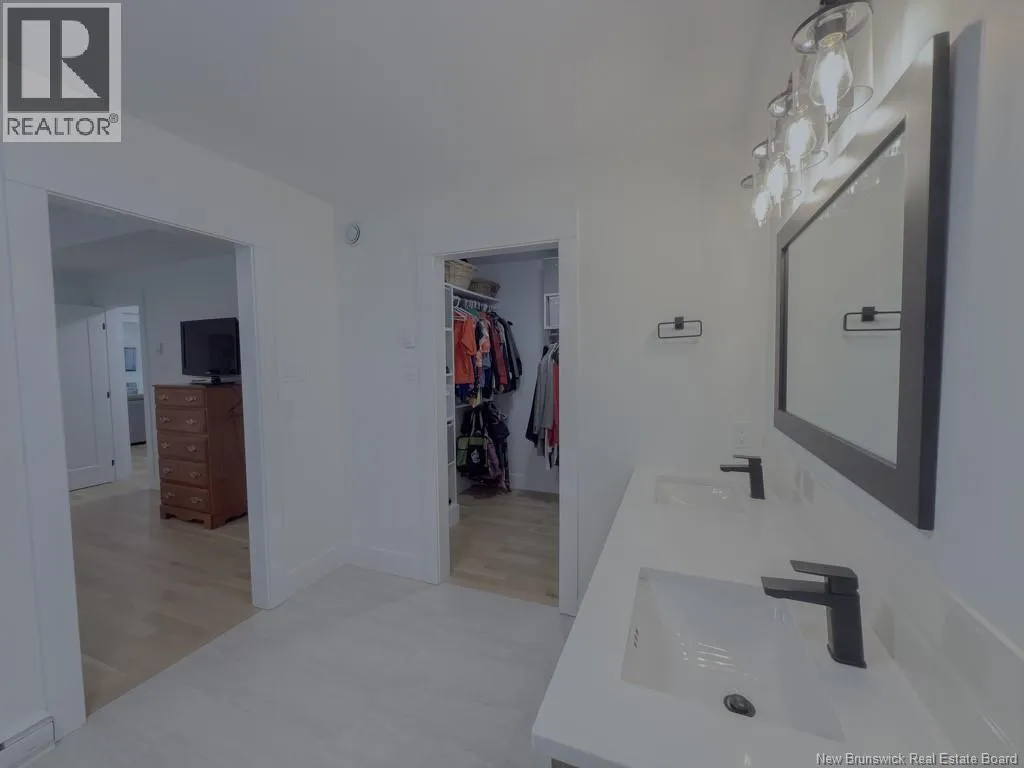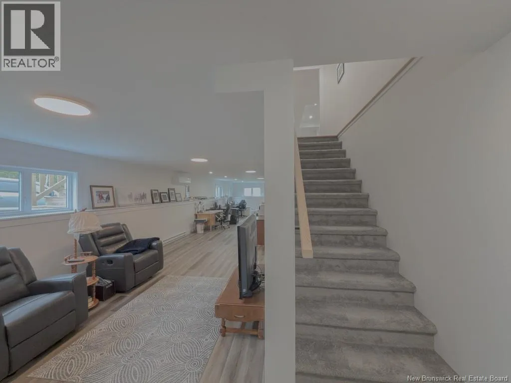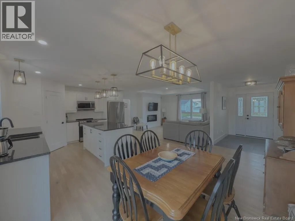 Quispamsis Rd. to Meadowlark to # 77 Phenomenal home in the highly sought after Fernwood Sub division. This beauty sits at the corner of Meadowlark Dr. and Merlin Dr. allowing it to have a driveway off each street. The house sits beautifully on one and a half lots. You'll love the convenience of the insulated the three car garage with lots of shelving. Lots of space to accommodate your cars and all the toys. The main floor of the house features an open concept living, dining and kitchen area. The living room has a recessed ceiling, electric fireplace on the ship lapped wall, the kitchen has a centre island, walk in pantry, back splash and beautiful gleaming stainless appliances. The dining area has an efficient ductless mini split and provides access to the rear deck. One end of the house has two generous bedrooms separated by the main floor bath. The other end of the home has the primary bedroom with recessed ceiling, a full double vanity ensuite and a large walk in closet. The lower level boasts a very large family room, the second ductless mini split, a fourth bedroom and the third full bathroom, complete with laundry facility. There is a mechanical room with set tub, central vac and ample storage space. There is also a convenient walk out from this level to the the back yard. Oh, and did I mention that its within walking distance to Chris Saunders Memorial School (k-5), Quispamsis Middle School (6-8) and Ecole des Pionniers (k-5). (id:27476)