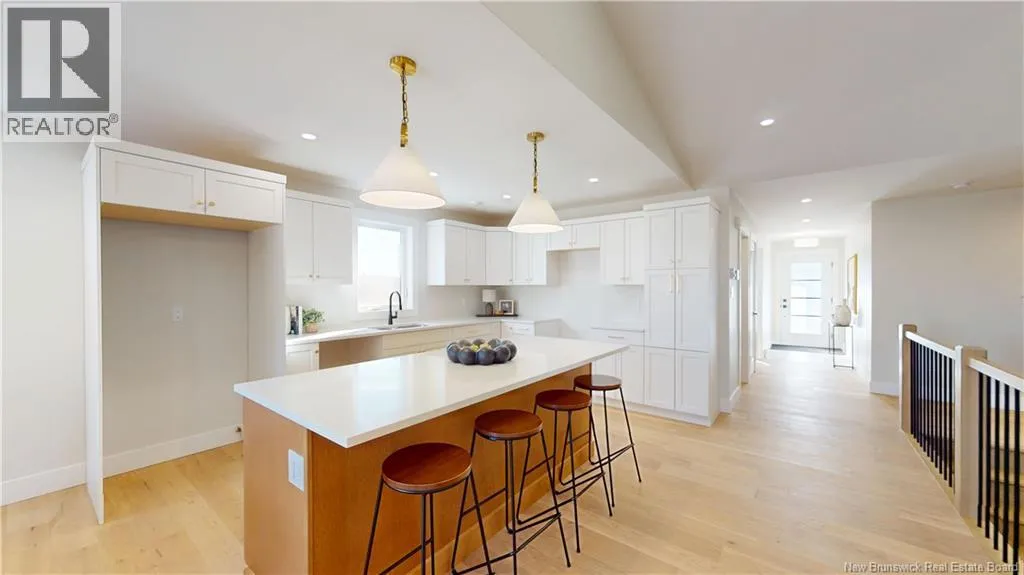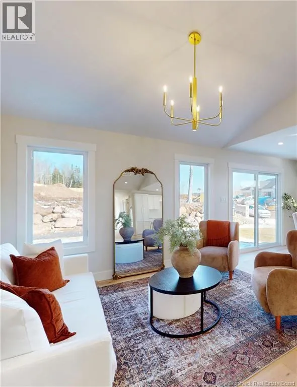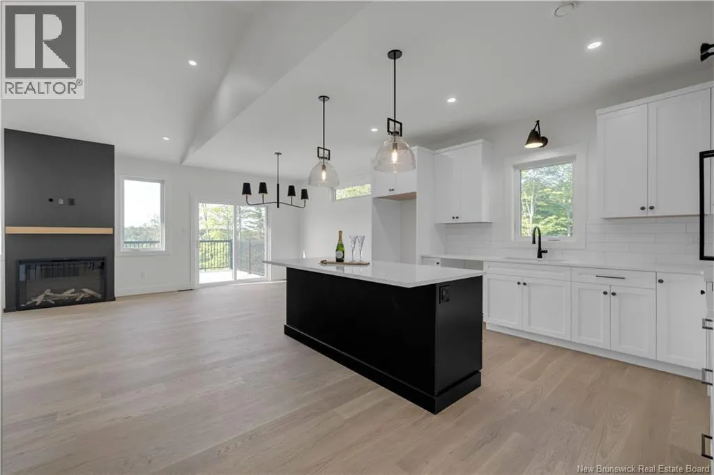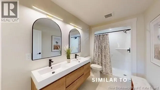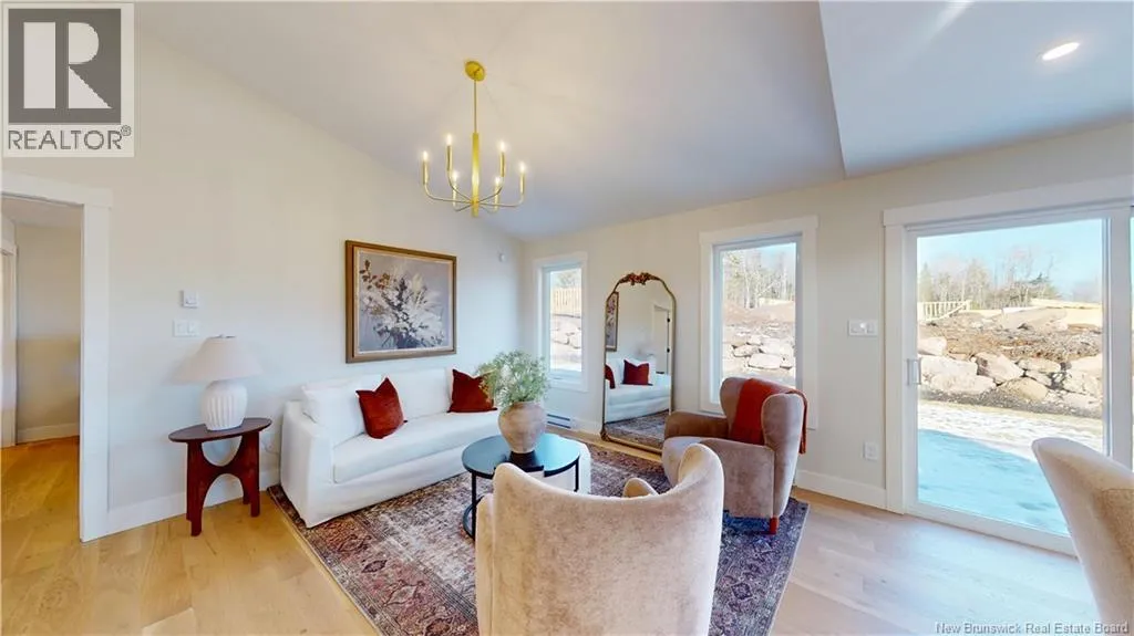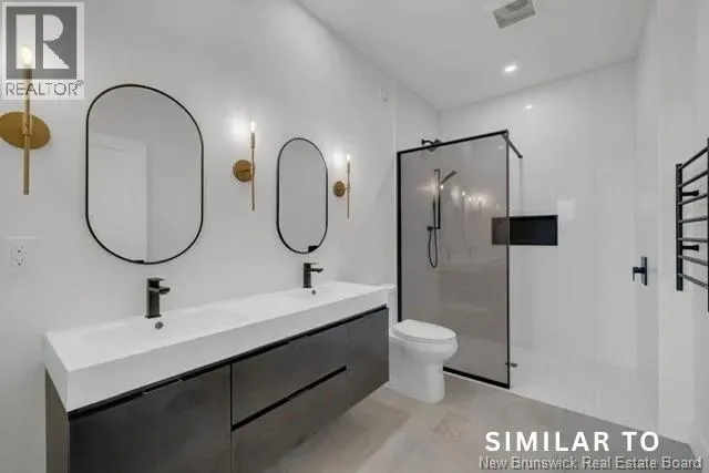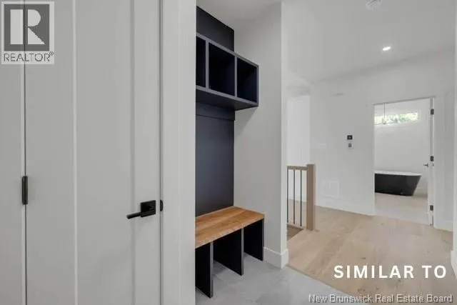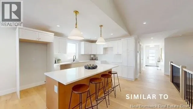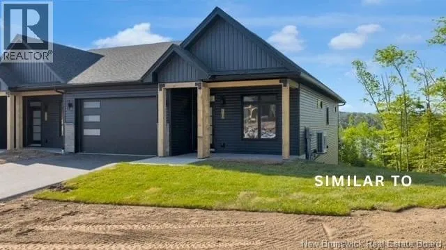 Hwy 1 to Gondola Point Arterial. 3rd exit on rotary to Alma Lane. Left on Quispamsis Rd. Right on Pettingill Rd. Left Wetmore Blvd Enjoy effortless living in this brand new, premium-built semi-detached home with attached garage, ideally situated in a desirable community-within-a-community setting. Designed for those seeking a low-maintenance lifestyle without sacrificing quality or style. Offering 2 bedrooms and 2 full bathrooms, this thoughtfully finished home features engineered hardwood flooring throughout and a bright, open layout ideal for both everyday living and entertaining. The spacious primary suite includes a private ensuite and a generous walk-in closet designed with dressing-room functionality. The exterior showcases modern curb appeal with dark vinyl siding accented by striking hemlock posts, creating a timeless yet contemporary aesthetic. HOA fees of $150/month include snow removal, lawn care, mowing, plowing, and well maintenance making this an excellent option for professionals, downsizers, or anyone looking for true lock-and-leave convenience. Move-in ready and built for easy living. A lifestyle opportunity not to be missed. (id:27476)