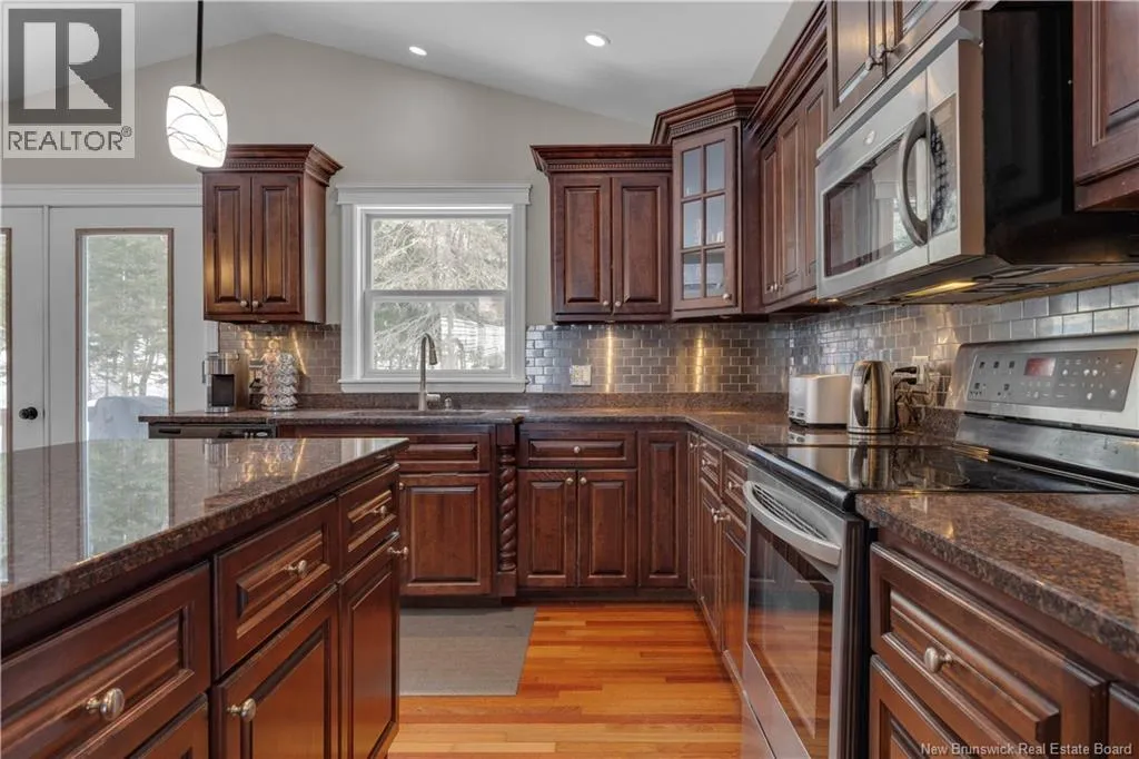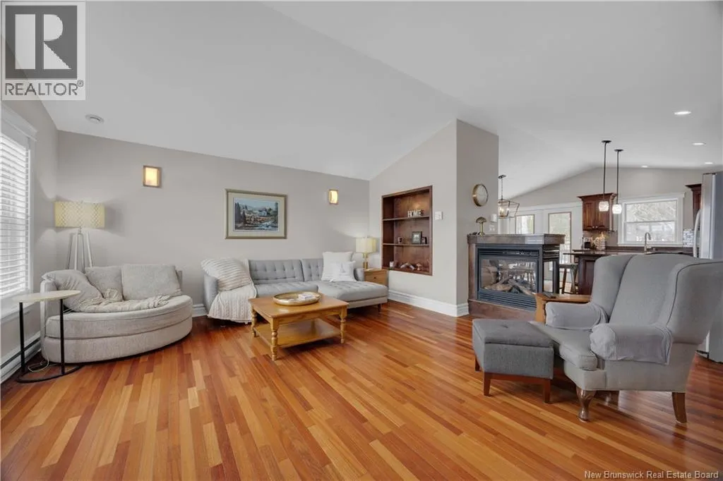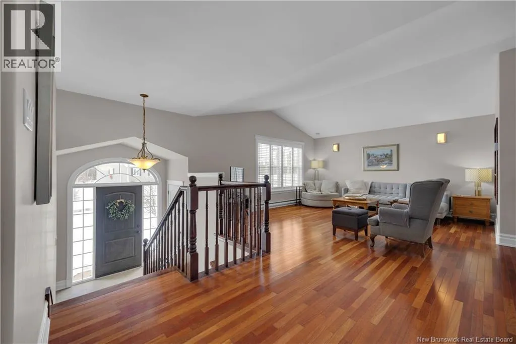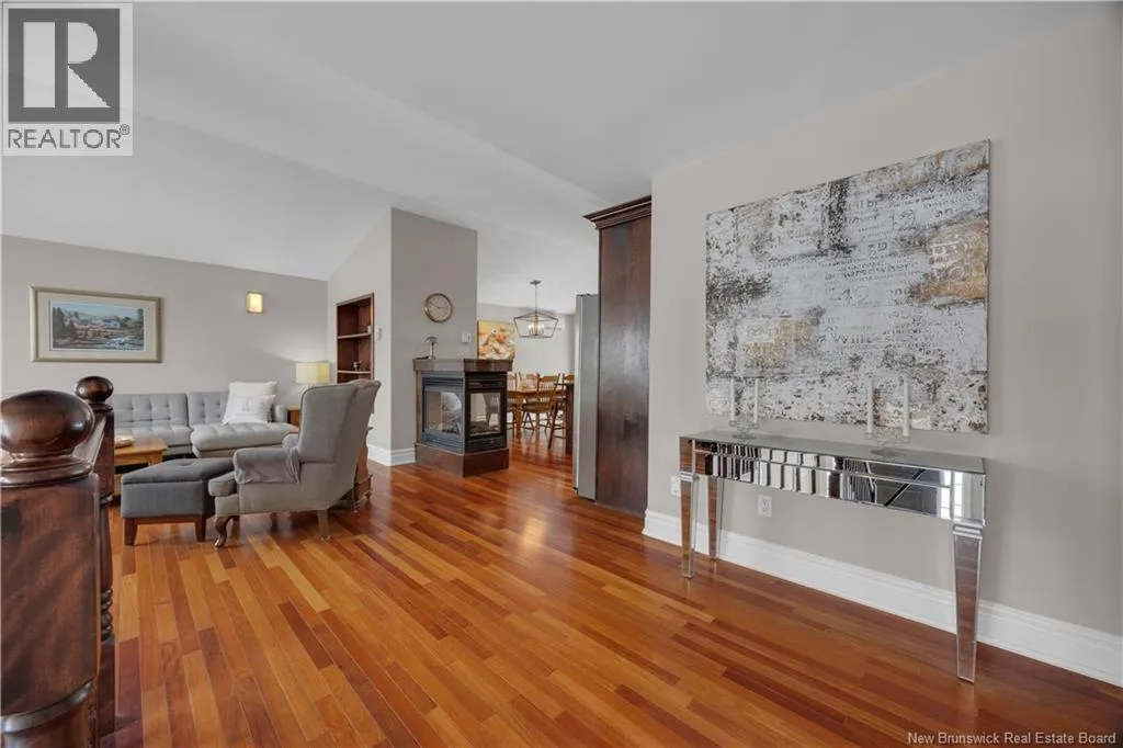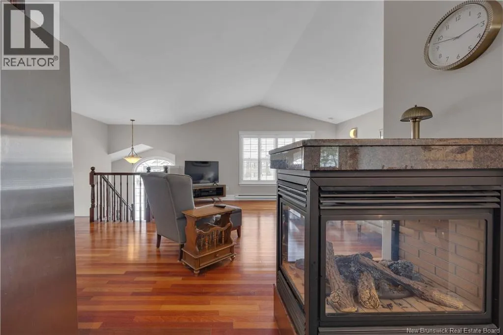 Vincent Road -- Blue Grass Lane Beautiful large split-entry home in Meadowland Estates, Quispamsis. This spacious property is conveniently located close to the QPlex and the arterial road, offering quick access to the highway. The main level features a large semi-open concept kitchen, dining, and living area, highlighted by a stunning three-way propane fireplace. Beautiful mahogany cabinets with granite countertops add warmth and elegance to the kitchen. The oversized primary bedroom includes a walk-in closet and a private ensuite. Two additional generously sized bedrooms and main-floor laundry complete this level. Gorgeous hardwood floors run throughout the main floor. The lower level offers a large L-shaped family room, two additional bedrooms, and a full bathroom - perfect for a growing family or guests. Enjoy the private back deck just off the kitchen, ideal for relaxing or entertaining. The home also features a large double-car garage and is ready to welcome it's next family! (id:27476)
