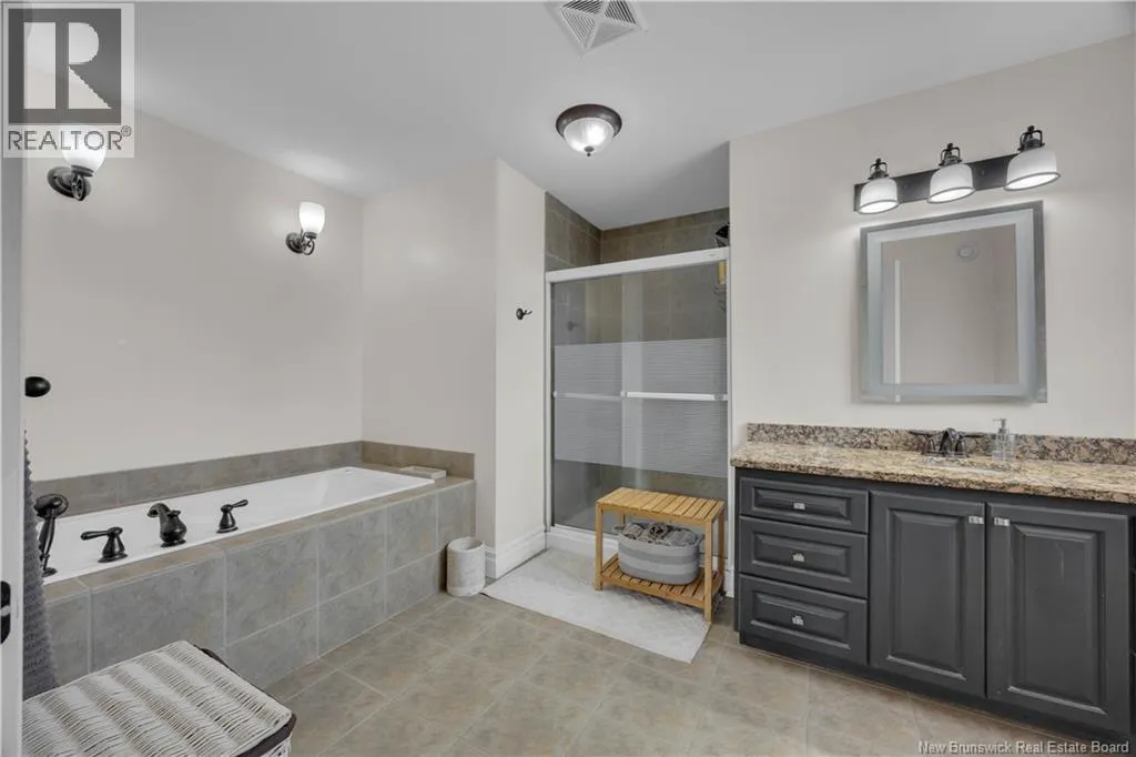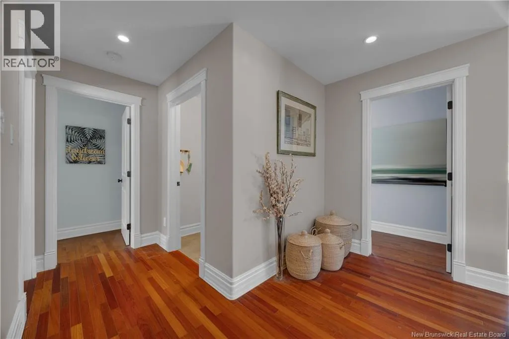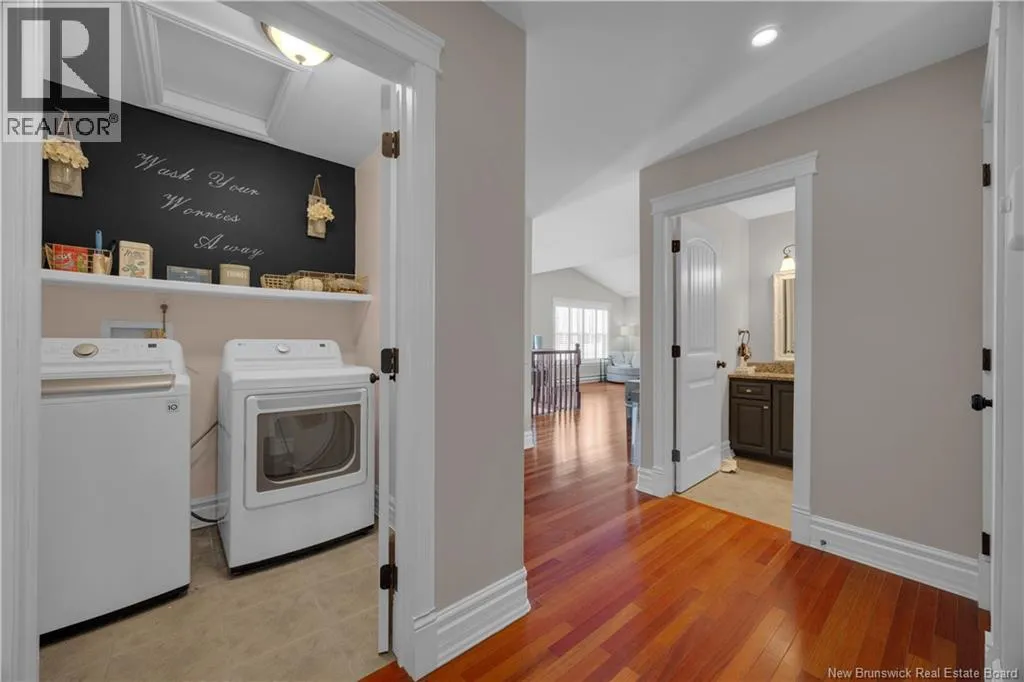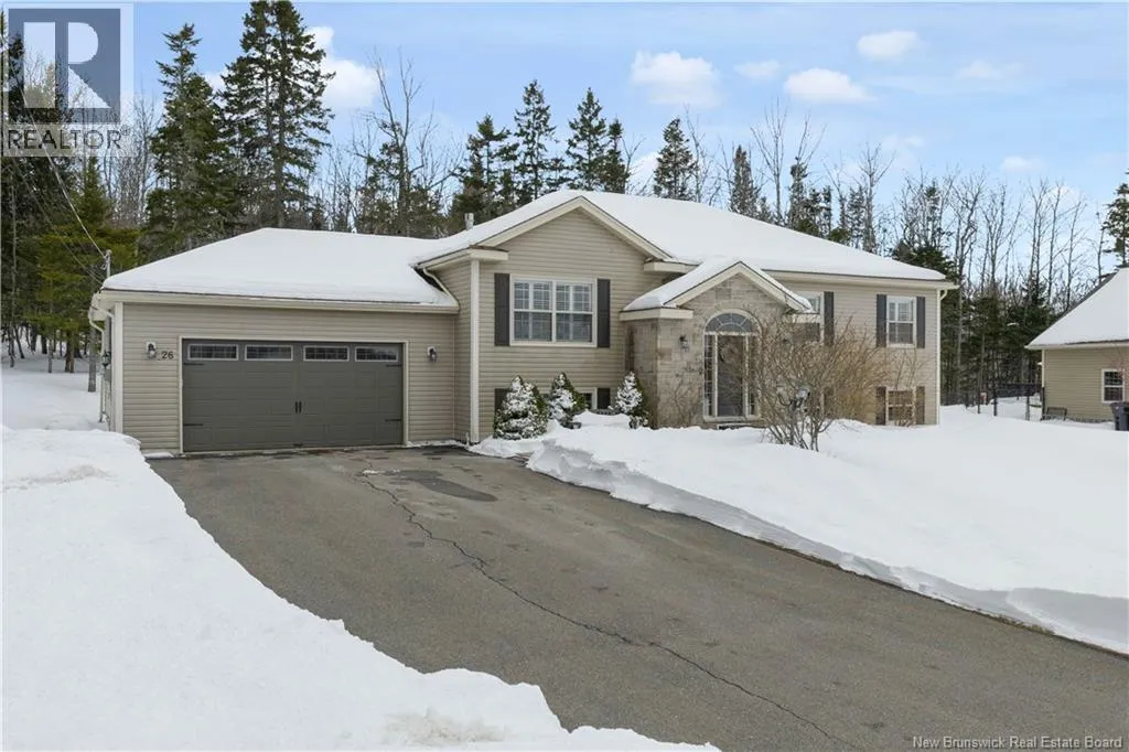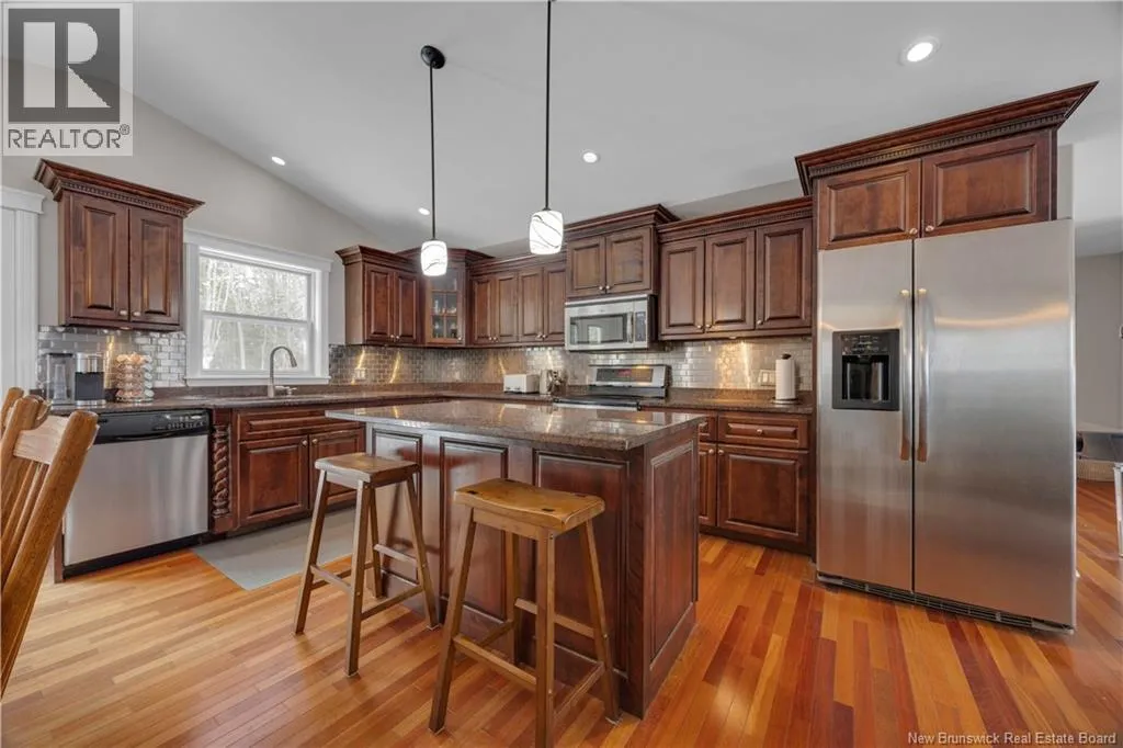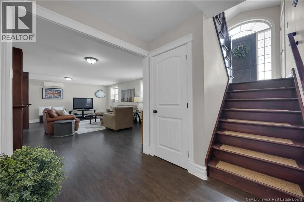 Vincent Road -- Blue Grass Lane Beautiful large split-entry home in Meadowland Estates, Quispamsis. This spacious property is conveniently located close to the QPlex and the arterial road, offering quick access to the highway. The main level features a large semi-open concept kitchen, dining, and living area, highlighted by a stunning three-way propane fireplace. Beautiful mahogany cabinets with granite countertops add warmth and elegance to the kitchen. The oversized primary bedroom includes a walk-in closet and a private ensuite. Two additional generously sized bedrooms and main-floor laundry complete this level. Gorgeous hardwood floors run throughout the main floor. The lower level offers a large L-shaped family room, two additional bedrooms, and a full bathroom - perfect for a growing family or guests. Enjoy the private back deck just off the kitchen, ideal for relaxing or entertaining. The home also features a large double-car garage and is ready to welcome it's next family! (id:27476)
