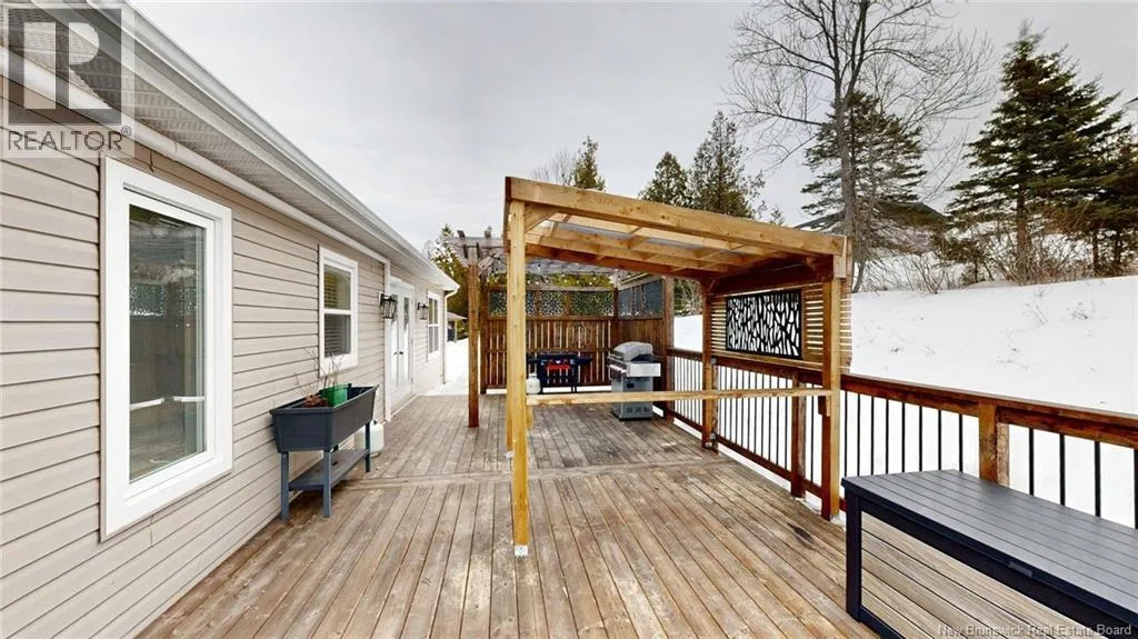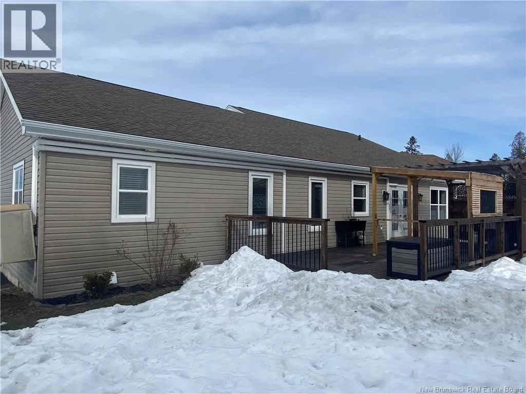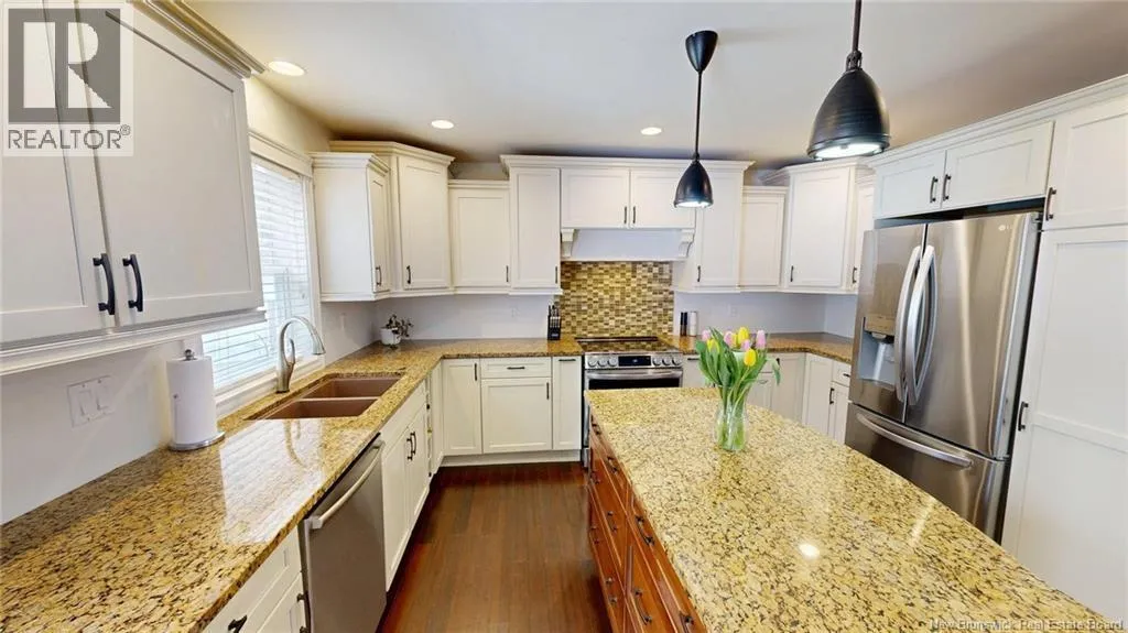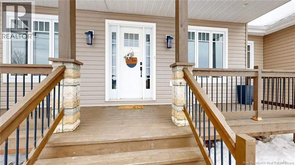 Squires Dr to Cobblestone to Pioneer to Harvest Welcome to 18 Harvest Court a charming Cape Cod style bungalow with Kennebecasis River views . This lovely home features a large front veranda to enjoy the evening sunsets, a landscaped yard that has great curb appeal as well as a large back deck for entertaining. The main floor features a good size front living room featuring an electric fireplace built into open book shelves with a spot for your tv over the fireplace. There is also a dining room with patio doors leading to the back deck and fire pit, a good sized kitchen with an island , white soft closure cabinets, stainless steel appliances , granite countertops , double sink and plenty of natural light. Off the living room is your laundry room /mud room, entrance to your 1.5 garage , primary bedroom with his/hers walk in closets and an outstanding spa like ensuite with soaker tub , glassed shower and double sinks. Two additional bedrooms and a second full bath are also found on the main floor level, great to have the kids close by. Lower level basement is unfinished but provides plenty of storage, plumbed in for a bathroom and a great opportunity to create your own family room /games room. This home is situated on a quiet cul-de sac in a great neighborhood. Pride of ownership is evident throughout this lovely home. Book your private show today. (id:27476)