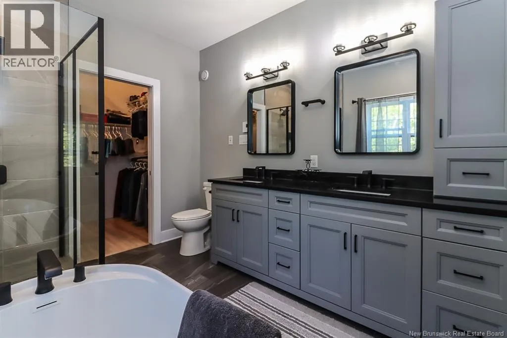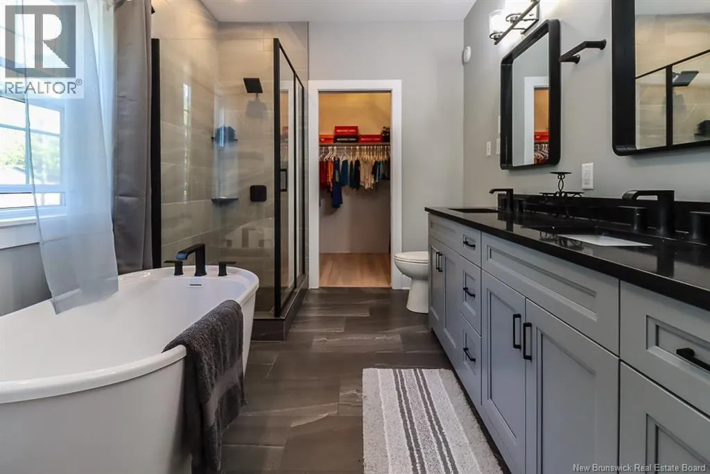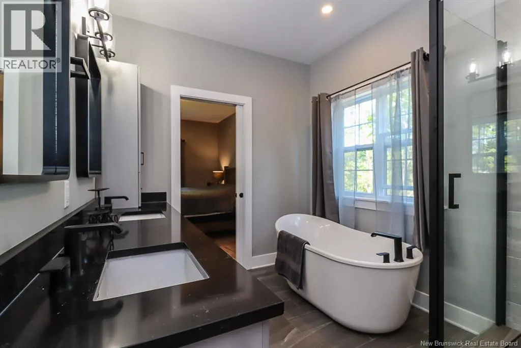 Gondola Point Rd - Matthews - Sheraton ACCEPTED OFFER! Welcome to 14 Sheraton Ave, a stunning new addition to the highly sought-after Scott Ridge Estates. This modern walkout bungalow offers nearly 3,000 sq ft of finished living space, including 1,536 sq ft on the main floor and a fully finished walkout basement. An oversized double garage with 12-foot doors provides both convenience and curb appeal. The thoughtful layout features 3+1 bedrooms and 3 full baths, with the primary suite on one side of the home and two bedrooms on the other for added privacy. 9-foot ceilings enhance the open living, dining, den, and kitchen areas, while a propane fireplace creates a cozy focal point. The kitchen is designed for gatherings with extensive lighting and a custom pantry. The lower level adds a spacious family room, full bath, and additional bedroom, perfect for guests or extended family. Outdoor living is equally inviting with a covered deck and front veranda. The exterior showcases modern dark siding, lending a sleek, timeless look. Located just minutes from the Kennebecasis River, beach access, and the Q-plex complex, this property combines modern comfort with recreational convenience. Built by RJ Scott Homes, known for their commitment to Quality Without Question, the home also includes: 7 years remaining on the Atlantic Home Warranty 2 owned Heat pumps (id:27476)