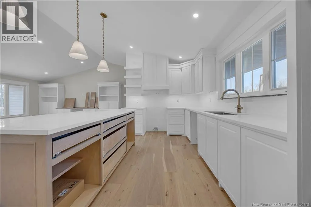 Kensington to Winchester to Auburn to Montana Step inside this expansive executive ranch-style bungalow in the heart of Quispamsis and experience elevated one-level living at its finest. From the moment you enter, youre welcomed by a bright, inviting foyer. The home opens into a stunning open-concept living space designed for both everyday comfort and effortless entertaining. The beautifully appointed kitchen is a true centrepiece, showcasing a large island, custom cabinetry, quartz countertops and a spacious walk-in pantry. It flows seamlessly into the dining area and living room, with cathedral ceilings, and built in entertainment centre. From here, step outside to your private deck, that is partially covered. The primary suite offers a luxurious escape, complete with a spa-inspired ensuite featuring a walk-in shower, soaker tub, and water closet. Primary also offers his and hers walk in closets. The main level also includes two additional well-sized bedrooms, a full bathroom, and a functional laundry room. Downstairs, the fully finished walkout lower level expands your living space with a large family room, two more bedrooms, another full bathroom, and another finished room that would make a great gym/theatre room. Some other key features include engineer hardwood throughout main floor, tile in all bathrooms, fully ducted heat pump, home warranty and more! Prime location just minutes from trails, schools, shopping, and highway access, this home offers the perfect blend of style, comfort, and convenience. (id:27476)