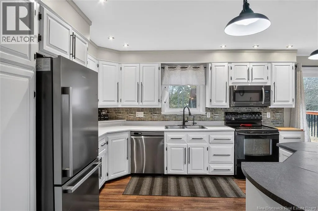 Hampton Road to Sylvia, right on Swanton Versatile family home with income suite & lofted Garage in sought after Quispamsis... Welcome to this spacious and multi-functional split entry home, ideally situated on a quiet cul-de-sac, this home has a substantial garage addition completed in the early 2000s, this property offers a unique blend of space, flexibility and long-term potential. The main level features a bright, open concept living, dining and kitchen area, along with 3 bedrooms and a full bathroom with privacy door to primary bedroom. The lower level includes a self-contained 1 bedroom, 1 bathroom apartment or in-law suite. Currently occupied by a reliable long-term tenant paying $1200/month, this unit offers immediate income and added value for homeowners or investors alike. A standout feature of the property is the impressive garage addition with a fully finished loft above, complete with a bedroom and living area; ideal for extended family, guests, or a variety of personal uses. Step outside to enjoy a private, treelined backyard that backs onto green space, offering a peaceful setting with excellent privacy and minimal through-traffic. The 24 ft above ground pool with tiered decking creates a great space for summer entertaining. This property presents a fantastic opportunity for buyers seeking space, versatility and the ability to personalize and add value over time in one of the areas most desirable communities. Roof done in June 2025. Sellers can accommodate quick closing. (id:27476)