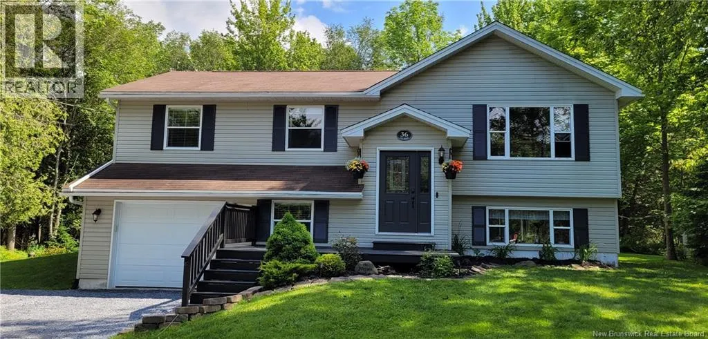 Route 100, Hammond River Rd, Kirkwood Dr, Cliff Discover the charm of 36 Cliff Street, tucked away on a beautifully treed, private lot just over an acre in size. If youve been dreaming of space, quiet, and a true connection to nature, this home delivers. Sunlight pours through the large windows on the main level, where youll find a welcoming kitchen/dining area, a cozy living room, three bedrooms, and a full bath. Downstairs offers even more room to spread out with a spacious family room, an additional bedroom and bath, plus a convenient laundry area. The built-in garage adds everyday practicality. Step outside and enjoy a yard designed for living level, landscaped, and perfect for gatherings, kids, pets, or simply relaxing by the fire or soaking in the hottub. All of this, just 12 minutes to Quispamsis or Hampton, giving you the best of both country comfort and nearby amenities. (id:27476)