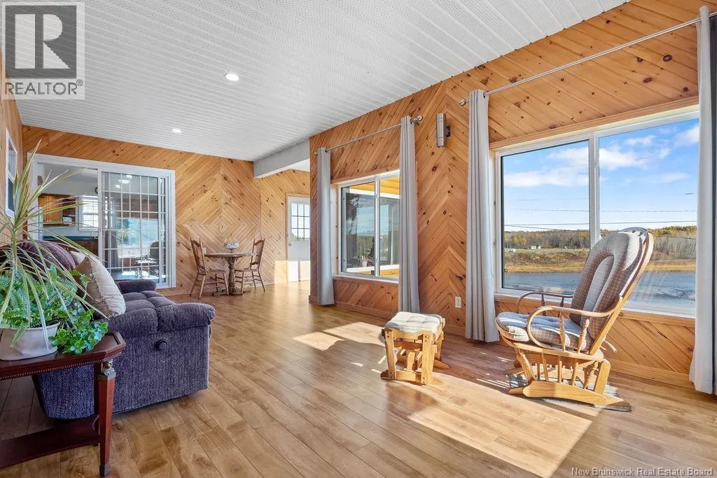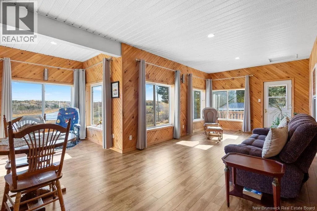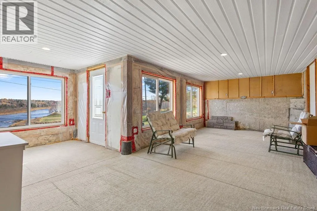 If coming from Miramichi on Route 108 it is about 1 km above the Quarryville bridge on the left (riverside) Welcome to your peaceful riverside retreat! This inviting 3-bedroom home sits on 2.7 acres overlooking the the Quarryville Pool, where the Renous River flows into the Main Southwest Miramichi River. Enjoy breathtaking water views, fishermen casting for salmon and bass, and the tranquility of nature right from your home. Upstairs features 2 spacious bedrooms and 2 full baths, including a primary suite with stand-up shower. The bright kitchen offers oak cabinetry, a center island with raised breakfast bar, and opens to a year-round sunroom filled with light and panoramic river views. The walkout basement includes a third bedroom(non-conforming egress window), cozy sitting area with propane stove, and an unfinished sunroom with the same spectacular views. A mini-split system and wood furnace provide efficient year-round comfort. Outside, enjoy a 24' x 28' double detached garage, 14' x 20' shed, and several outbuildings, including a former bunkhouse. The property is set up for 15+ RV sites with water, sewer, and electrical hookups offering great income potential. Located just 20 mins from Miramichi and 10 mins from Village of Blackville, youll have nearby amenities while enjoying country living. ATV and snowmobile trails are just over the hill, with world-class fishing at your doorstep. Whether for family living, a weekend retreat, or an income property, this riverside gem has it all space, comfort, and unbeatable views. (id:27476)