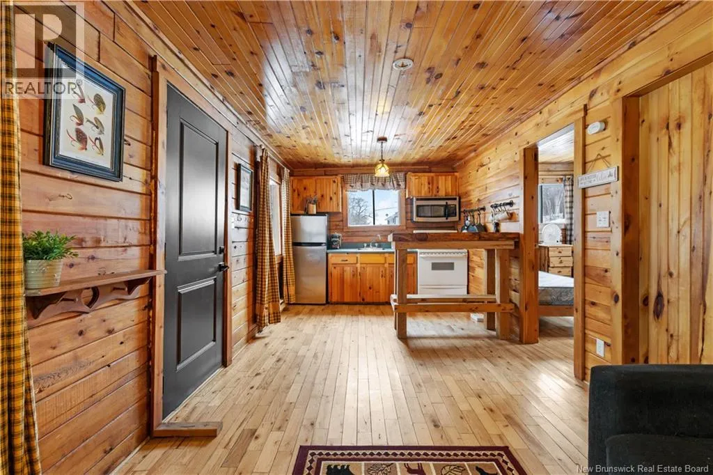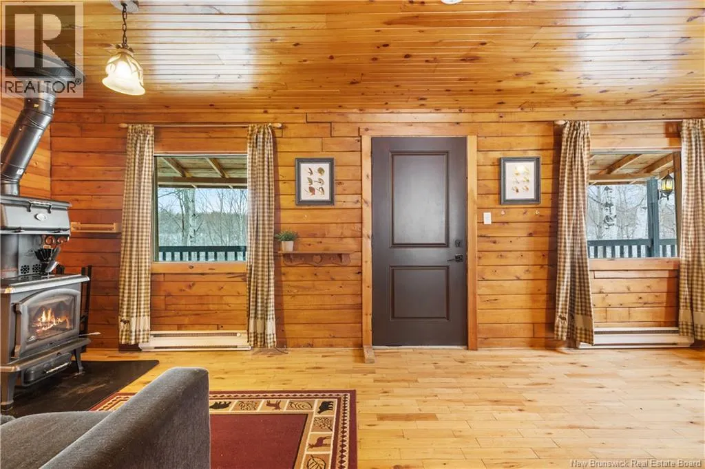 From the main highway (Route 8/New Brunswick Route 11), take the exit toward Renous. Follow the signage into Renous. Proceed along the road leading toward the river until you reach Hambrook Point Rd. Turn onto Hambrook Point Rd and drive until you arrive at number 97 on the lakeside/riverfront side. Have you always dreamed of owning your very own waterfront property? Or perhaps looking for an Airbnb, romantic getaway with hot tub overlooking the river !! This charming log home could make that dream come true! Perfectly situated on the scenic banks of the Renous River just minutes from where it meets the famous Miramichi River this property offers some of the regions best bass and salmon fishing right at your doorstep.Nestled on approximately 7,500 square meters of waterfront land, this cozy log home features an inviting open-concept kitchen, living room, and dining area, creating the perfect space for family gatherings or peaceful retreats. The home offers two bedrooms and a full bath, roof is metal and was done 2 years ago and septic seen improvements recently for added peace of mind.Picture yourself unwinding on the covered deck, taking in the breathtaking river views. Spend summer days kayaking, fishing, or watching the kids play by the water. In autumn, enjoy the brilliant fall colors, and when winter arrives, cozy up by the fire with your favorite person. The beauty and tranquility of this property are truly year-round. Dont miss your chance to make this riverside retreat your home, call today to book your private showing! (id:27476)