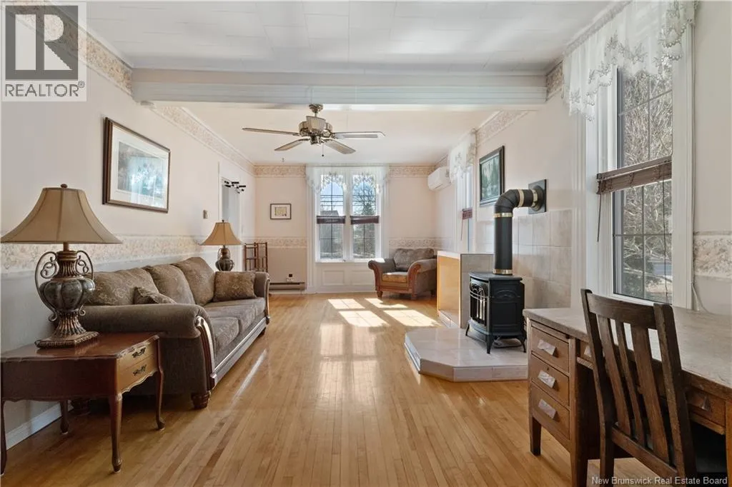 Civic # 24 on Bonar Law Ave, Rexton Welcome to 24 Bonar Law, Rexton. set on over 4.28 acres within city limits, this beautiful property offers space, comfort, and convenience. The main level features a bright entrance leading into a cozy family room. From here, youll find access to a full bathroom, a spacious kitchen with ample cabinet space, and a dining area perfect for family meals or entertaining. A large living room with a propane stove adds warmth and charm, and tall ceilings throughout the home lend a modern Victorian feel. Upstairs offers three bedrooms, a half bath, and a convenient laundry room. Two energy-efficient mini split heat pumps provide year-round heating and cooling. Over the years, the home has seen many upgrades including new roof shingles, windows, siding, and more. Outside, enjoy a large partially fenced yard, perfect for kids and pets to run freely. The 20x50 detached garage provides excellent storage for vehicles, ATVs, snowmobiles, or even a tractor. Located close to local amenities such as restaurants, grocery stores, pharmacies, banks, schools, and community centres. Outdoor enthusiasts will love nearby ATV and snowmobile trails, and you're just 45 minutes from Moncton, making Costco and major shopping easily accessible. The land offers potential for gardening or hobby farming and even has waterviews in certain areas. Beaches, wharfs, and boating opportunities are all nearby, ideal for enjoying the East Coast lifestyle! (id:27476)