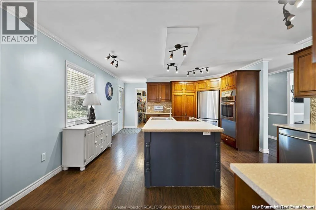 From Main street turn onto Centennial West avenue. Civic number 17 Incredible home in the heart of Rexton NB! Step into a spacious entrance off the attached garage or greet guests in the elegant foyer. The bright sunroom with patio doors opens to a deck and amazing backyard, perfect for relaxing. Enjoy an open-concept layout with crown molding throughout. The custom kitchen features a center island, pull-out cabinets, super cool pantry within the cabinetry and a walk-in pantry, making it super functional. The huge living room with a fireplace, sitting area, and a perfect work-from-home spot adds to the charm. The main floor boasts three large bedrooms, including a primary bedroom with an ensuite bath, plus another 4PC bath. The fully finished lower level offers a games room with a bar area, family room with another fireplace, two more bedrooms, a 3PC bath, bright laundry room, full cedar storage, and a cold room. With so much square footage it could easily be converted into a spacious in-law suite. Pride of ownership is evident throughout with so many updates. The backyard oasis is super private and landscaped, creating a serene retreat. Perfectly situated within walking distance to all three schools and surrounded by amenities, shopping, restaurants, and entertainment options, this location epitomizes convenience. Enjoy easy access to beaches, with Saint-Anne Hospital just 10 min away, & both Moncton and Miramichi within a 50-min drive. This home truly meets all your needs w/ ease (id:27476)