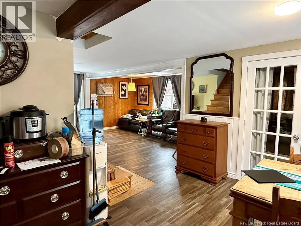 Rte 165 , civic #618. Sign Posted Set on a picturesque 5-acre lot, this spacious 1½-storey home offers the perfect blend of country living and convenient access for commuters, located just a short drive to the highway for easy travel to both Woodstock and Fredericton. Step inside to a welcoming main level featuring a functional mudroom and a nicely updated kitchen that seamlessly flows into the dining and living areasideal for everyday living and entertaining. French doors lead to a versatile den or multipurpose space, perfect for a home office, playroom, or cozy retreat. A full bath completes this level.Upstairs, youll find a bright and inviting primary bedroom with a vaulted ceiling, along with a flexible open area that could easily be converted into an additional bedroom or used as a home office. A second full bath with a walk-in shower adds convenience to this level. The partially finished basement expands your living space with a bedroom featuring an egress window, plus ample storage throughout. Outside, the detached garage is a standout featureideal for hobbyists, mechanics, or anyone in need of a workshop space. With plenty of room to roam, garden, or simply enjoy the outdoors, this property offers the space and lifestyle youve been looking for. (id:27476)