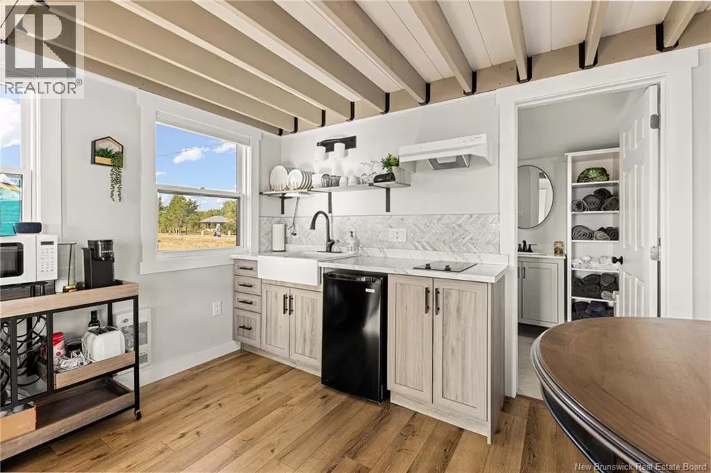 From Highway 11 take exit 42 Ste-Anne-de-Kent, at stop turn left, next turn right, next left, finally left on Rte 505. Follow Rte 505 till your 2nd right still on Rte 505. Civic#2089 is on your left 220+/- feet of ocean frontage, established business, a popular Airbnb with hot tub, and a comfortable home with garage and ocean views! This 10+/- acre property offers both residential living and multiple income streams. On one side of the road, the main bungalow features 2 bedrooms, 2 full bathrooms, a spacious living room, a partially finished basement, a mini-split heat pump, and a forced-air furnace. A detached garage, a camp at the back (with rental potential), and a small mini-camper are also included. The wooded area extends far behind and is currently used for activities such as snowshoe walks in winter, showing strong four-season recreational potential. From the home, enjoy beautiful ocean views and a paved driveway. The waterfront includes: La Vue du Cap Canteen, a Five star rated canteen, sold with all equipment, offering outdoor terraces, covered seating, and a customer bathroom. This site is located on a building lot with approved well & septic, allowing future expansion or development. A highly rated AIRBNB micro-home with a hot tub. A hard ice cream cabin and souvenir shop, perfect for seasonal visitors. A private staircase providing direct guest access to the beach. Elevated Gravel access and parking on the commercial side with breakwater. With septic, well, electricity, multiple outbuildings, and a layout that blends lifestyle, recreation, and commercial potential, this is a true dream for entrepreneurs. (id:27476)